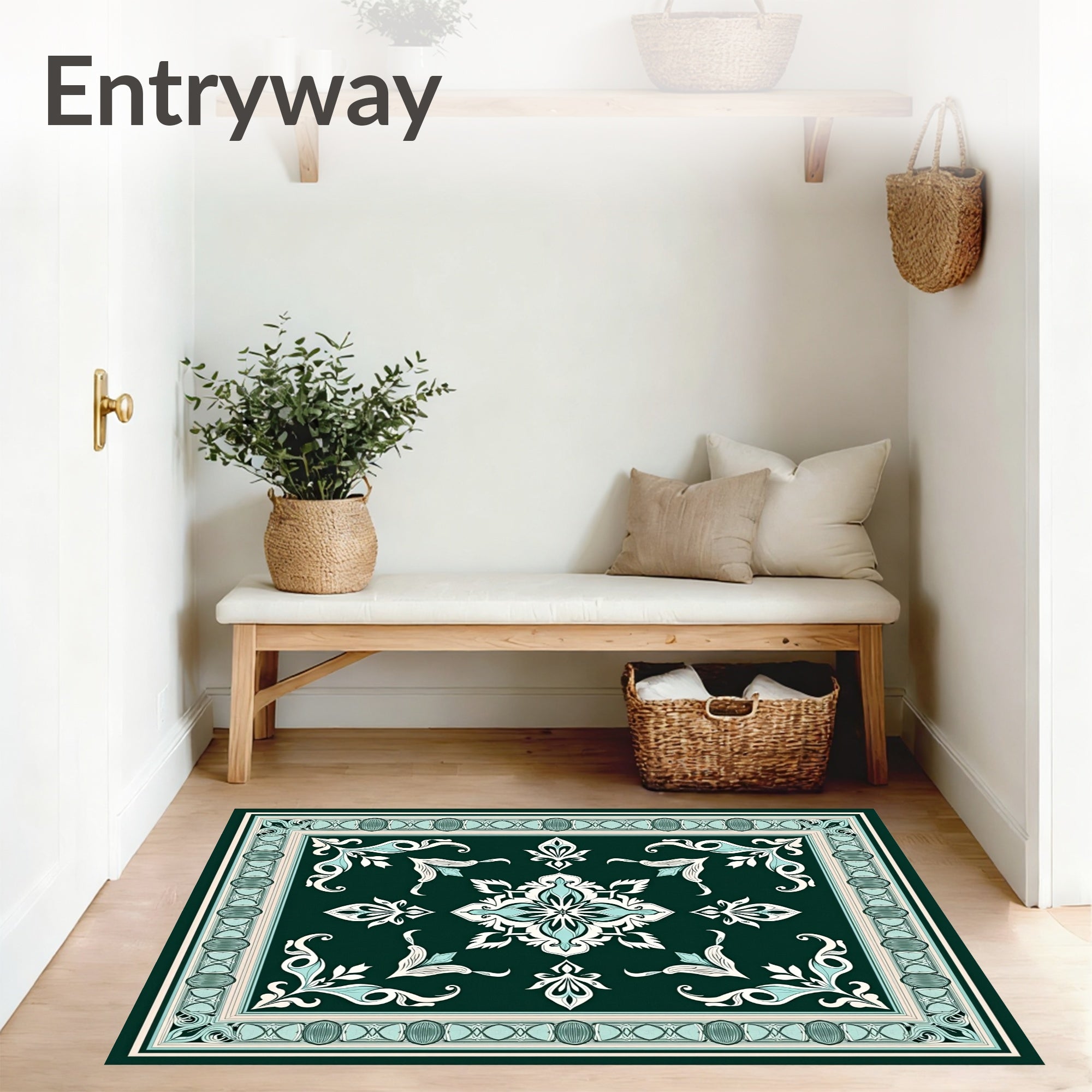 Ultra Soft Area Rug, Non Slip, Stain Resistant, Washable Area Rugs for Living Room, Bedroom, Elegant Floral Arabesque Weathered Decorative Eclectic Motif(Green) Overview: