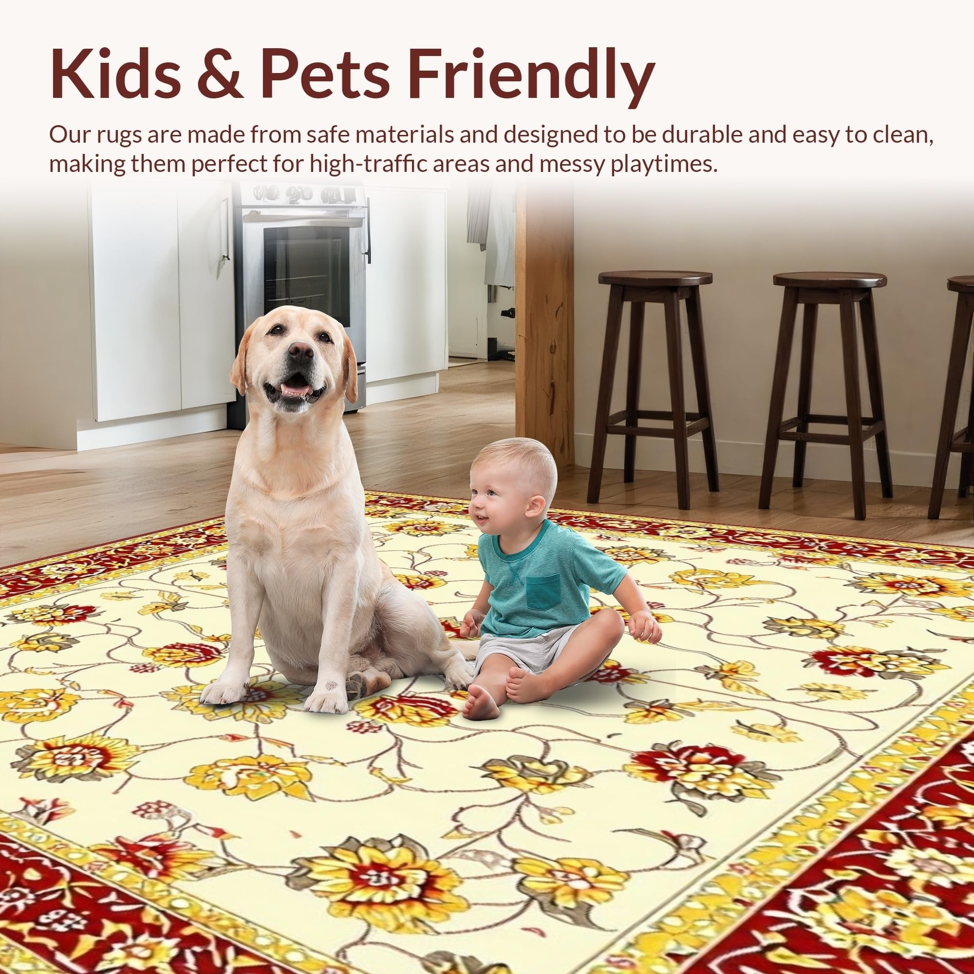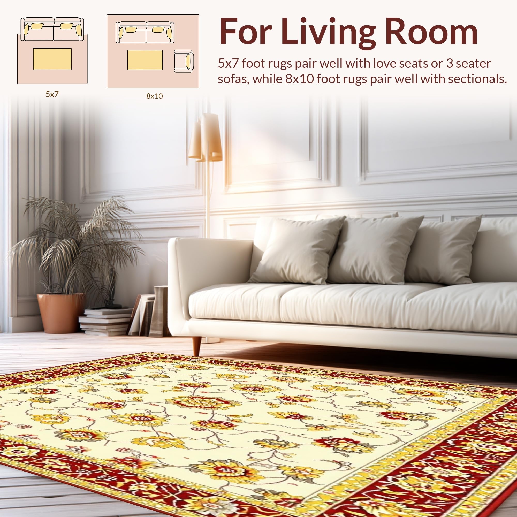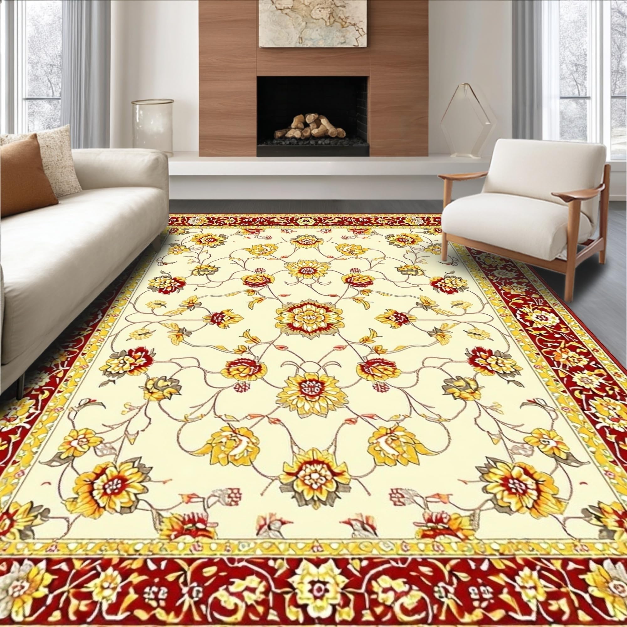 Ultra Soft Area Rug, Non Slip, Stain Resistant, Washable Area Rugs for Living Room, Bedroom, Elegant Floral Area Design for Rustic Decor(Beige) Overview: