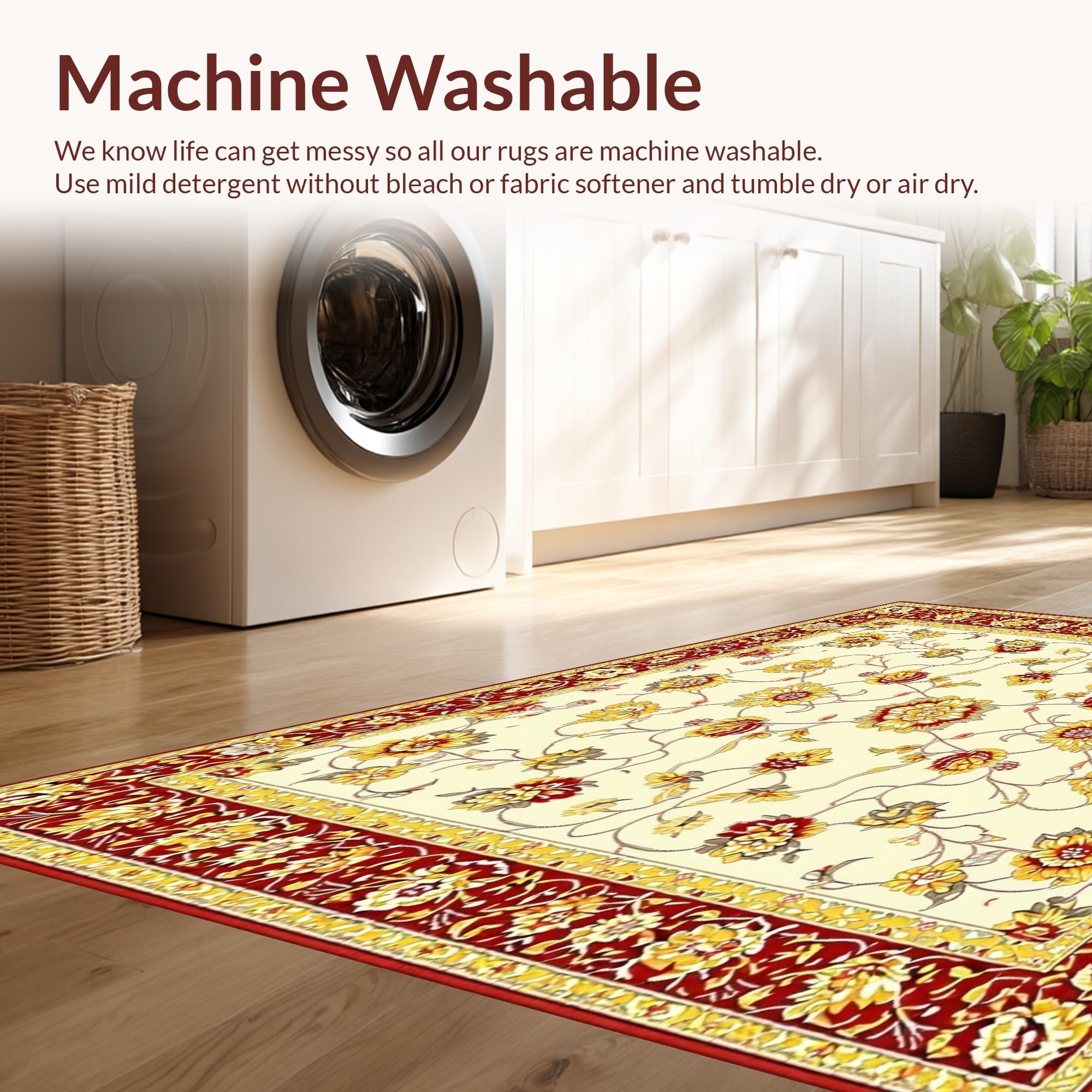 - Machine Washable: Our rugs can be easily thrown in the wash machine.