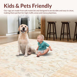 - Soft and Fluffy Comfort: This low pile rug is made from a faux cashmere texture, offering a smooth, soft touch that elevates any room. Ideal for areas where comfort matters without compromising on easy maintenance.