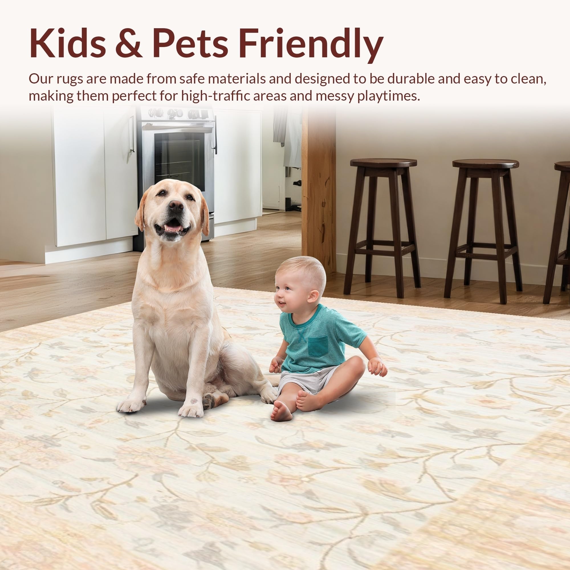 Ultra Soft Area Rug, Non Slip, Stain Resistant, Washable Area Rugs for Living Room, Bedroom, Elegant Floral Area Entryway(Beige) Overview: