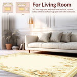 Ultra Soft Area Rug, Non Slip, Stain Resistant, Washable Area Rugs for Living Room, Bedroom, Elegant Floral Area Low Pile Indoor Floor Cover(Beige) Overview: