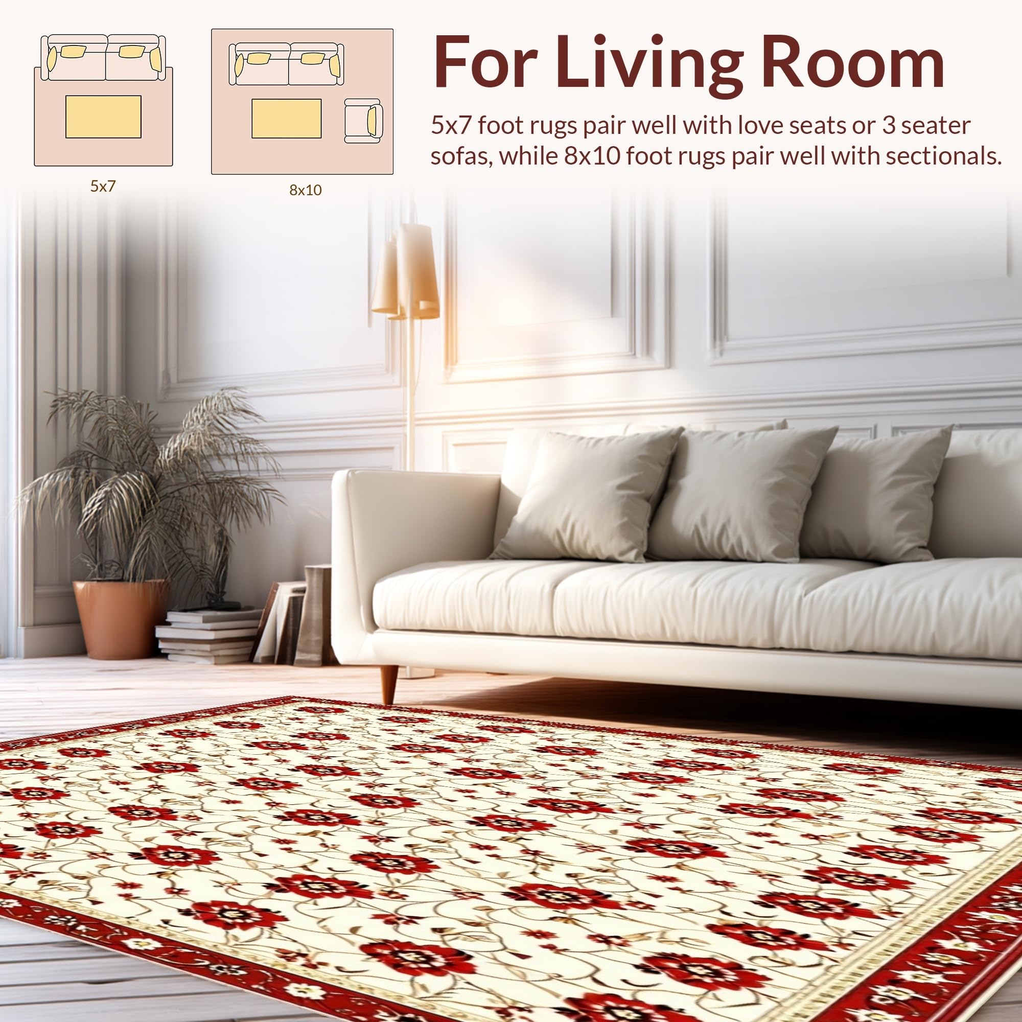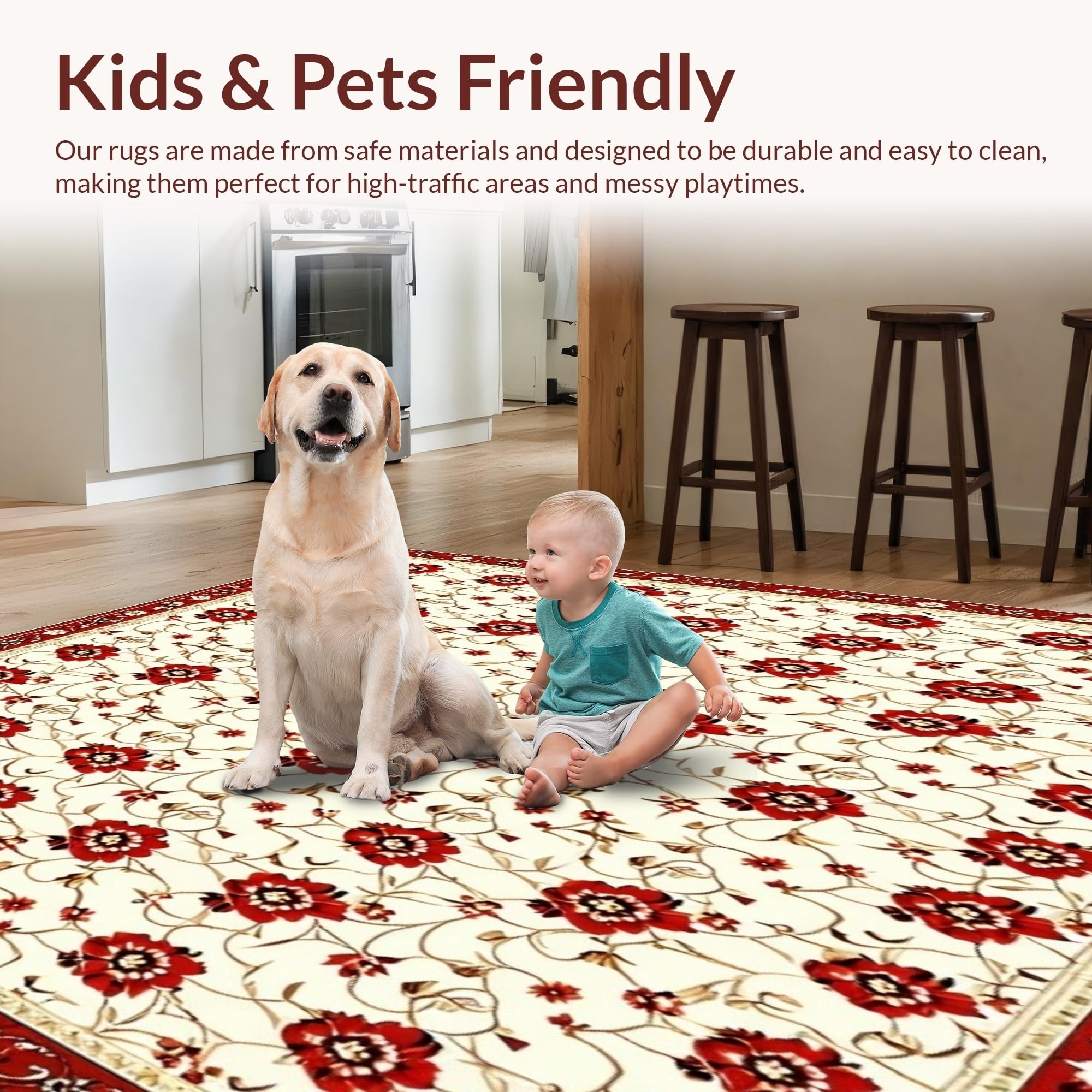 Ultra Soft Area Rug, Non Slip, Stain Resistant, Washable Area Rugs for Living Room, Bedroom, Elegant Floral Area Pet & Kid Proof Non Slip(Beige) Overview: