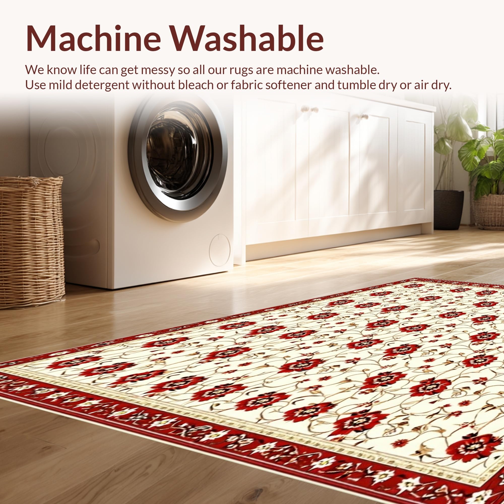 - Machine Washable: Our rugs can be easily thrown in the wash machine.