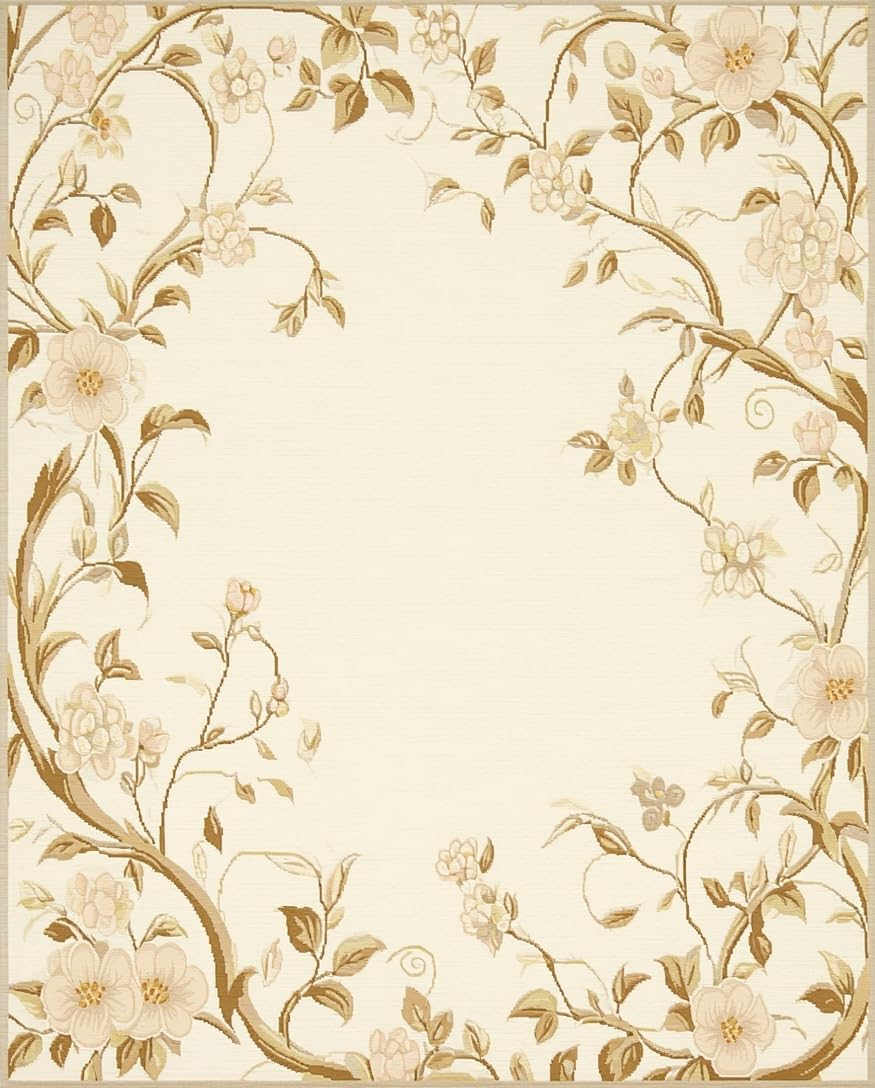 Elegant Floral Area with Artistic Beige Botanical Motifs(Beige)