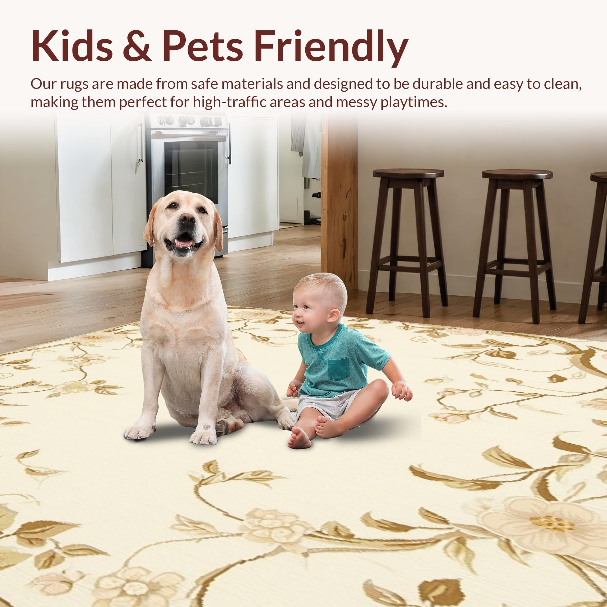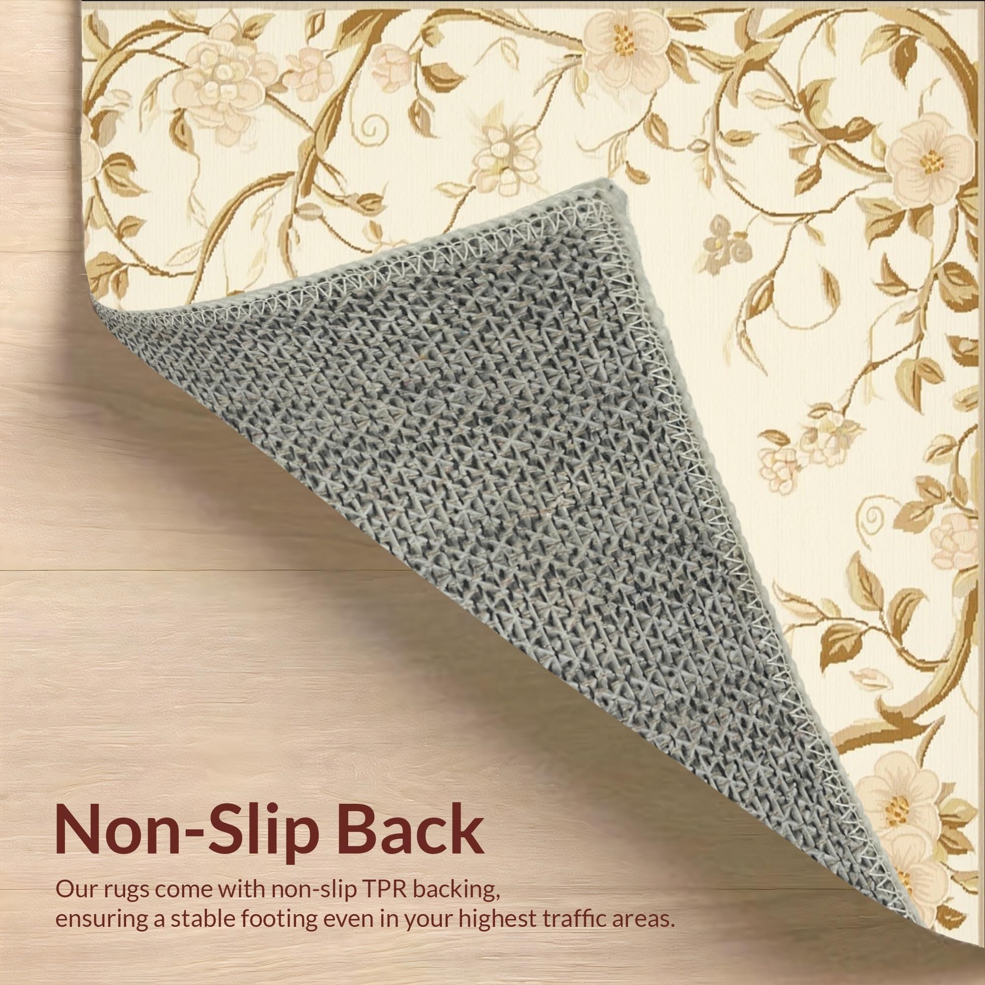 Ultra Soft Area Rug, Non Slip, Stain Resistant, Washable Area Rugs for Living Room, Bedroom, Elegant Floral Area with Artistic Beige Botanical Motifs(Beige) Overview: