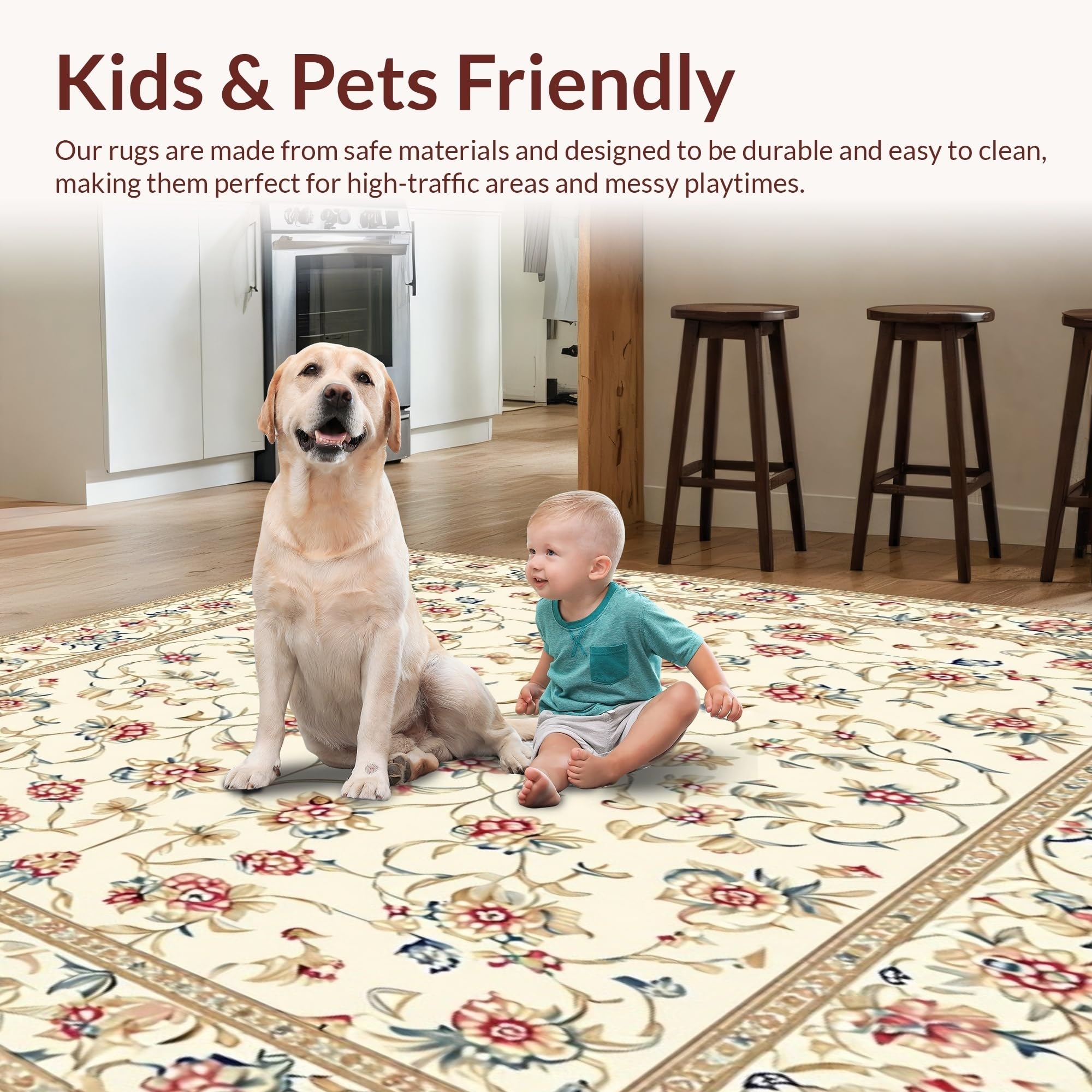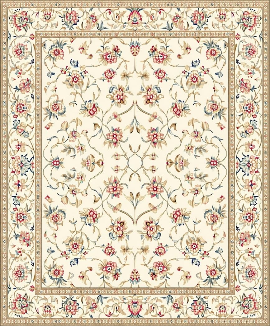 Ultra Soft Area Rug, Non Slip, Stain Resistant, Washable Area Rugs for Living Room, Bedroom, Elegant Floral Area with Beige and Colorful Accents(Ivory) Overview:
