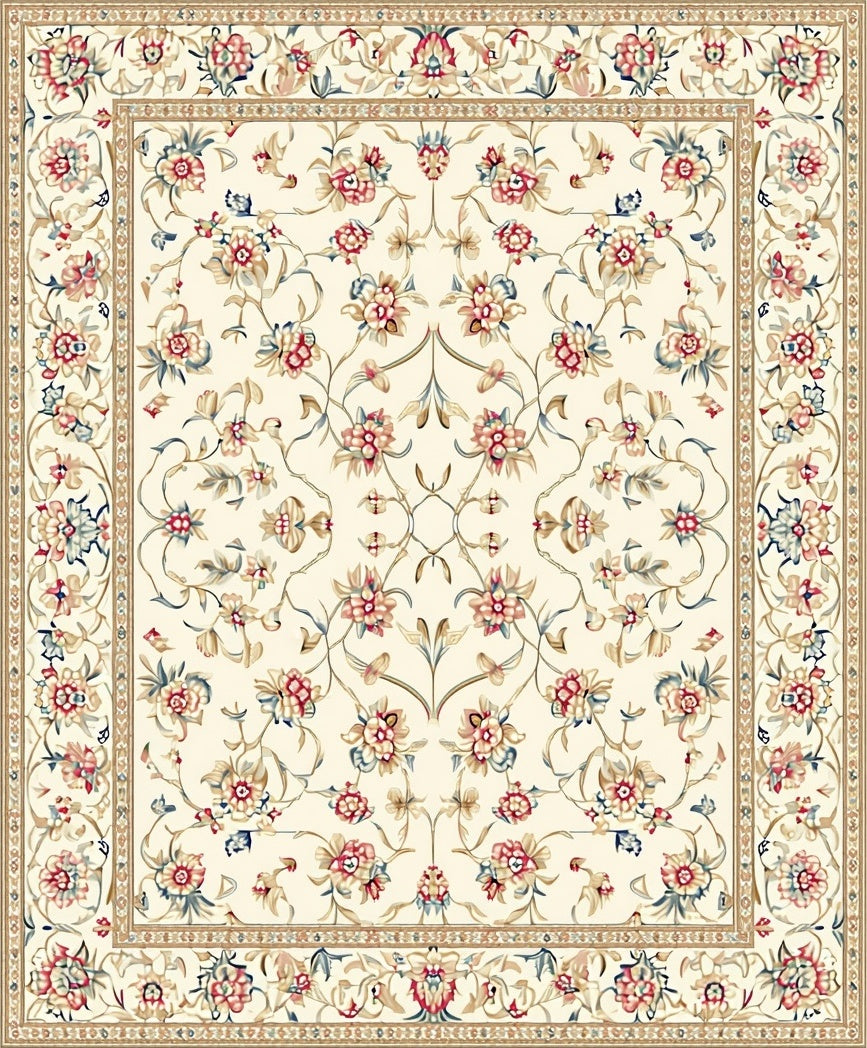 Elegant Floral Area with Beige and Colorful Accents(Ivory)
