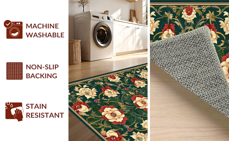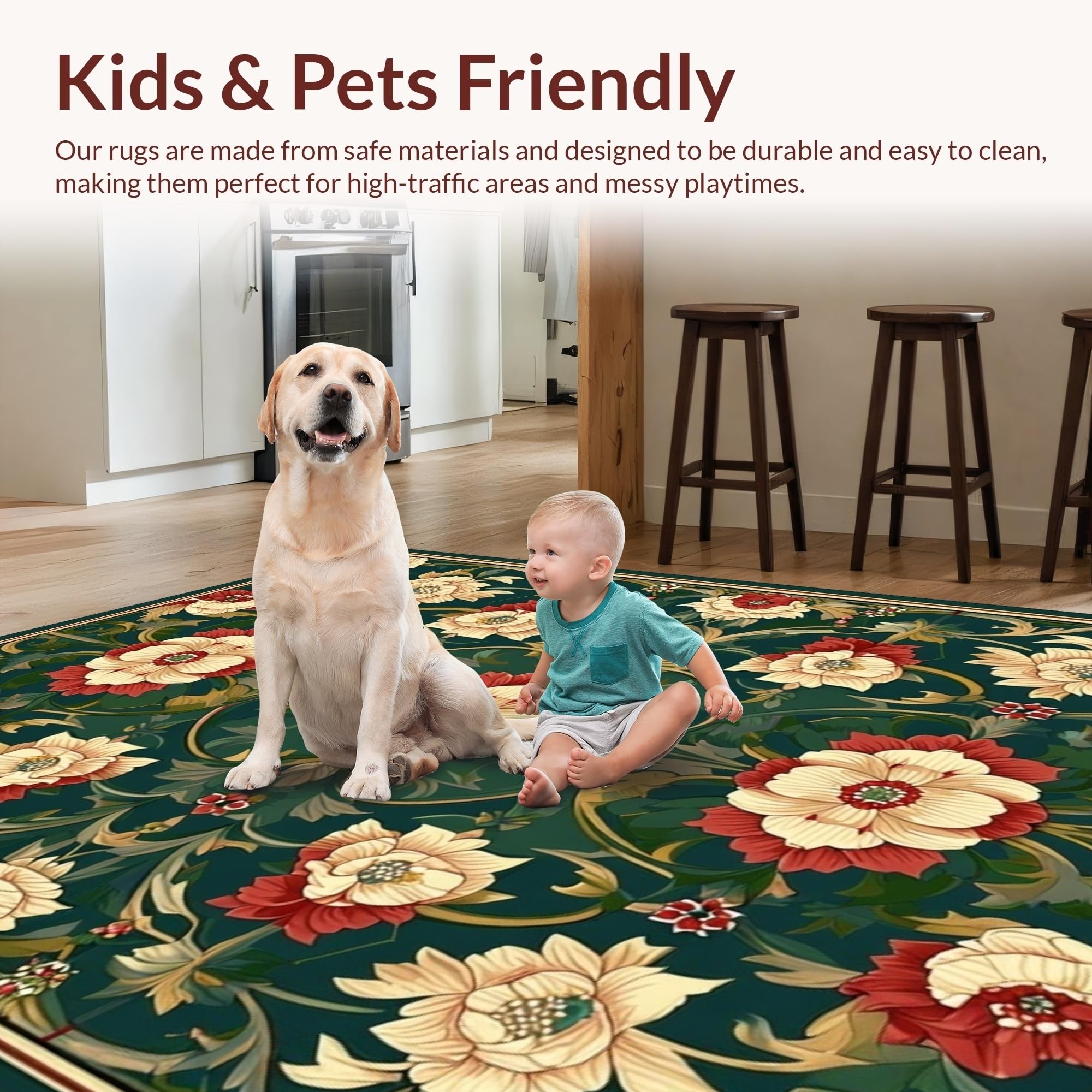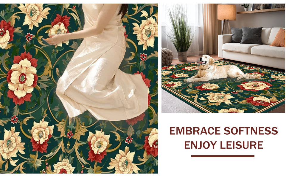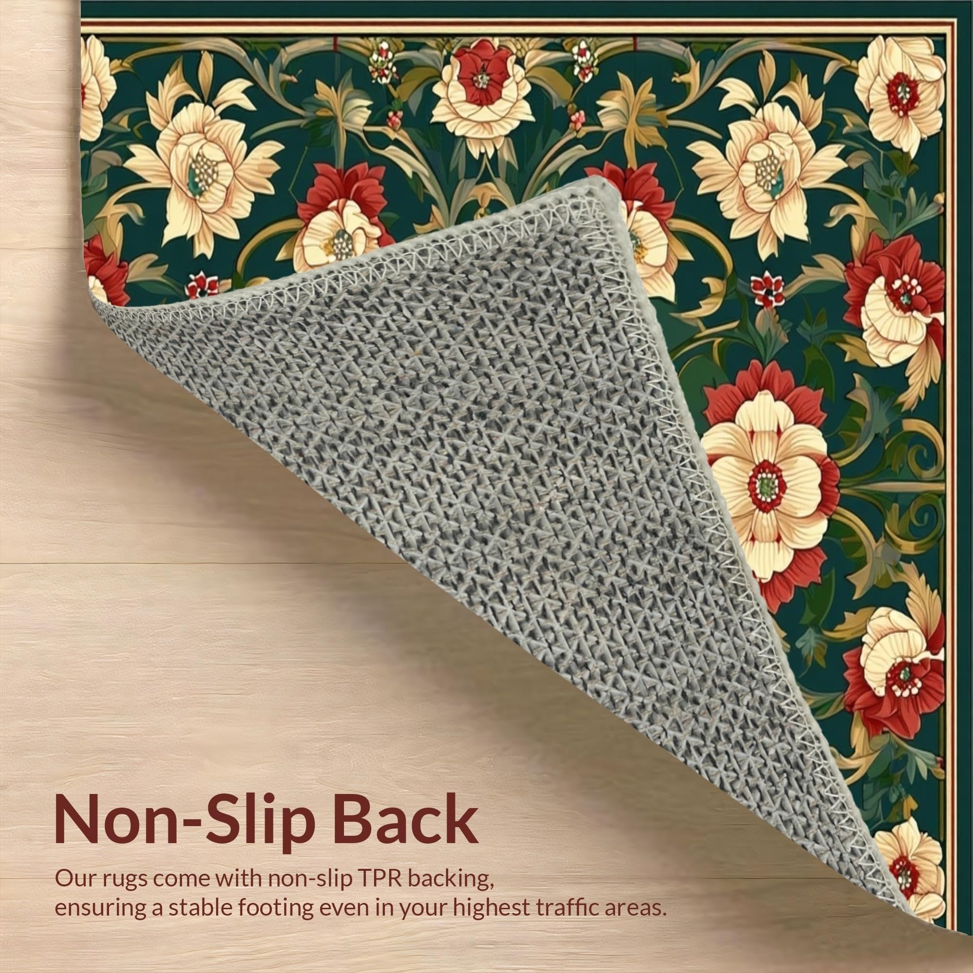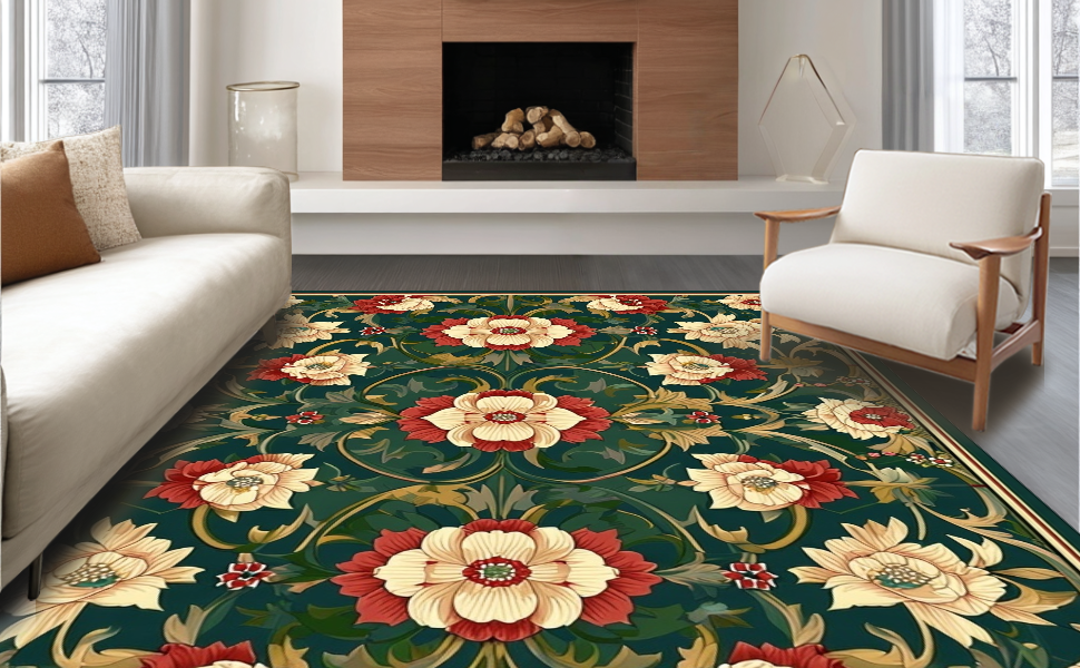 Ultra Soft Area Rug, Non Slip, Stain Resistant, Washable Area Rugs for Living Room, Bedroom, Elegant Floral Art Nouveau Aesthetic(Green) Overview: