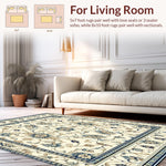 Ultra Soft Area Rug, Non Slip, Stain Resistant, Washable Area Rugs for Living Room, Bedroom, Elegant Floral Beige and Azure Area(Beige) Overview: