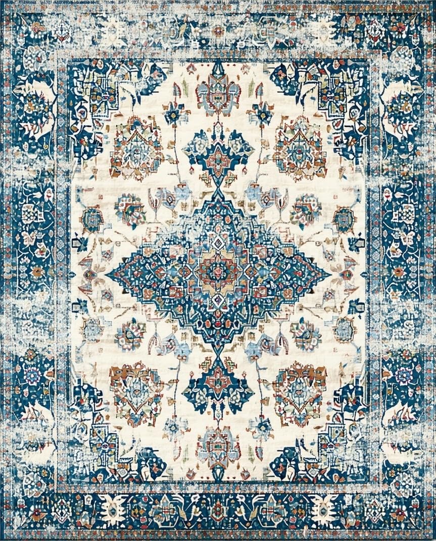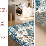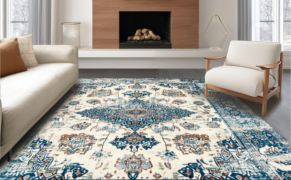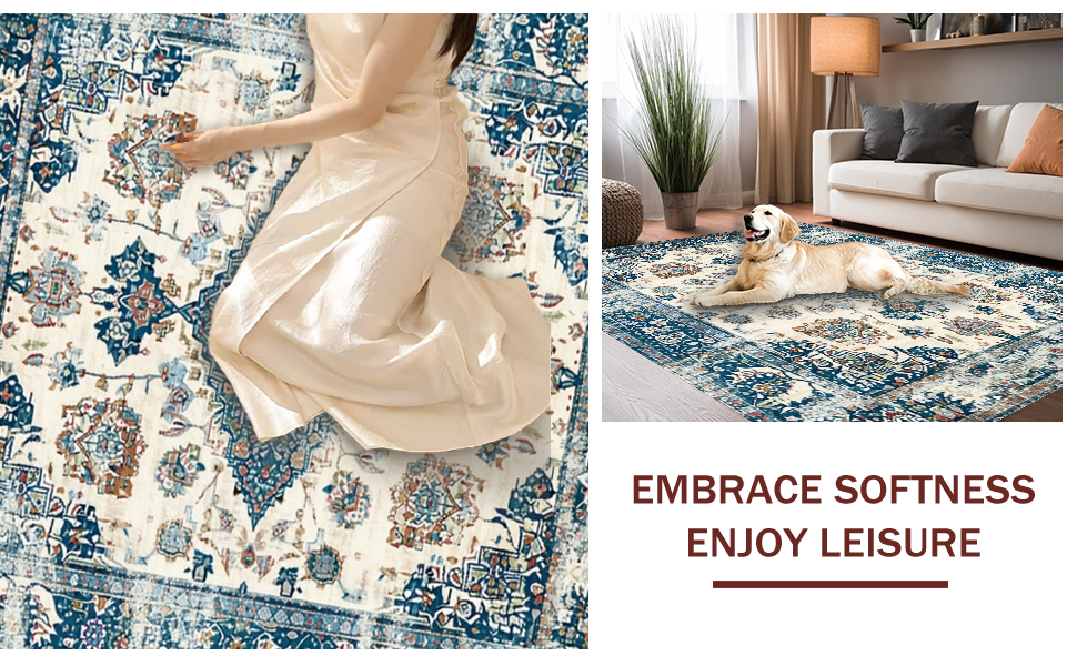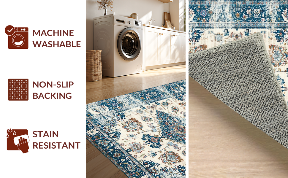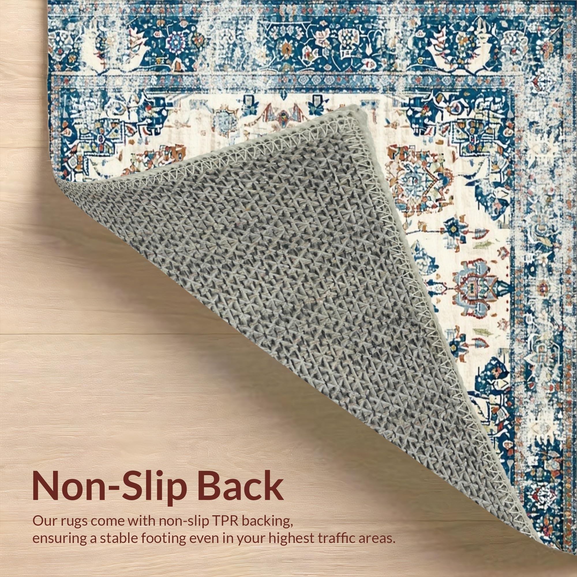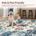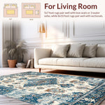 Ultra Soft Area Rug, Non Slip, Stain Resistant, Washable Area Rugs for Living Room, Bedroom, Elegant Floral Distressed Motif(Blue) Overview: