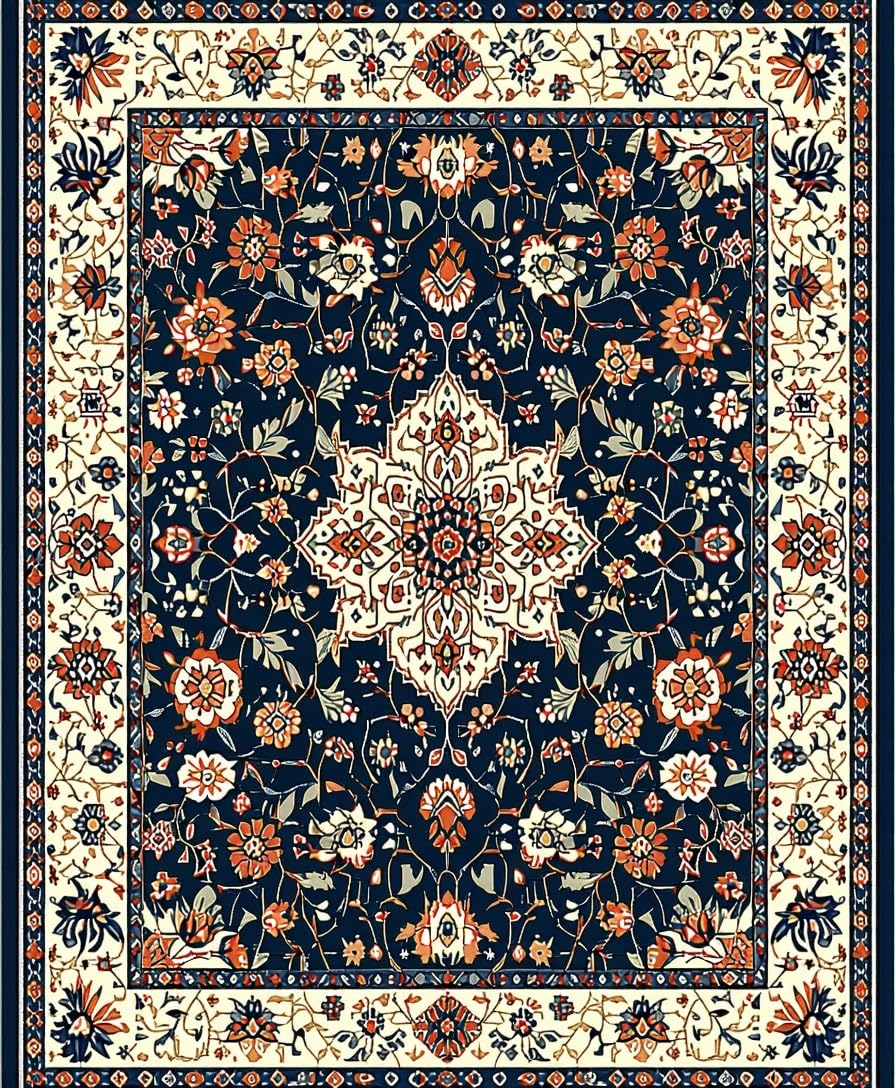 Ultra Soft Area Rug, Non Slip, Stain Resistant, Washable Area Rugs for Living Room, Bedroom, Elegant Floral Medallion Aesthetic(Blue) Overview: