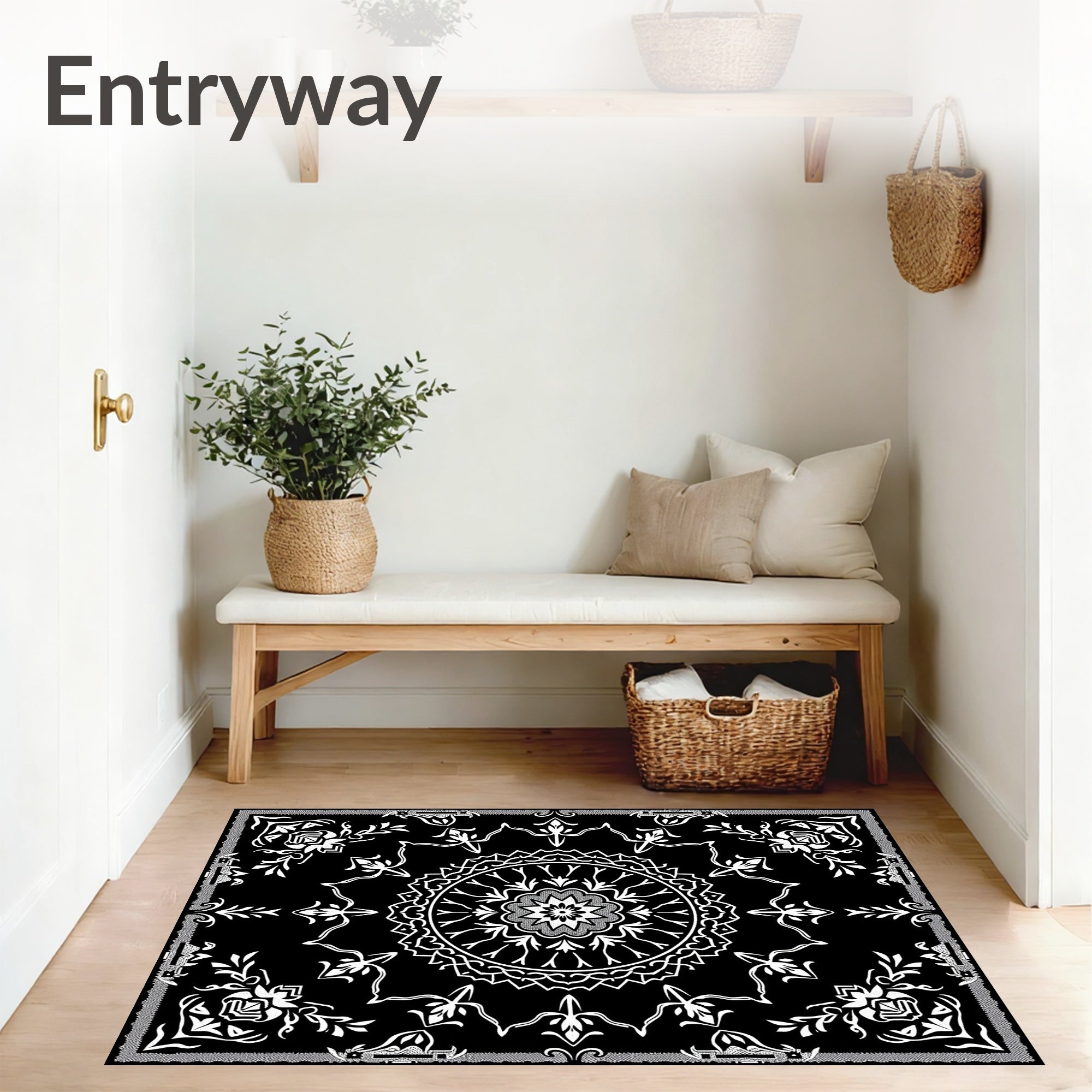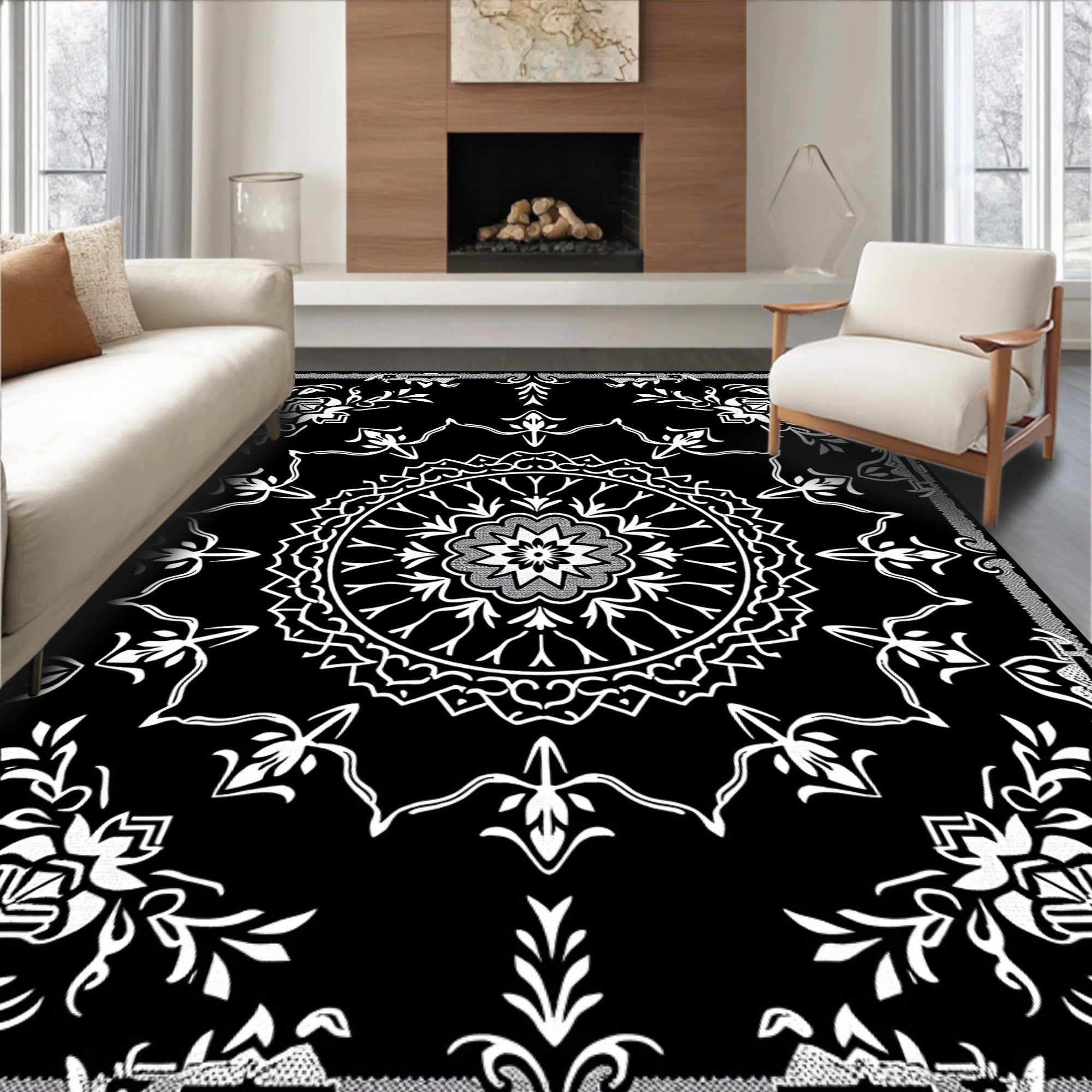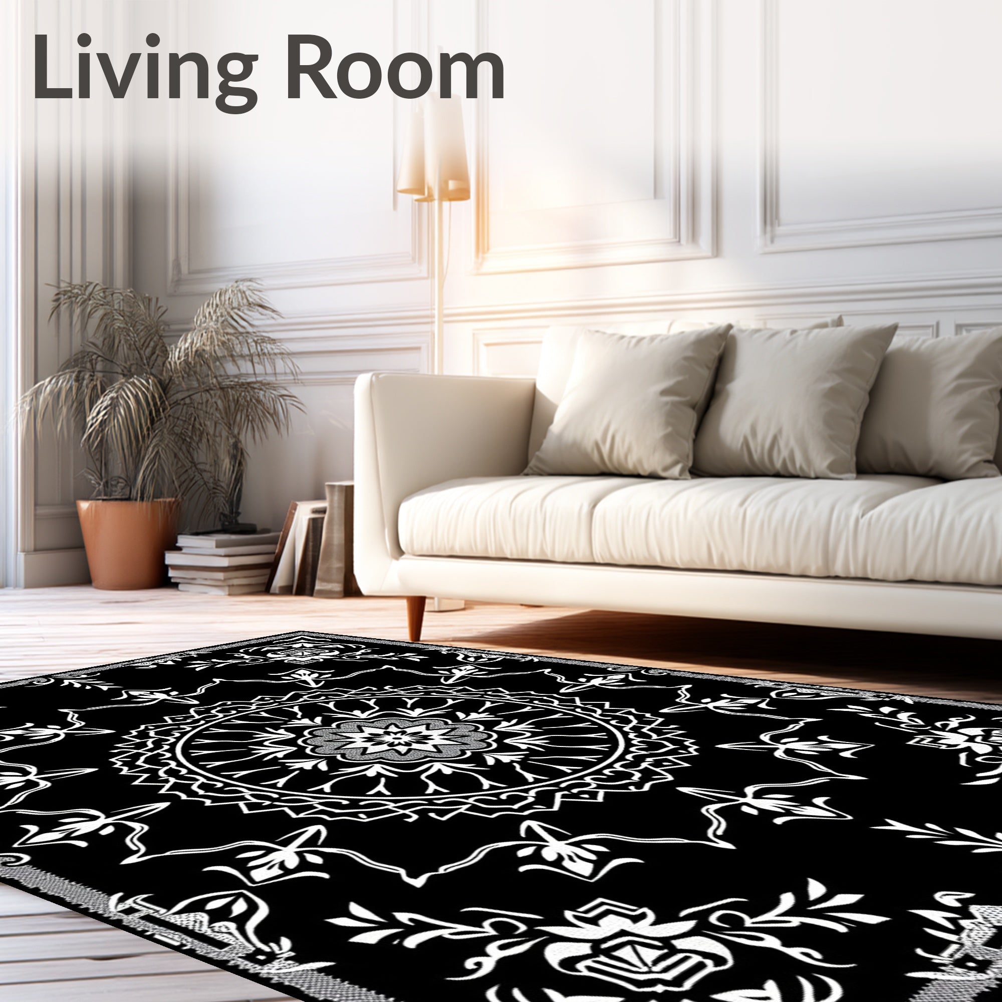 Ultra Soft Area Rug, Non Slip, Stain Resistant, Washable Area Rugs for Living Room, Bedroom, Elegant Floral Medallion Boho Decorative Accent(Black) Overview: