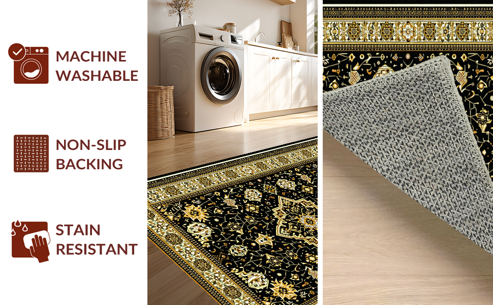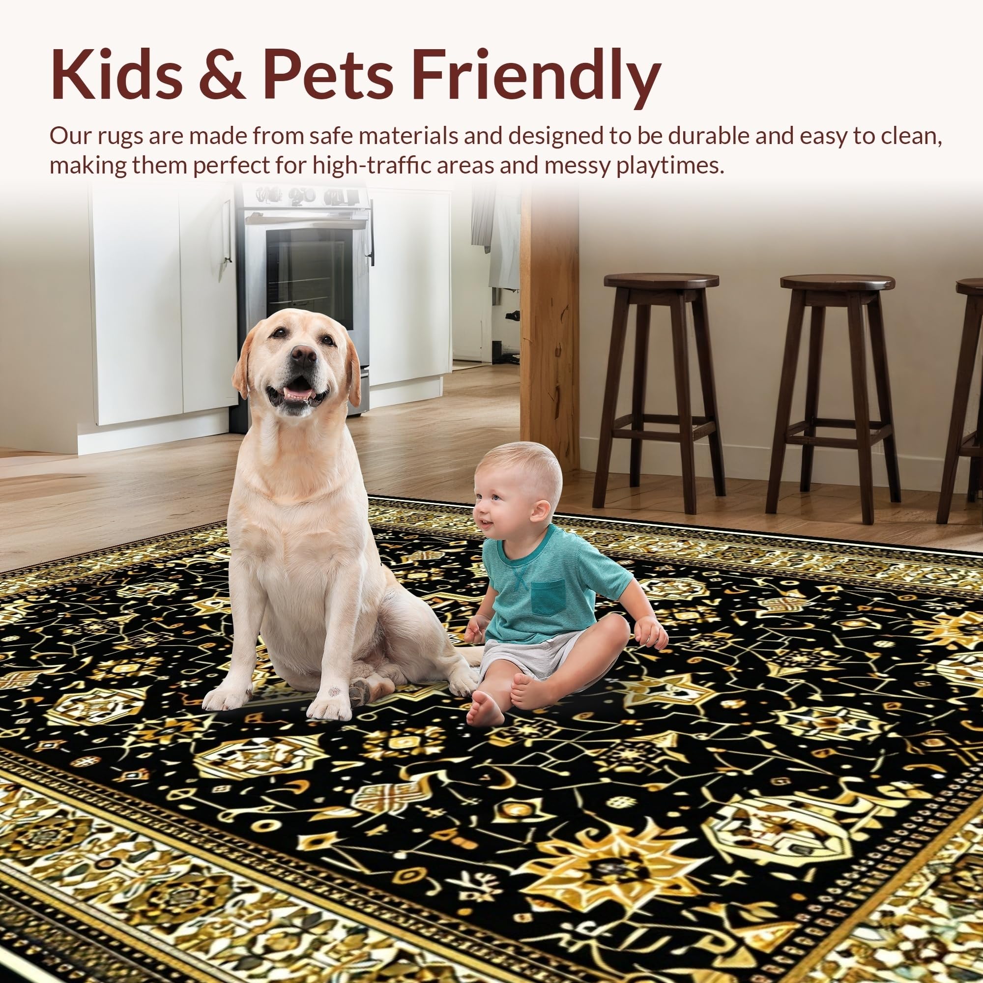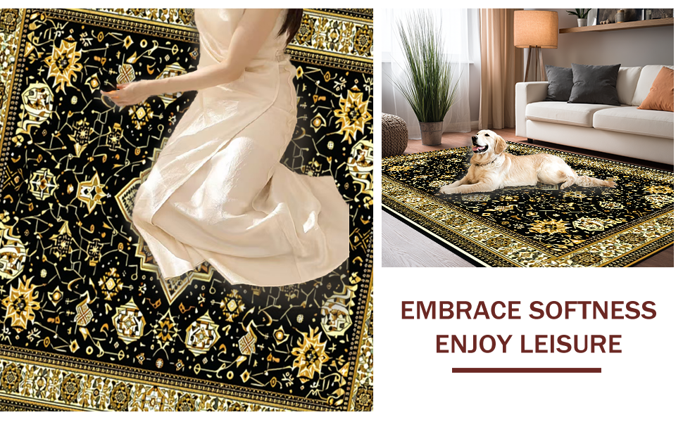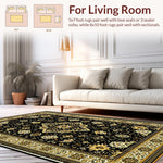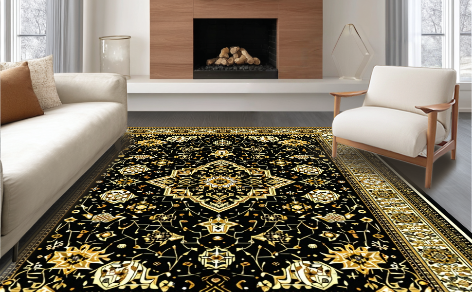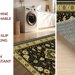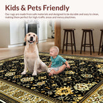 Ultra Soft Area Rug, Non Slip, Stain Resistant, Washable Area Rugs for Living Room, Bedroom, Elegant Floral Medallion Motif(Black) Overview: