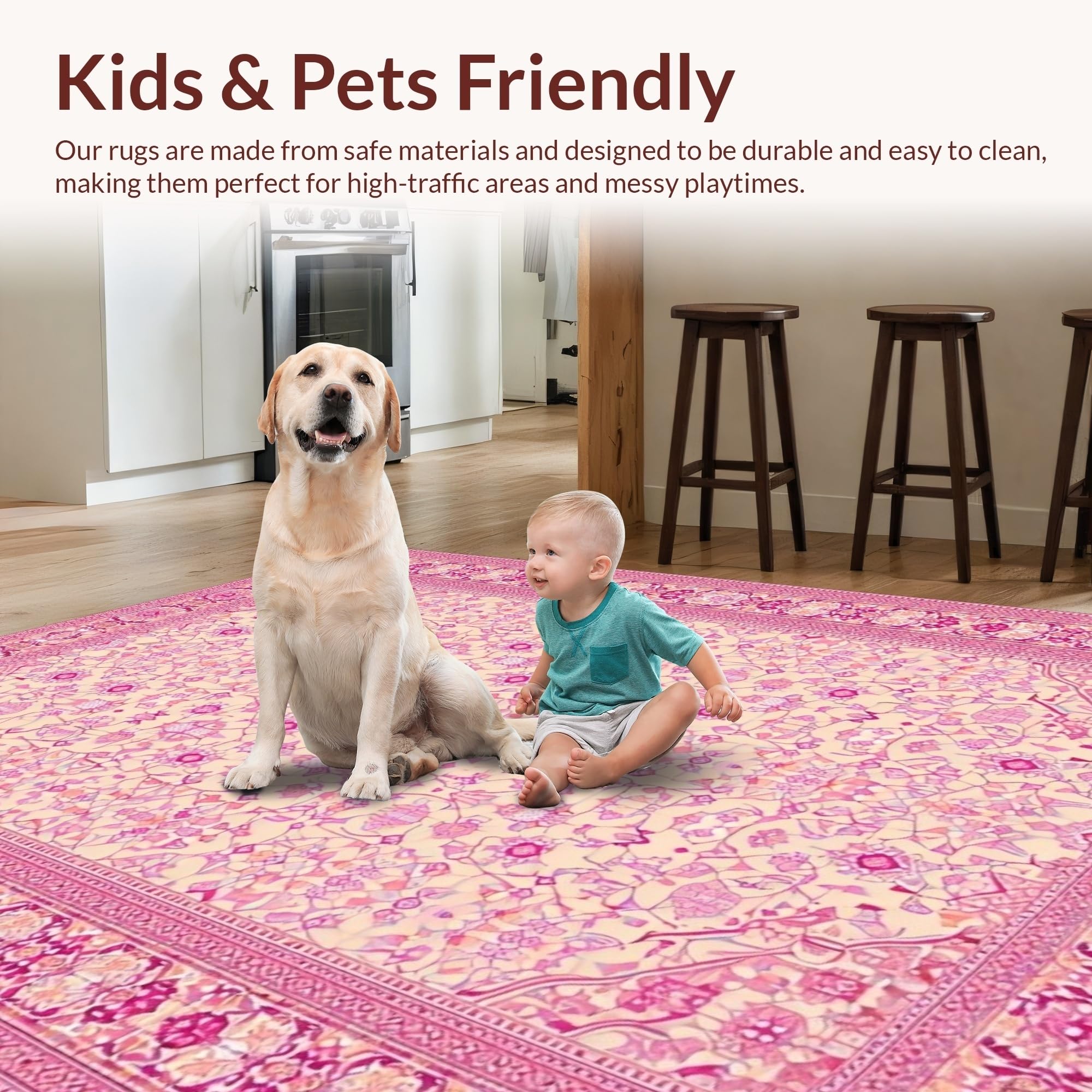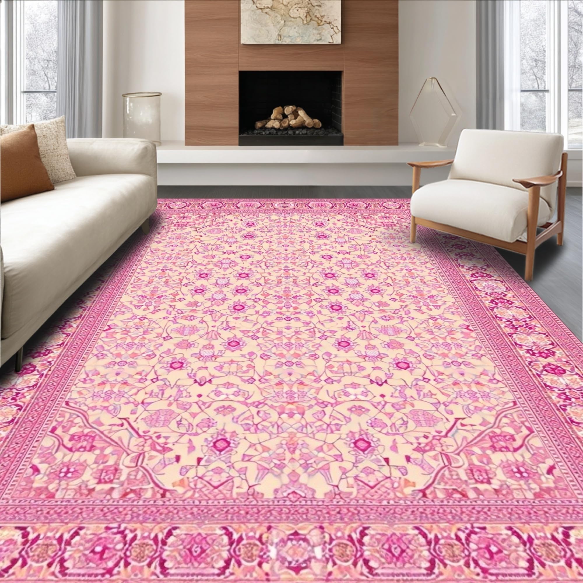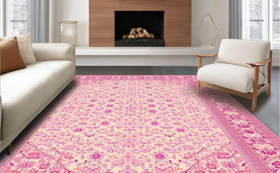 Ultra Soft Area Rug, Non Slip, Stain Resistant, Washable Area Rugs for Living Room, Bedroom, Elegant Floral Mosaic Aesthetic(Pink) Overview: