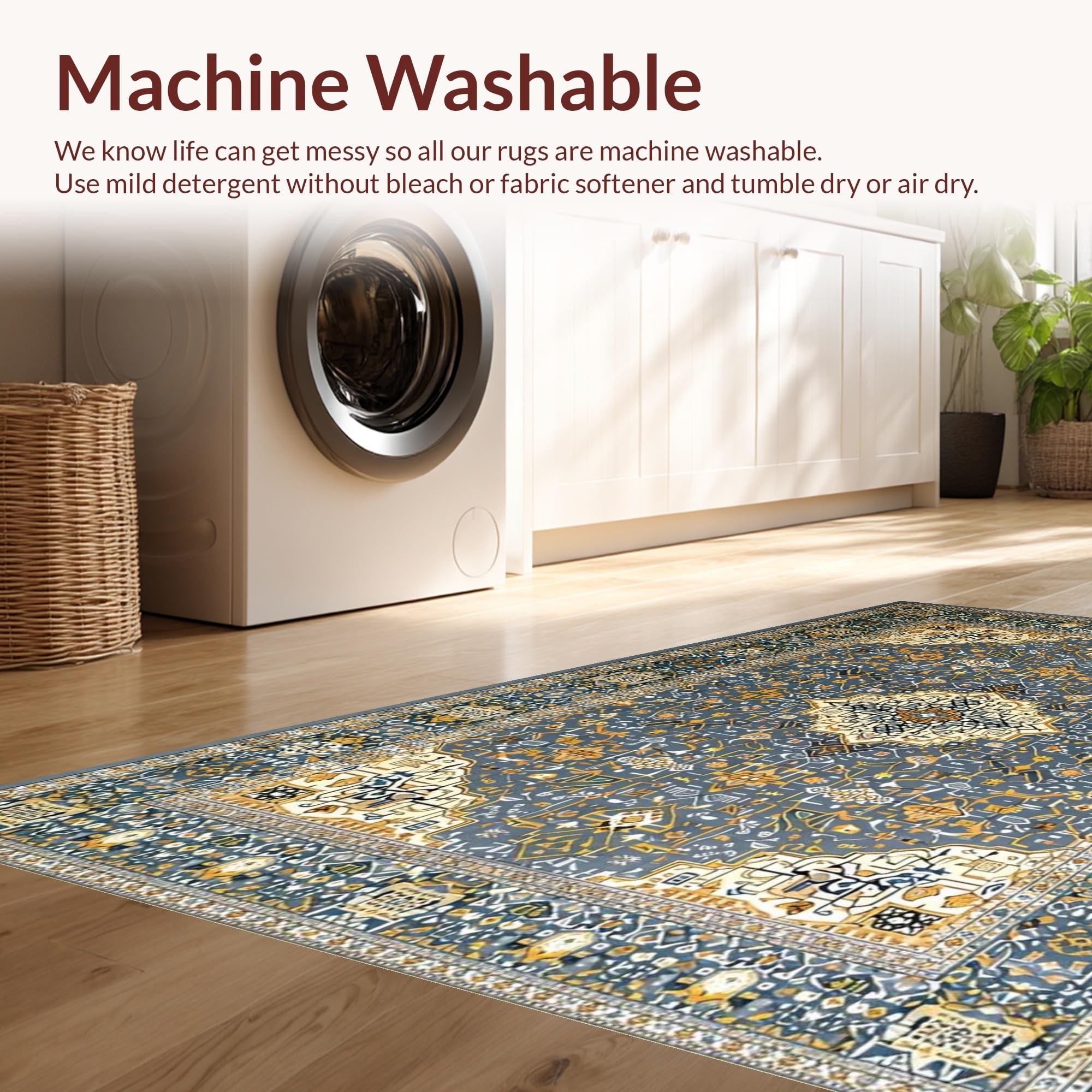 - Machine Washable: Our rugs can be easily thrown in the wash machine.