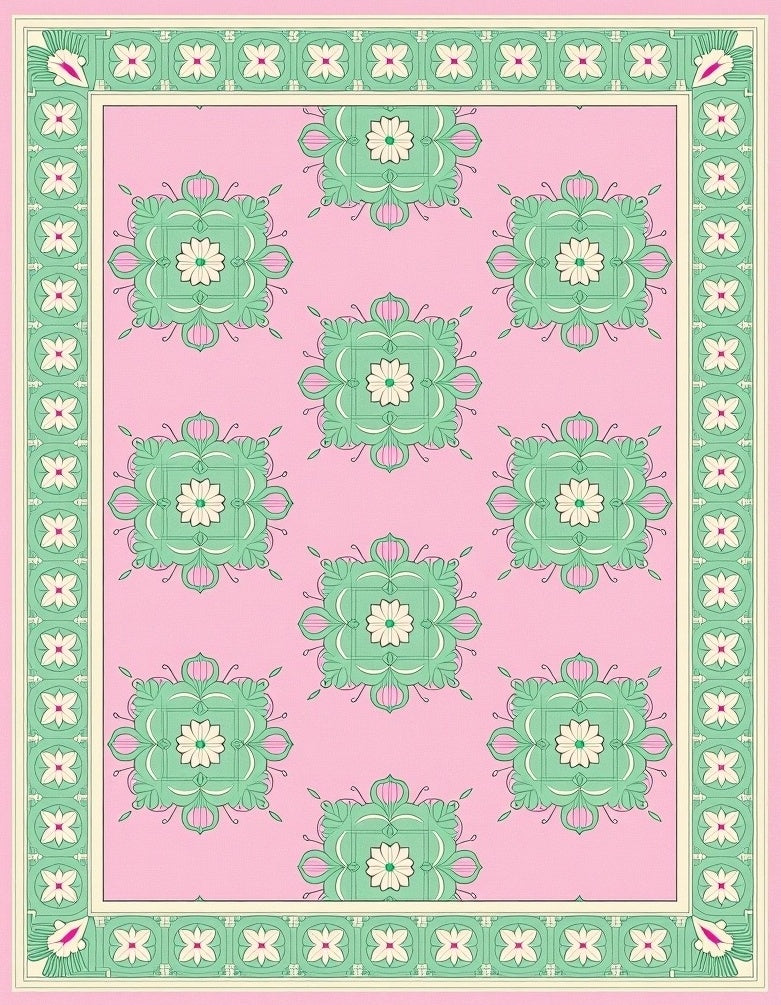 Elegant Floral Vine Lattice Medallion(Pink)