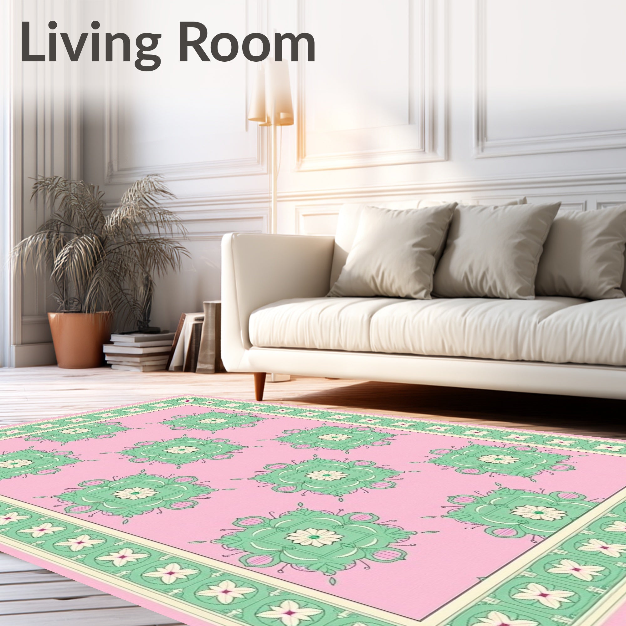 Flatwoven High Traffic Area Rug, Elegant Floral Vine Lattice Medallion, Non Slip, Stain Resistant, Washable Area Rugs for Living Room, Bedroom (Pink) Overview: