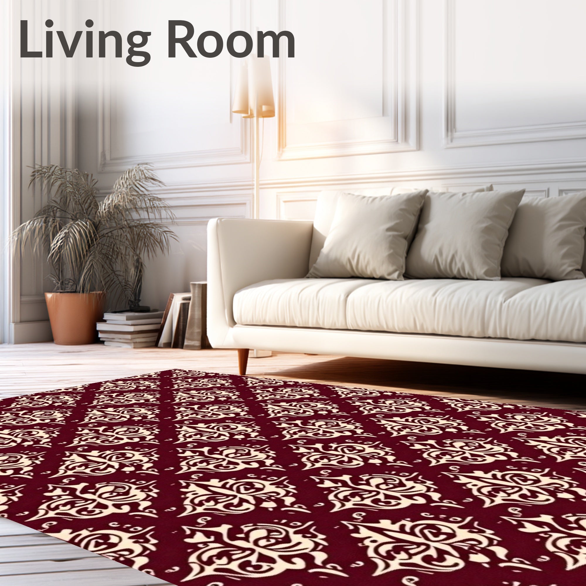 Ultra Soft Area Rug, Non Slip, Stain Resistant, Washable Area Rugs for Living Room, Bedroom, Elegant Floral Vine Swirl Celebration Pathway Accent(Red) Overview:
