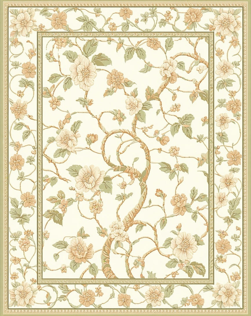 Elegant Floral Vines Graceful Beige Patterned Floor(Ivory)