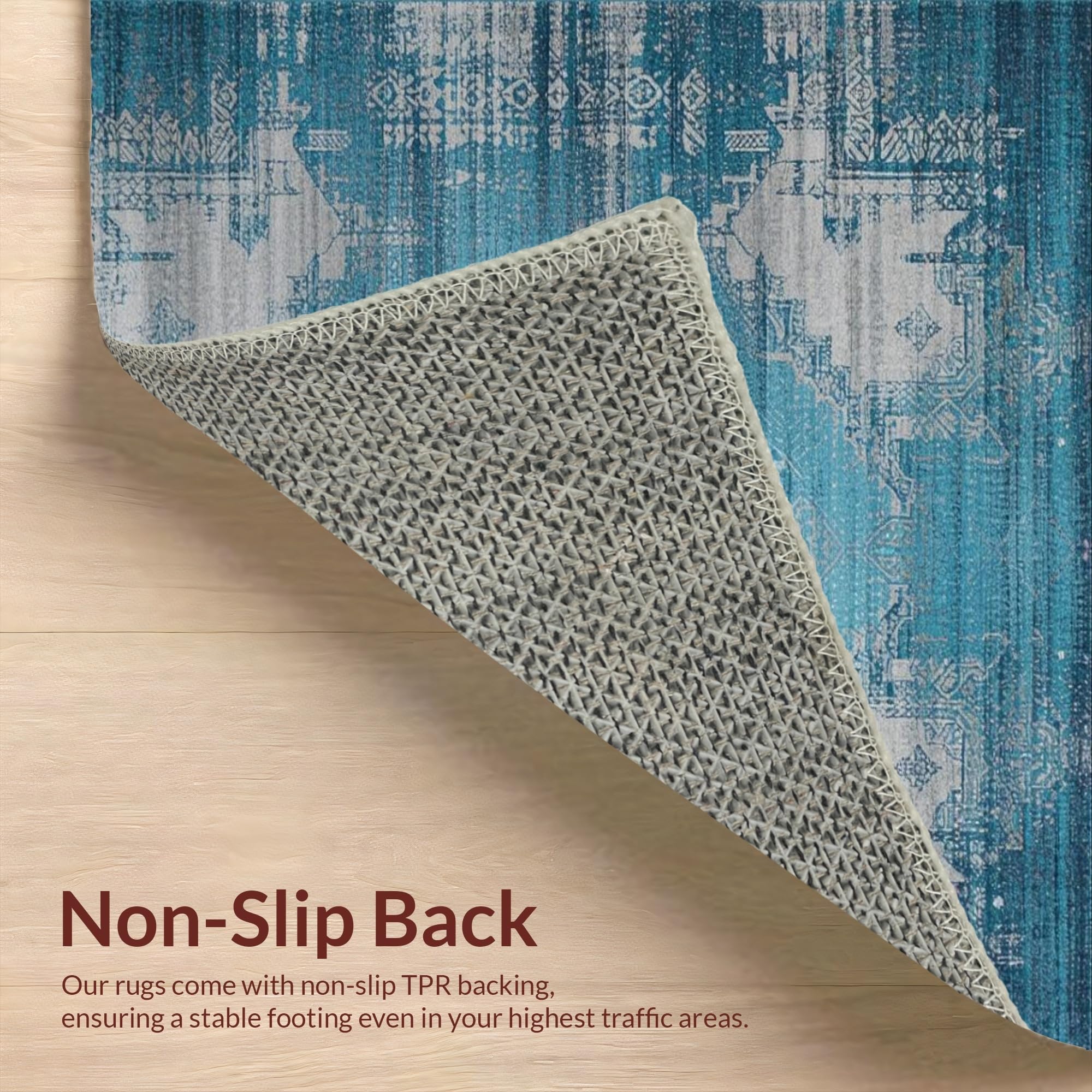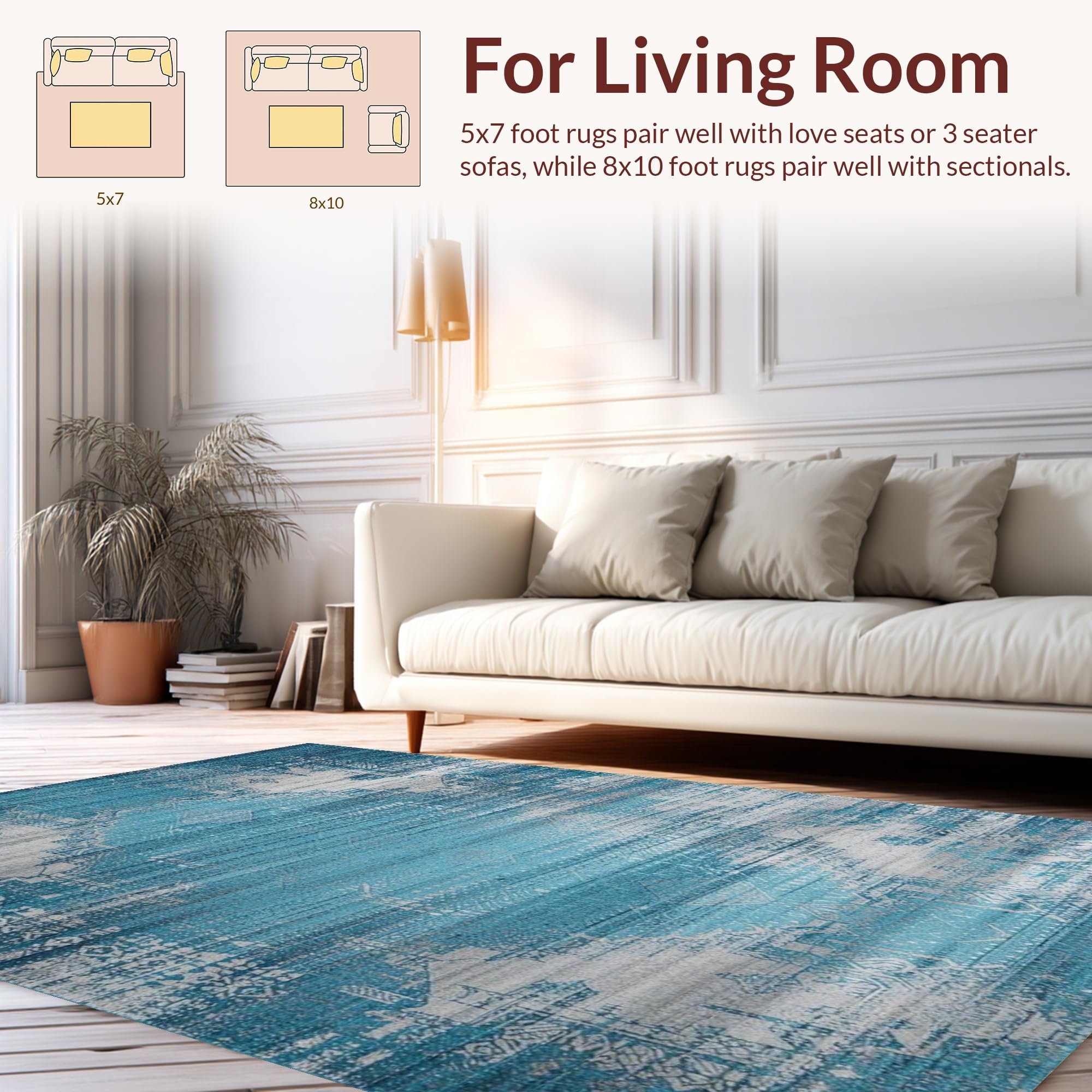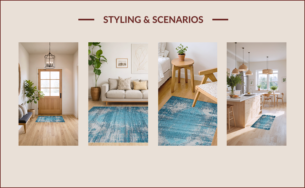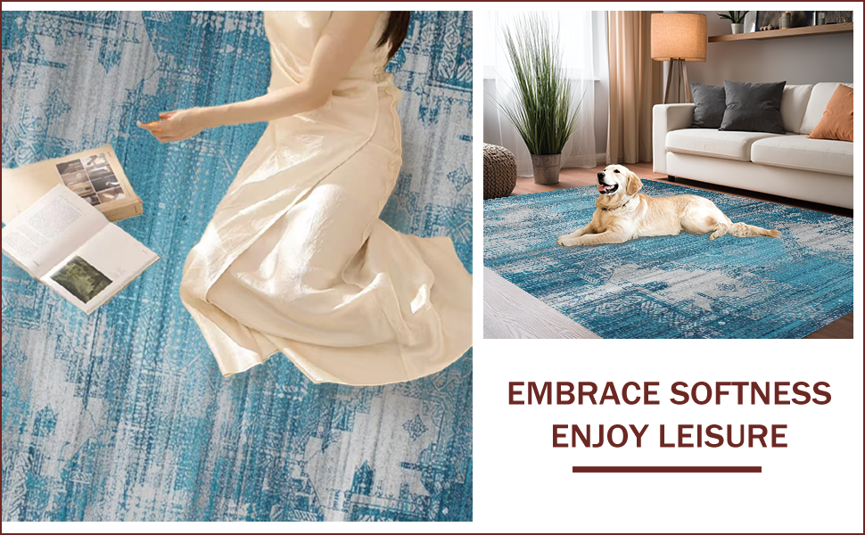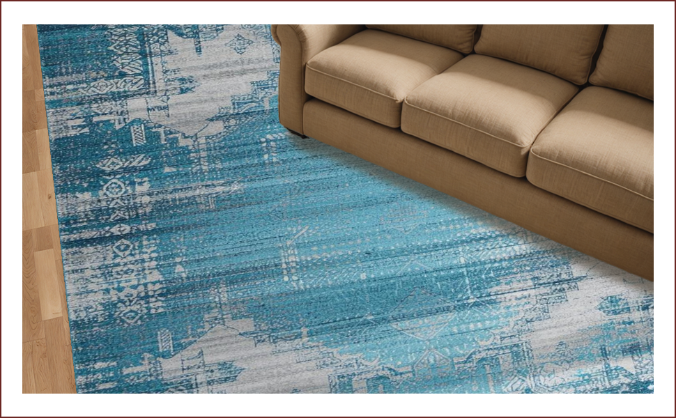 Ultra Soft Area Rug, Non Slip, Stain Resistant, Washable Area Rugs for Living Room, Bedroom, Elegant Floral Vintage Aesthetic(Blue) Overview: