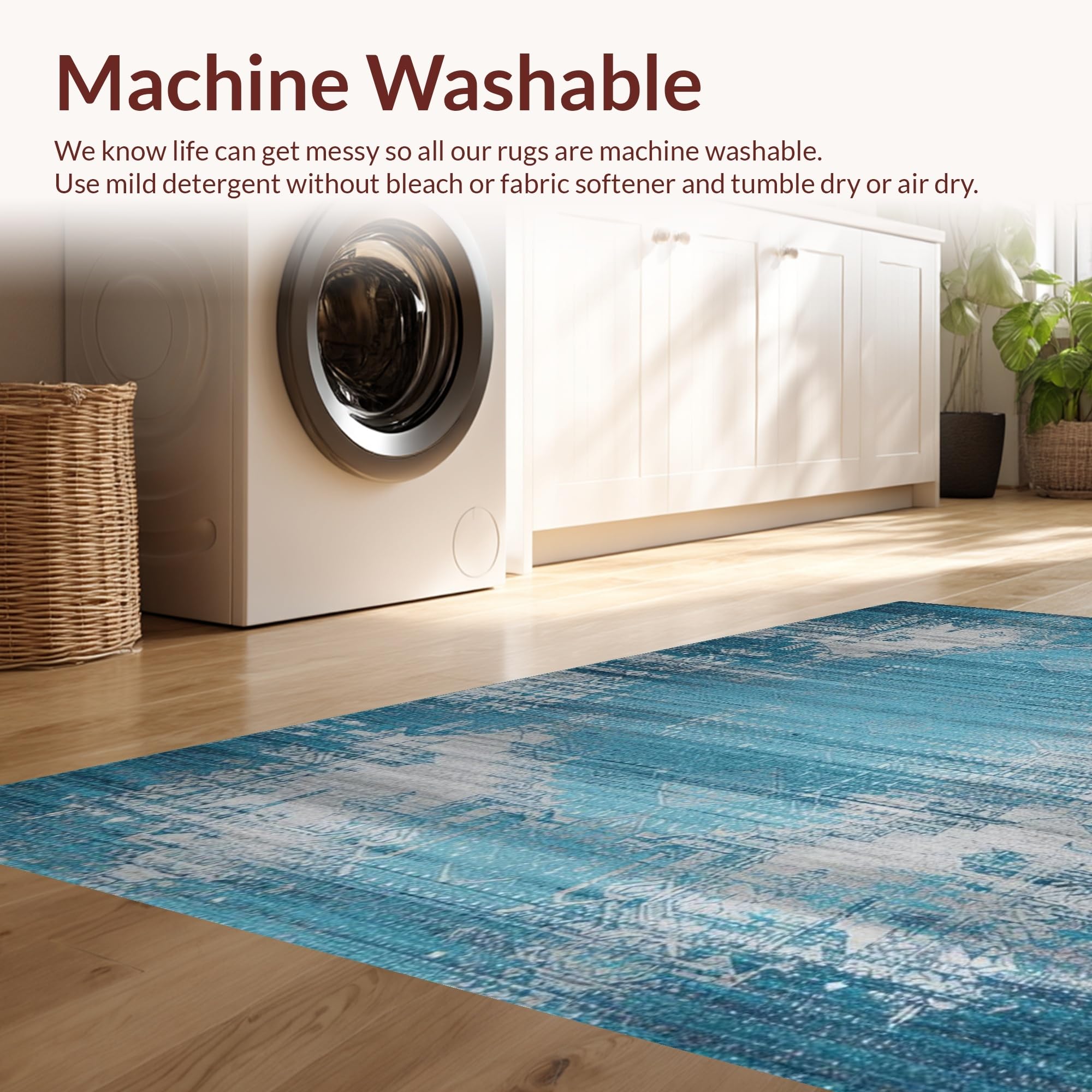 - Machine Washable: Our rugs can be easily thrown in the wash machine.