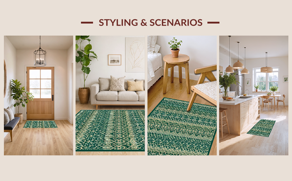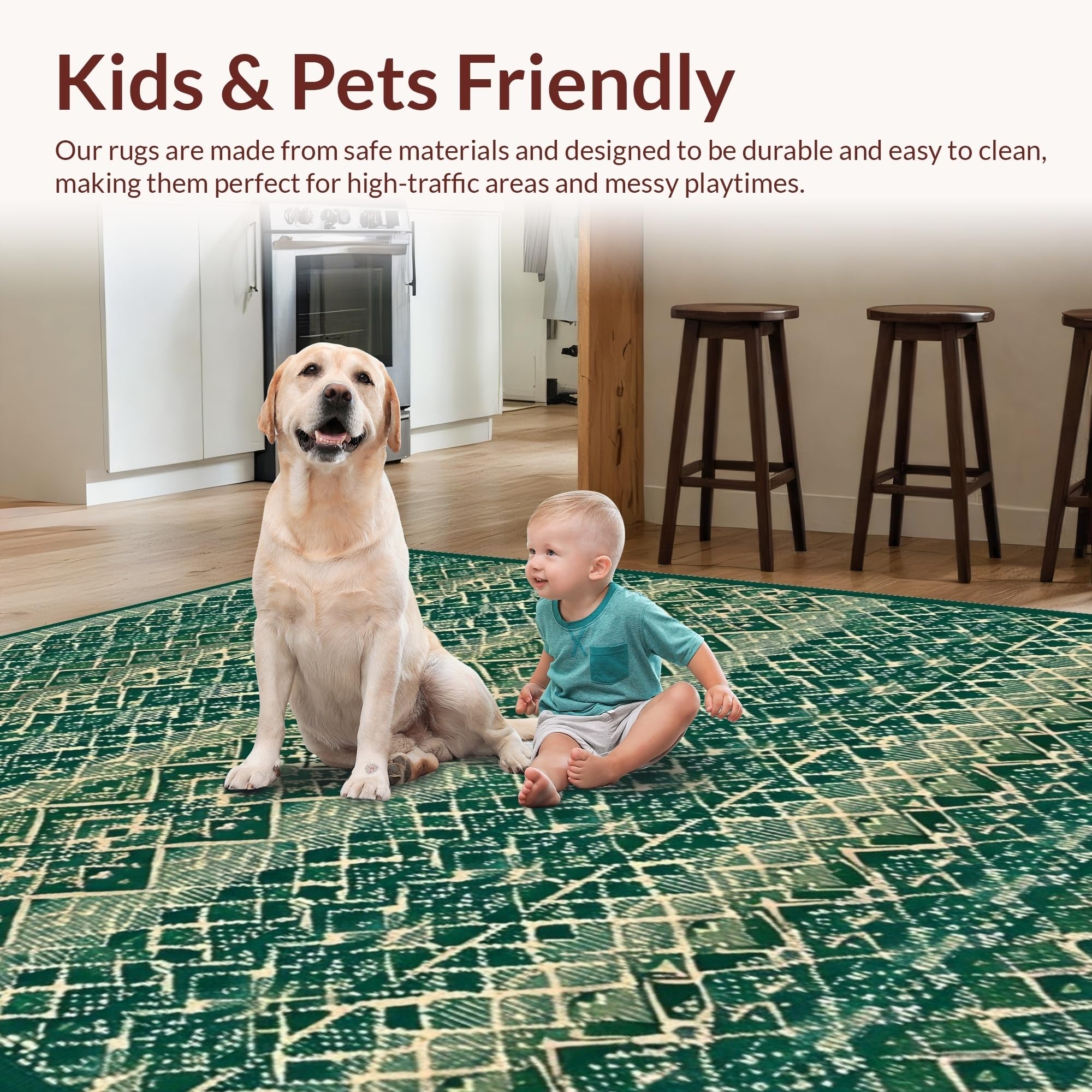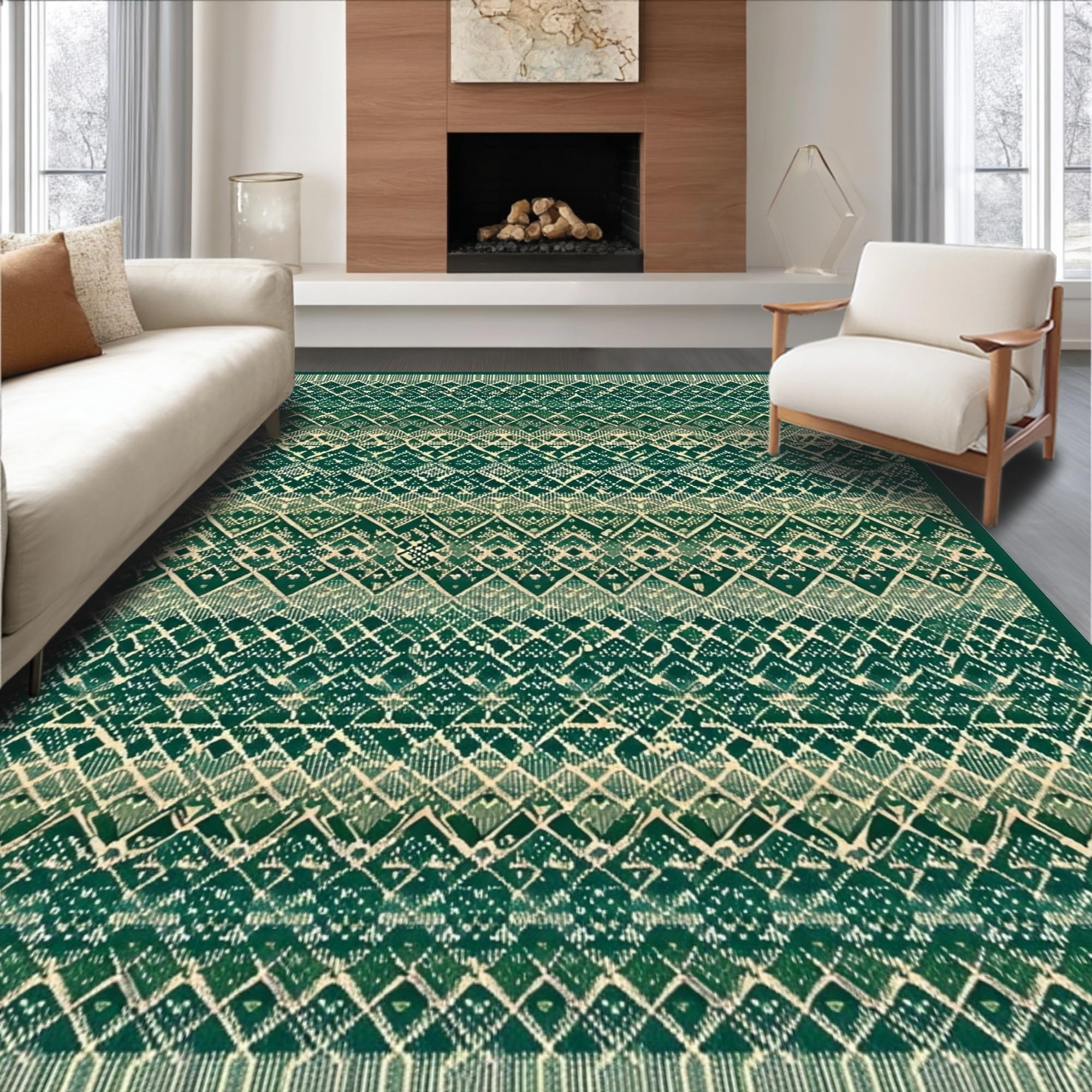 Ultra Soft Area Rug, Non Slip, Stain Resistant, Washable Area Rugs for Living Room, Bedroom, Elegant Floral Watercolor Motif(Green) Overview: