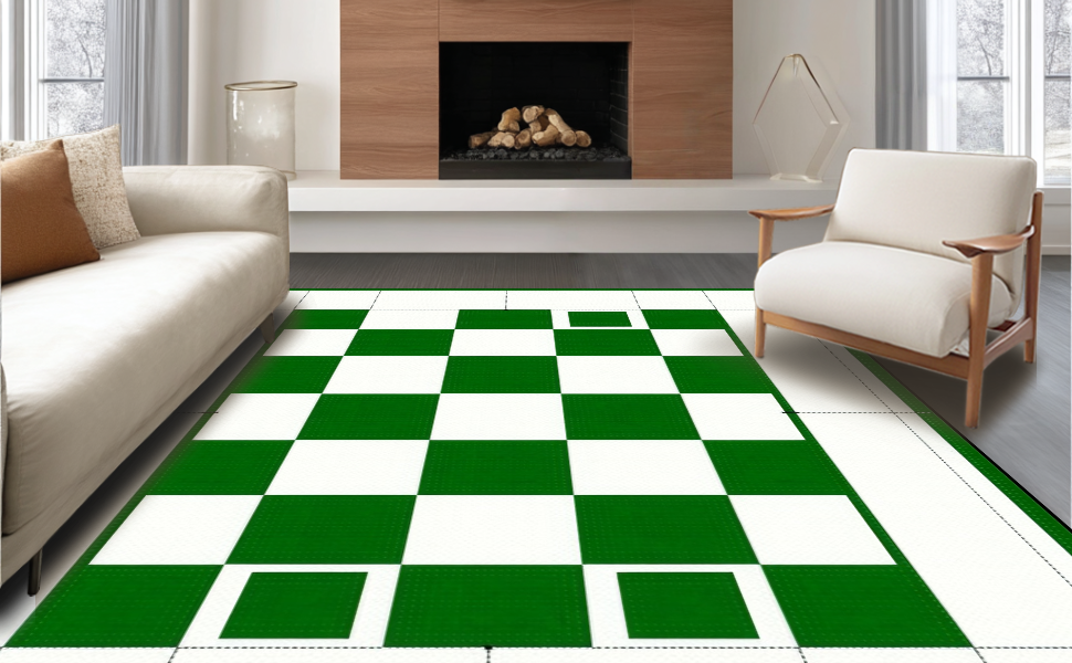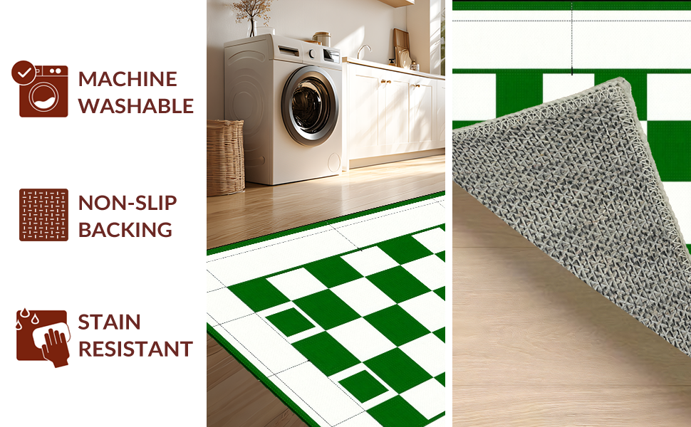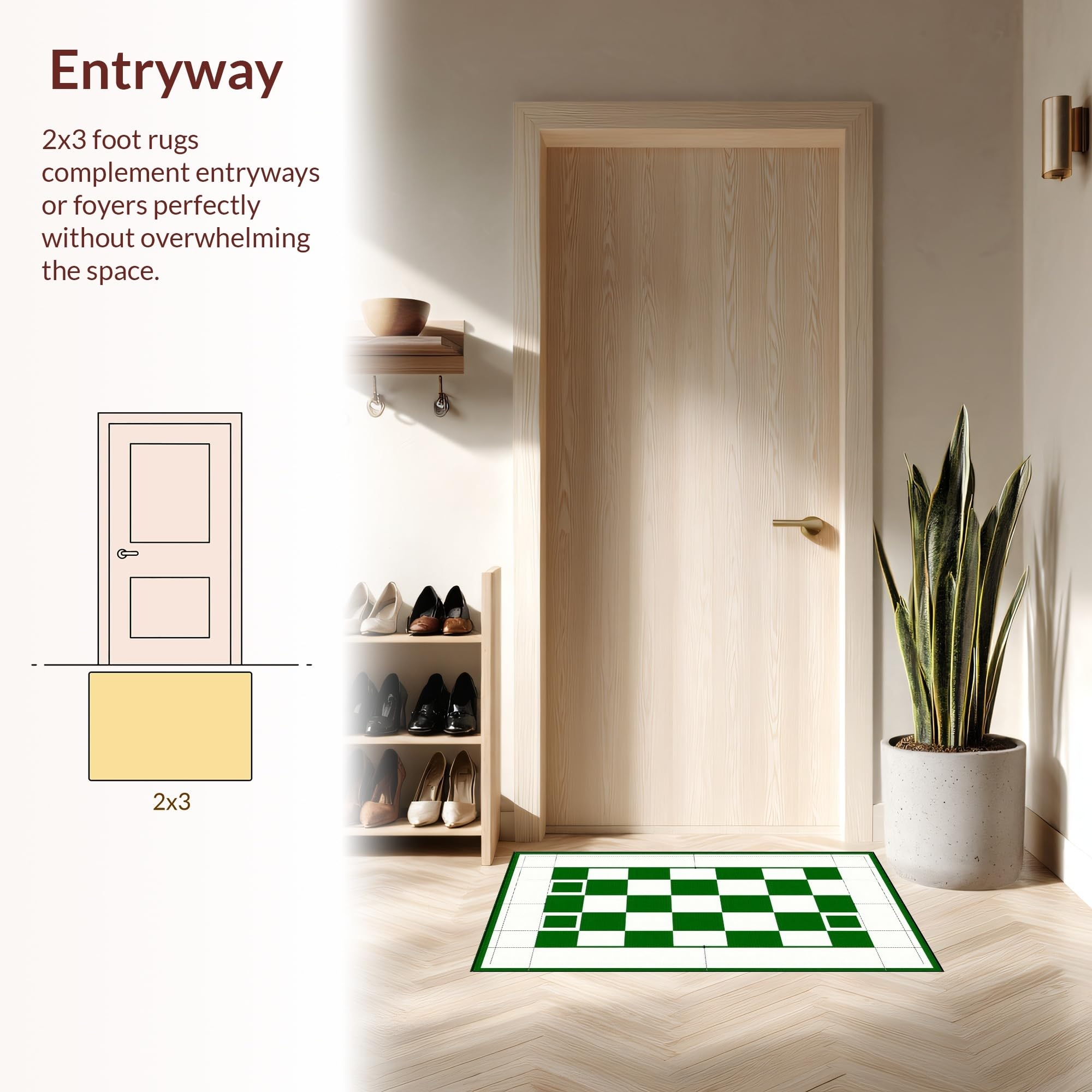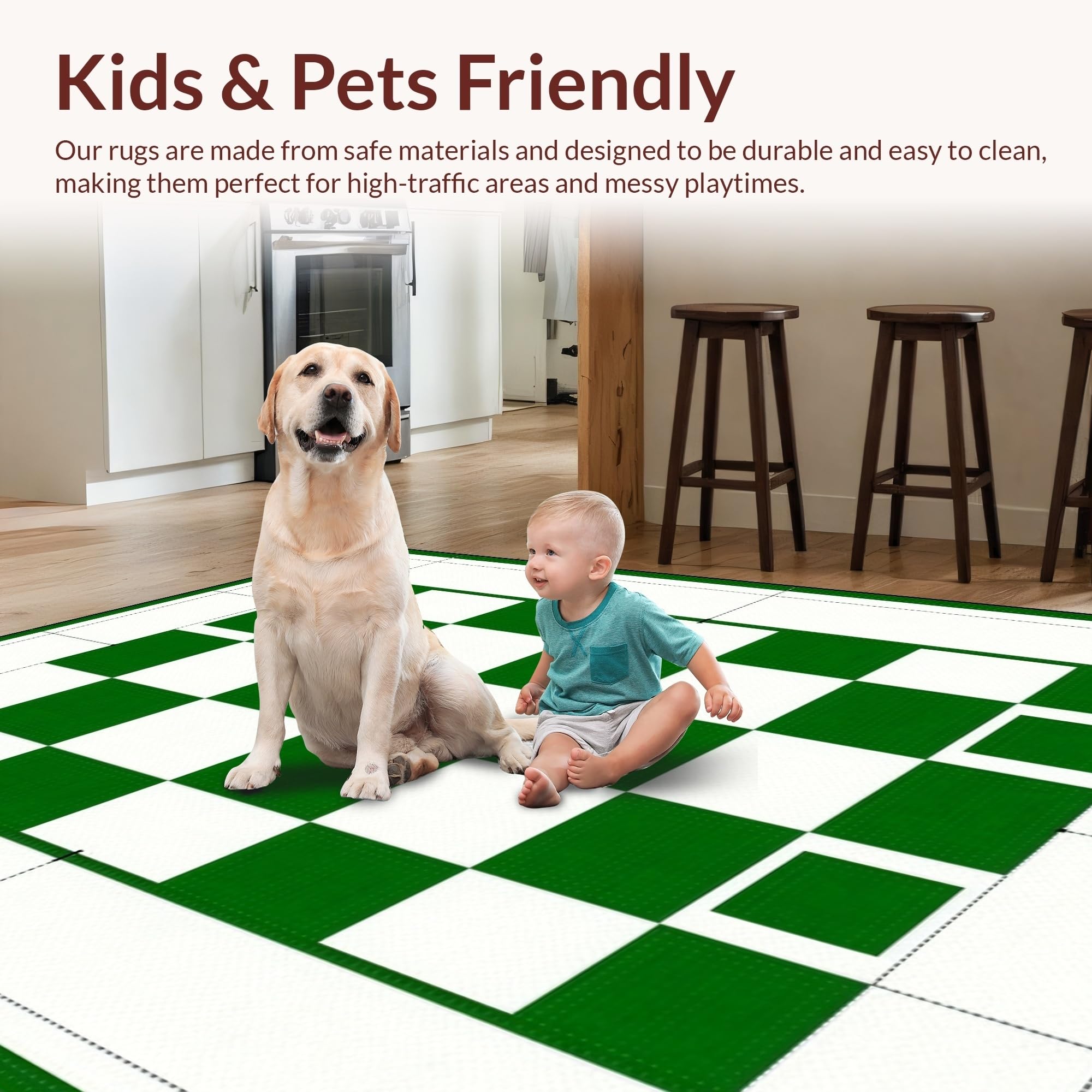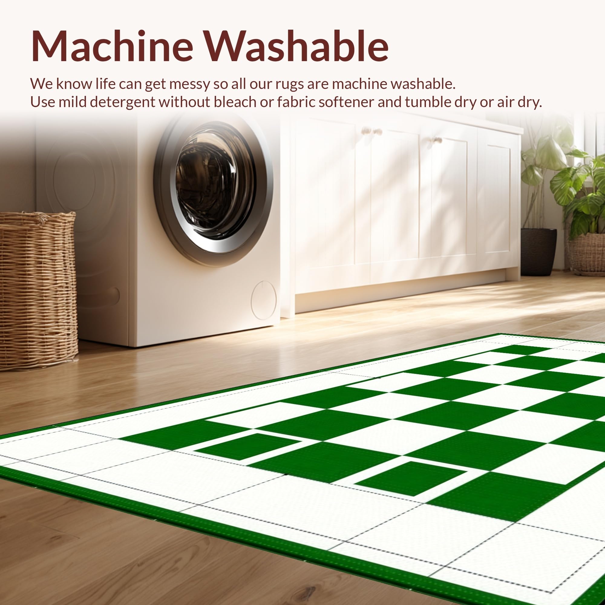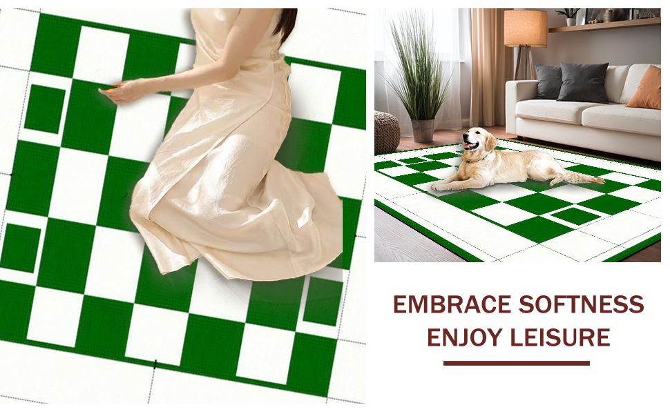 Ultra Soft Area Rug, Non Slip, Stain Resistant, Washable Area Rugs for Living Room, Bedroom, Elegant Fluffy Checker Design(Green) Overview: