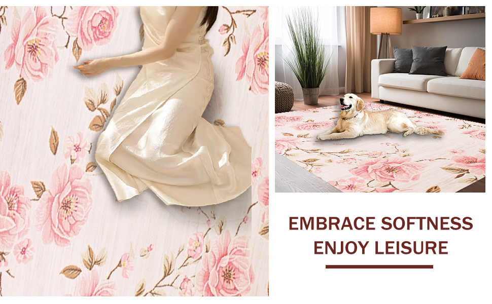Ultra Soft Area Rug, Non Slip, Stain Resistant, Washable Area Rugs for Living Room, Bedroom, Elegant Fluffy Minimalist Aesthetic(Pink) Overview: