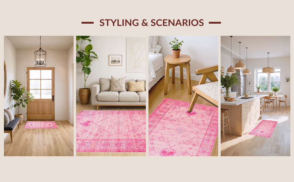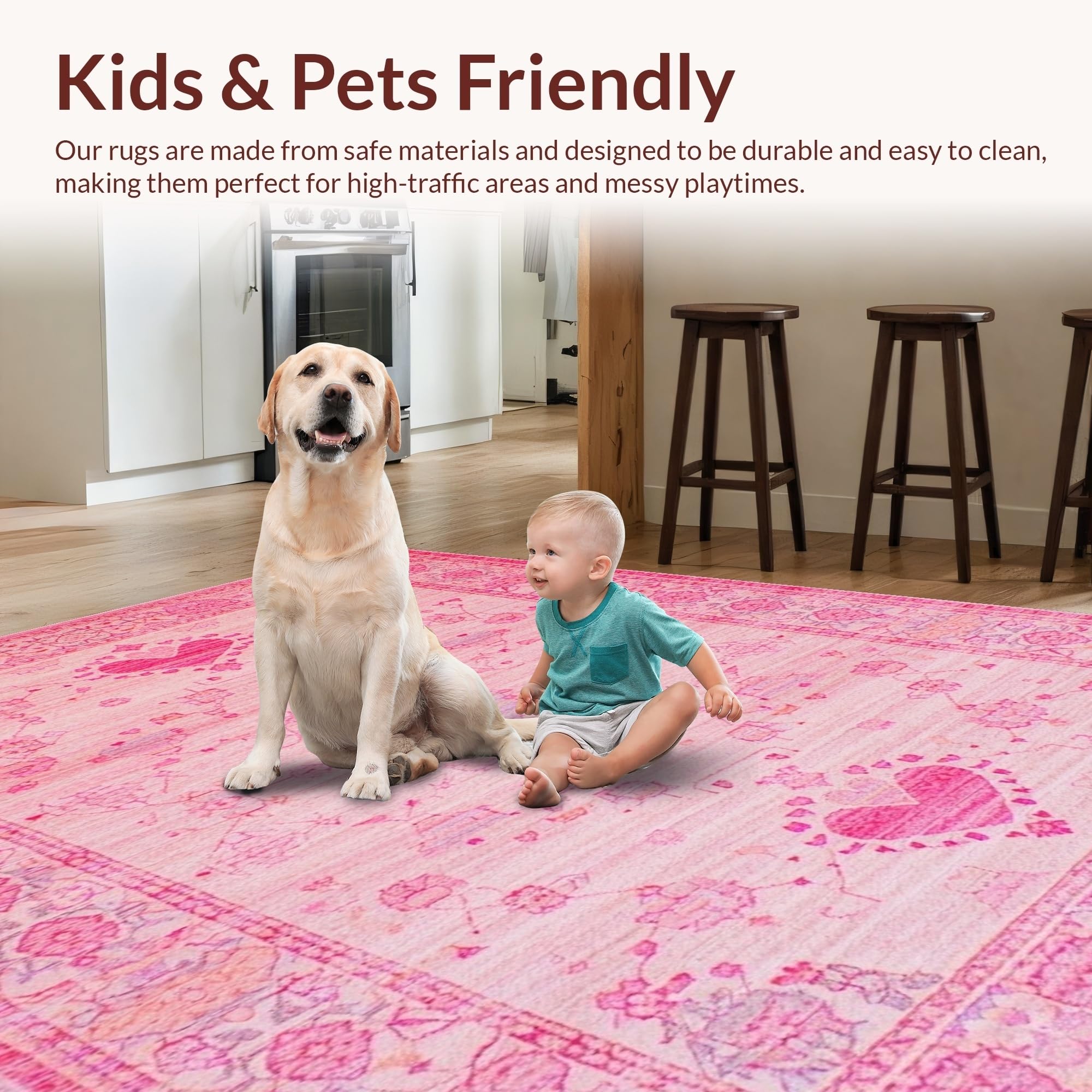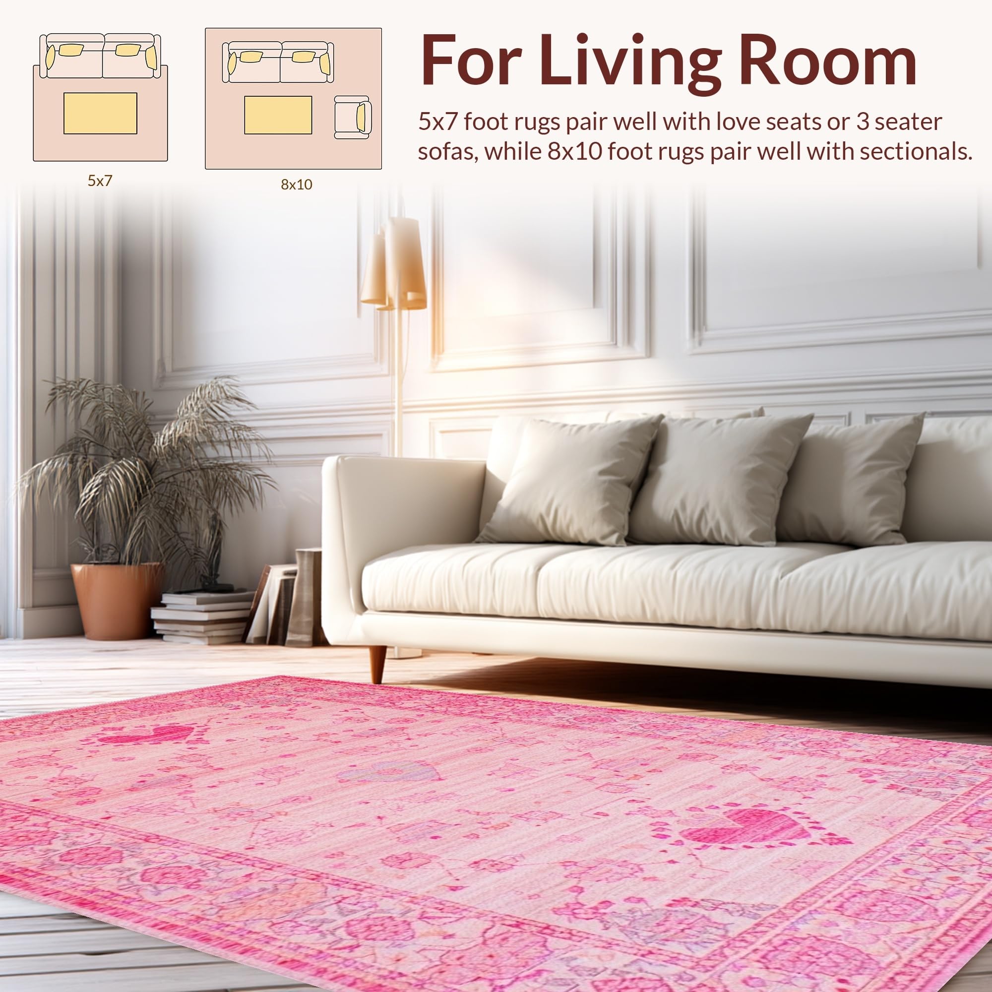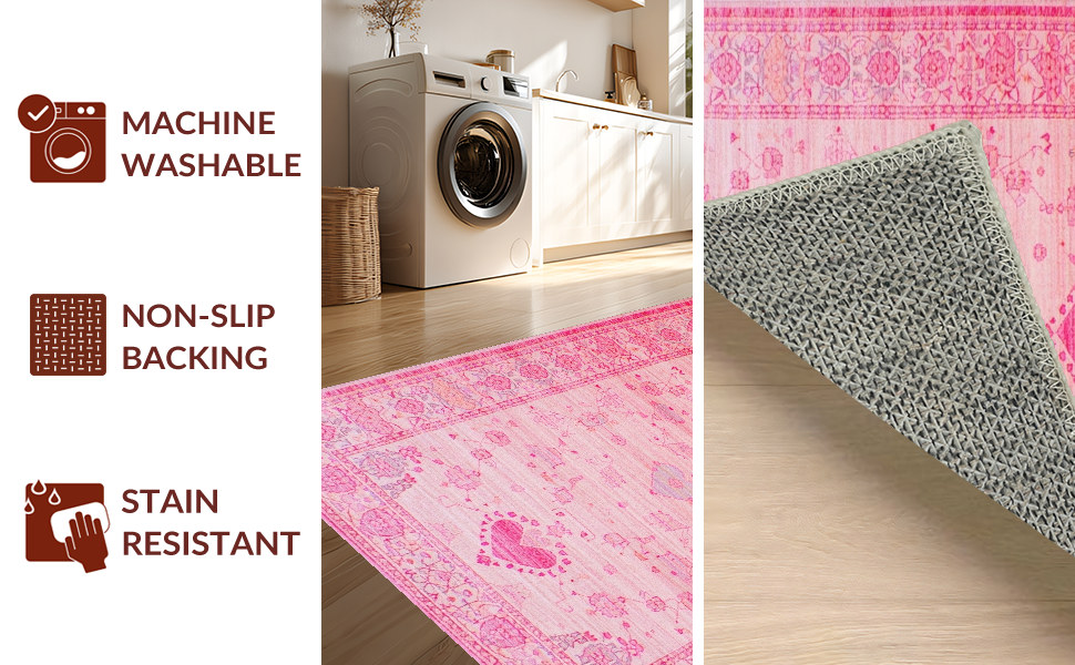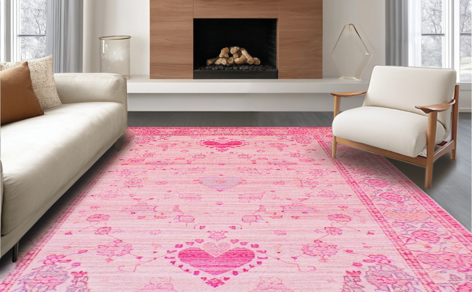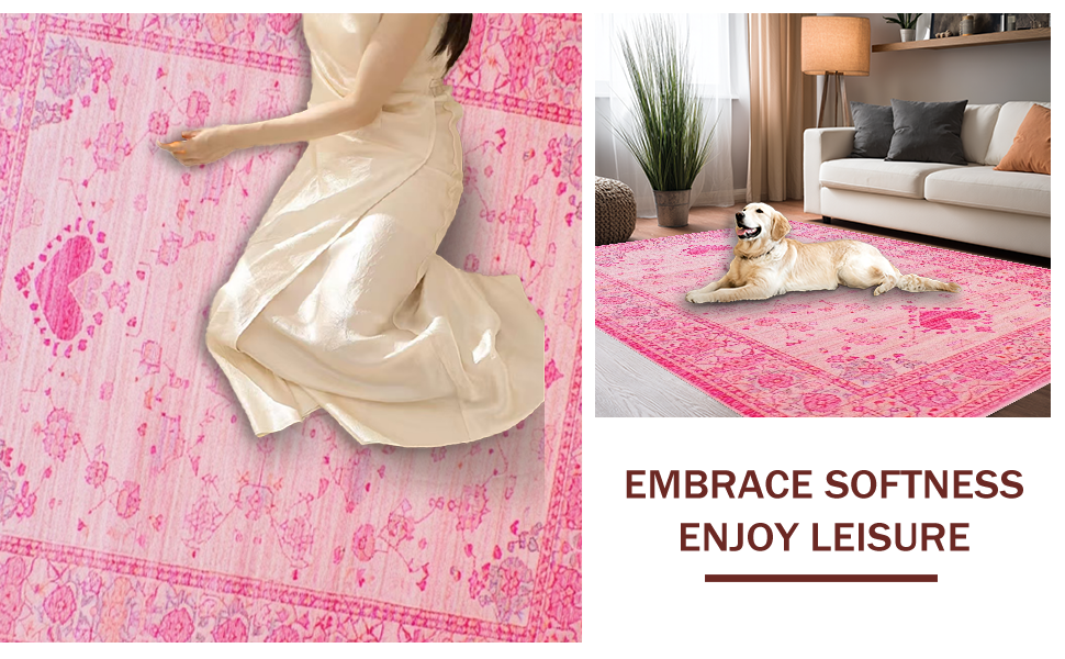 Ultra Soft Area Rug, Non Slip, Stain Resistant, Washable Area Rugs for Living Room, Bedroom, Elegant Fluffy Romantic Accent(Pink) Overview: