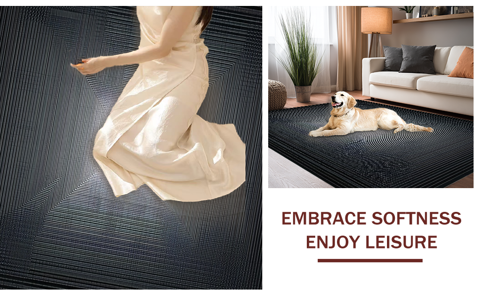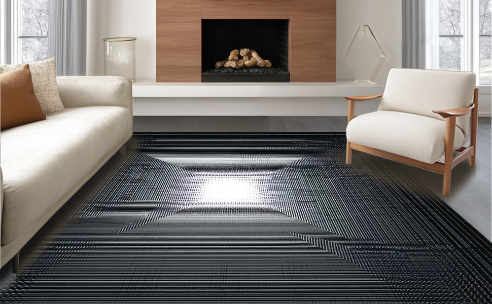 Ultra Soft Area Rug, Non Slip, Stain Resistant, Washable Area Rugs for Living Room, Bedroom, Elegant Fluffy Vortex Optical Art(Black) Overview: