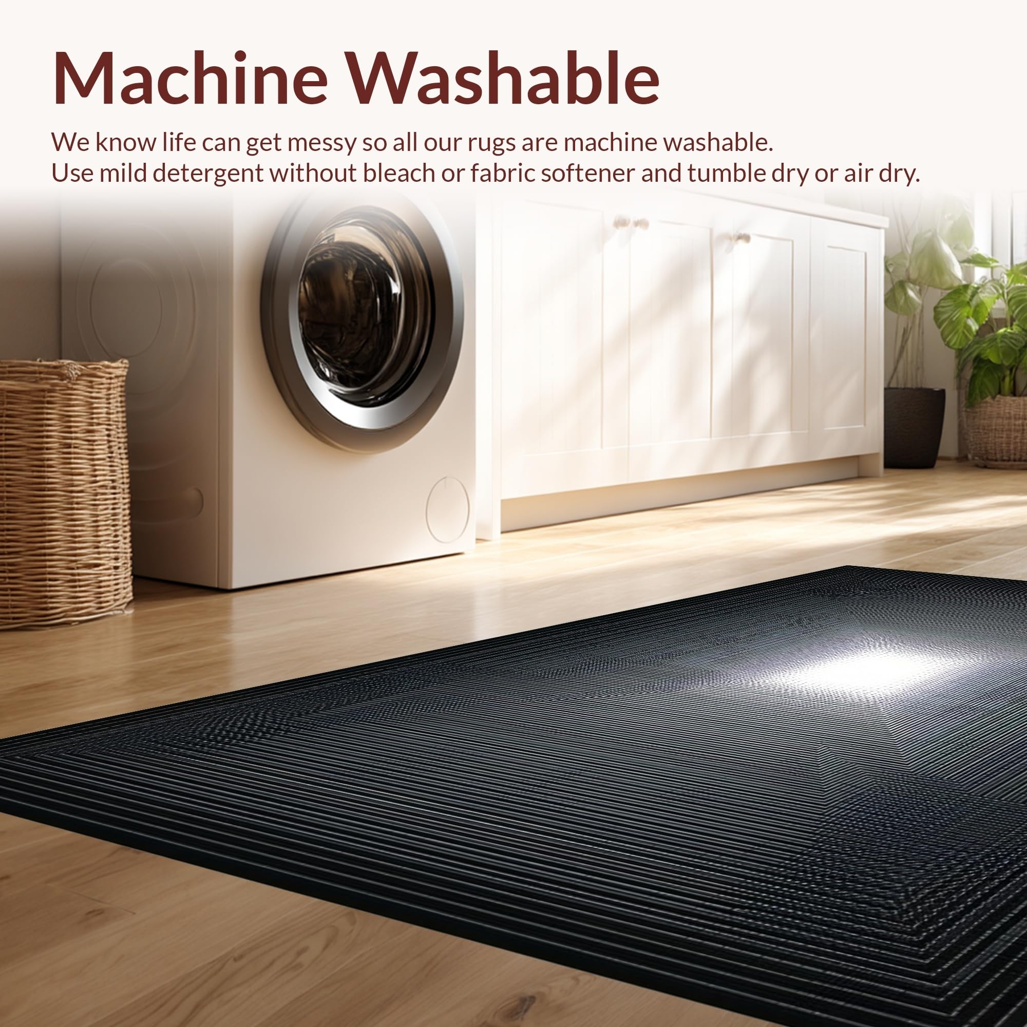 - Machine Washable: Our rugs can be easily thrown in the wash machine.