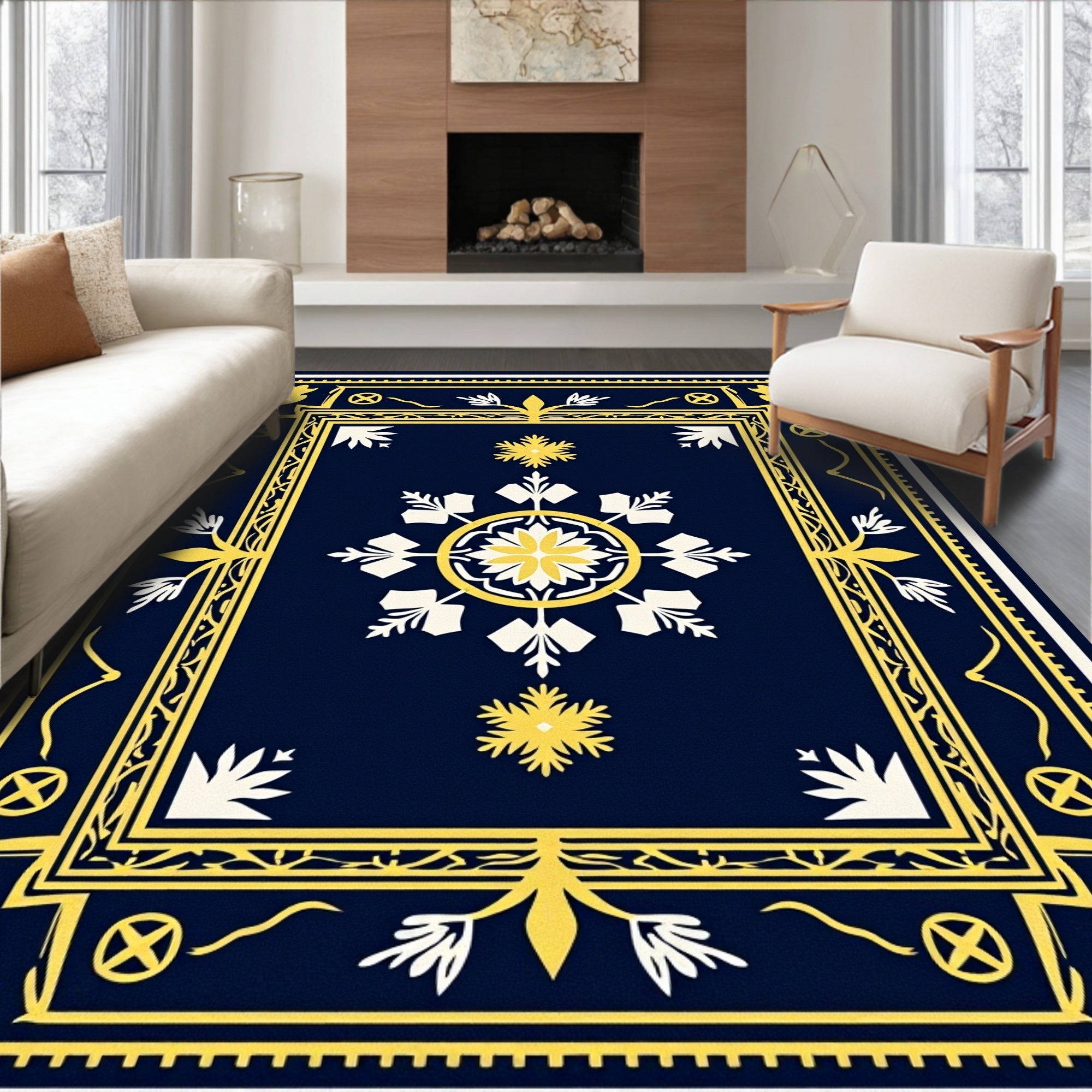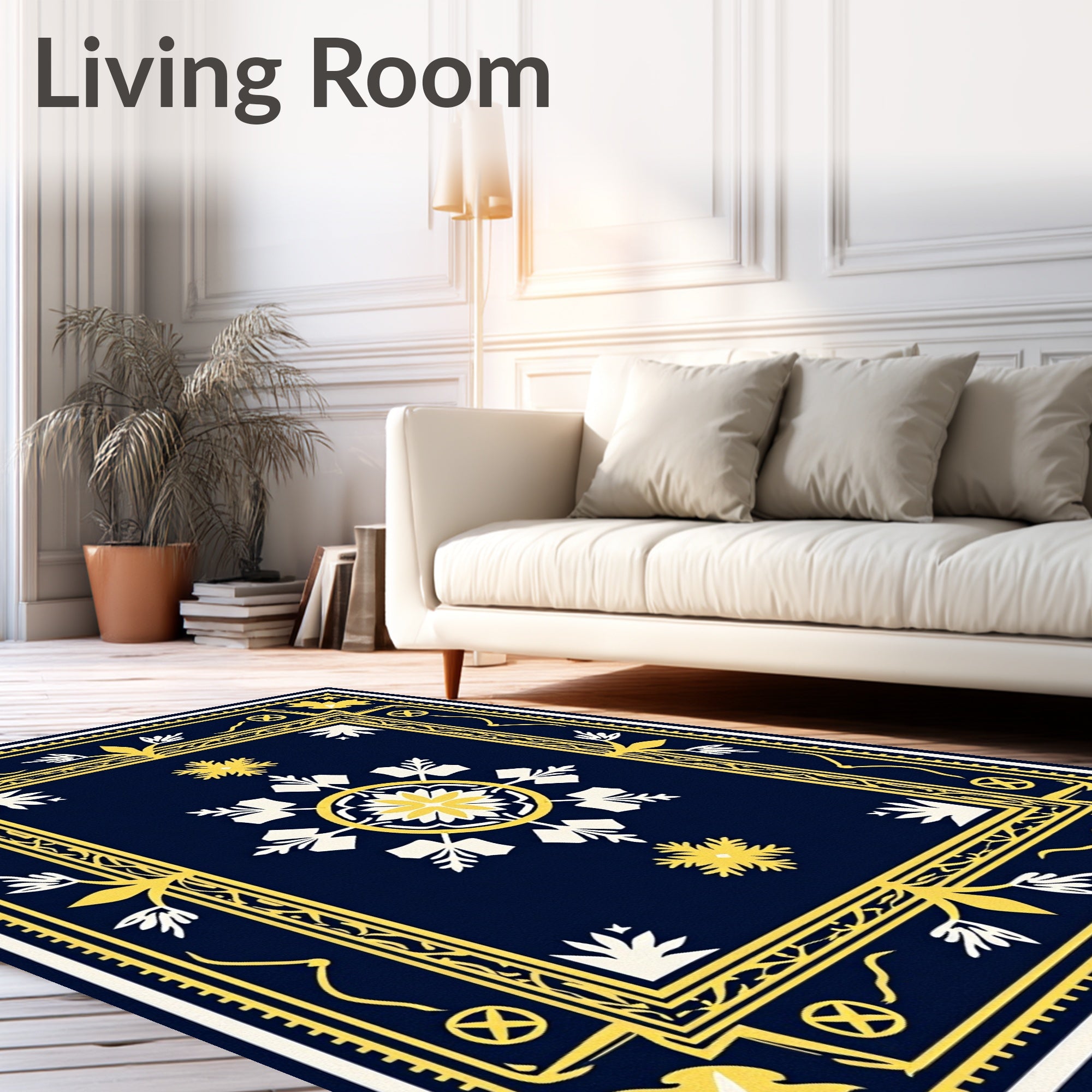 Ultra Soft Area Rug, Non Slip, Stain Resistant, Washable Area Rugs for Living Room, Bedroom, Elegant Frosted Snow Crystal with Radiant Starbursts(Gold) Overview: