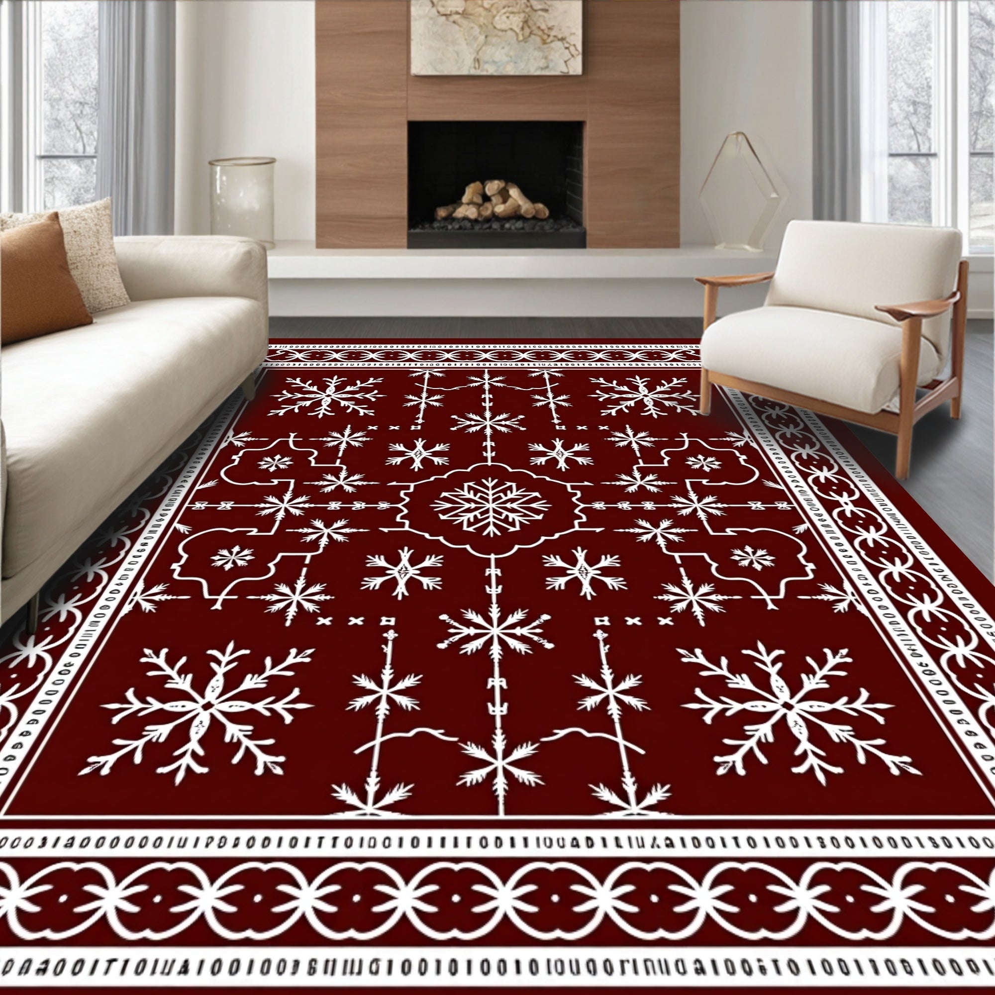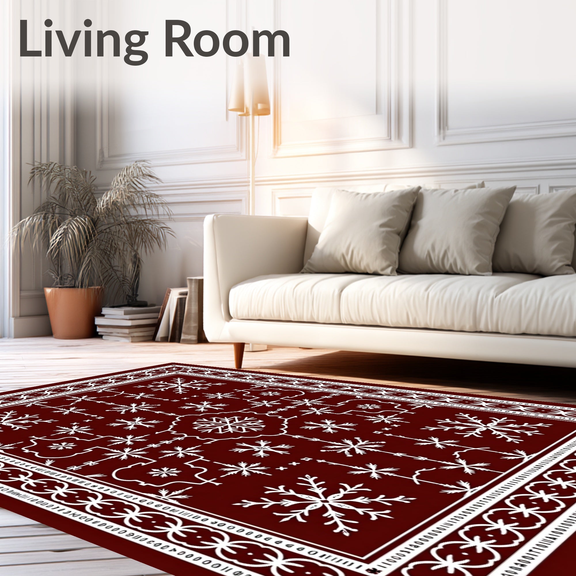 Ultra Soft Area Rug, Non Slip, Stain Resistant, Washable Area Rugs for Living Room, Bedroom, Elegant Frosty Wonderland Seasonal Accent(Red) Overview: