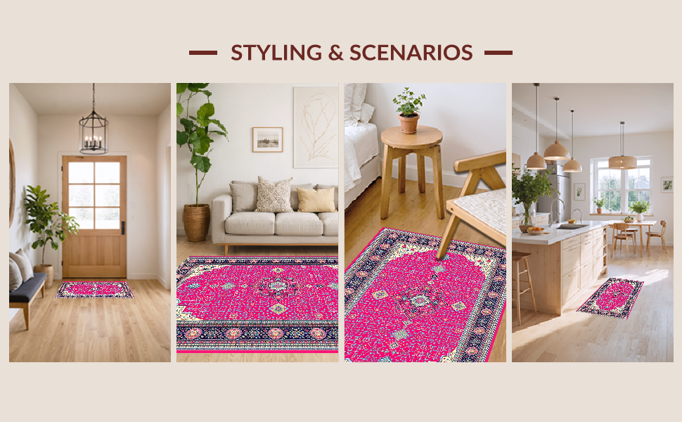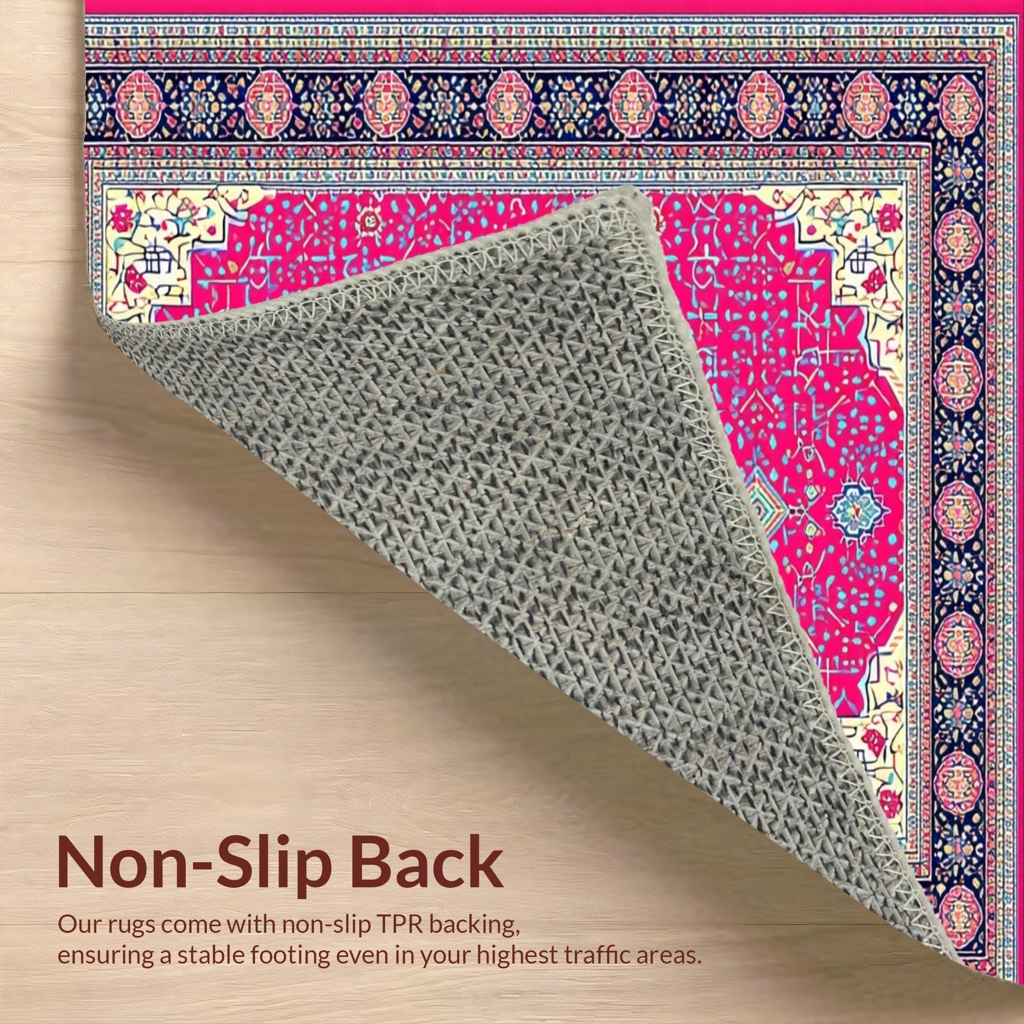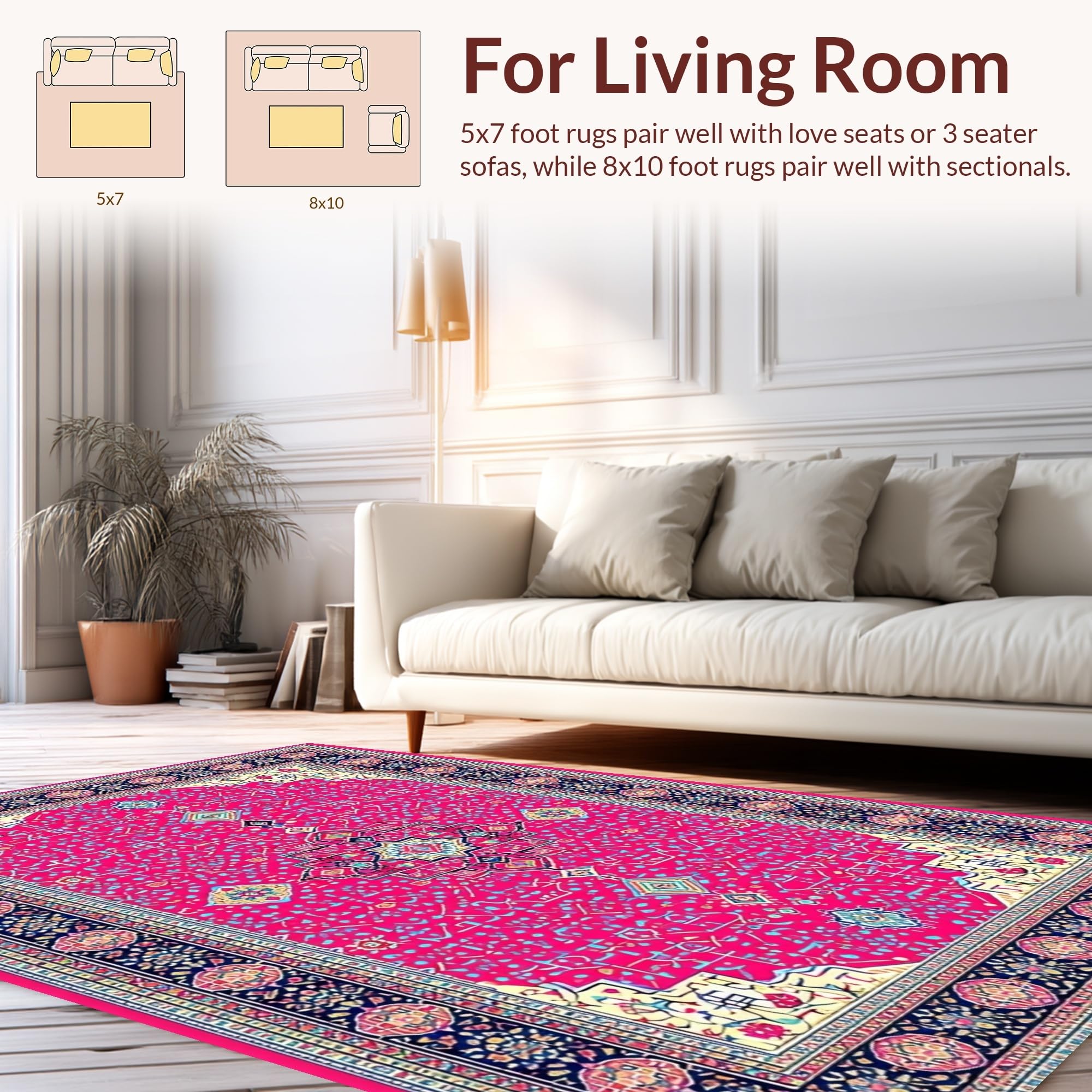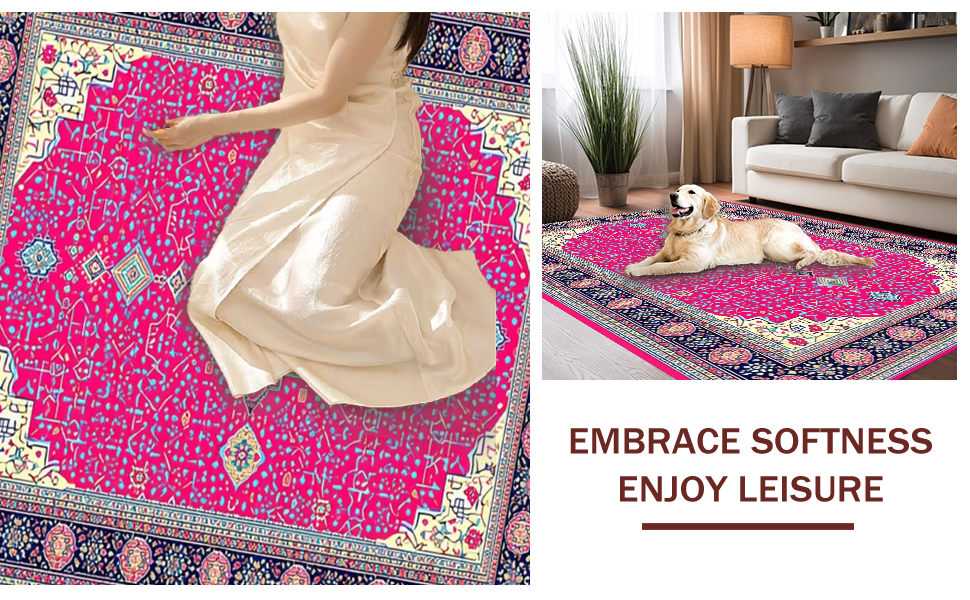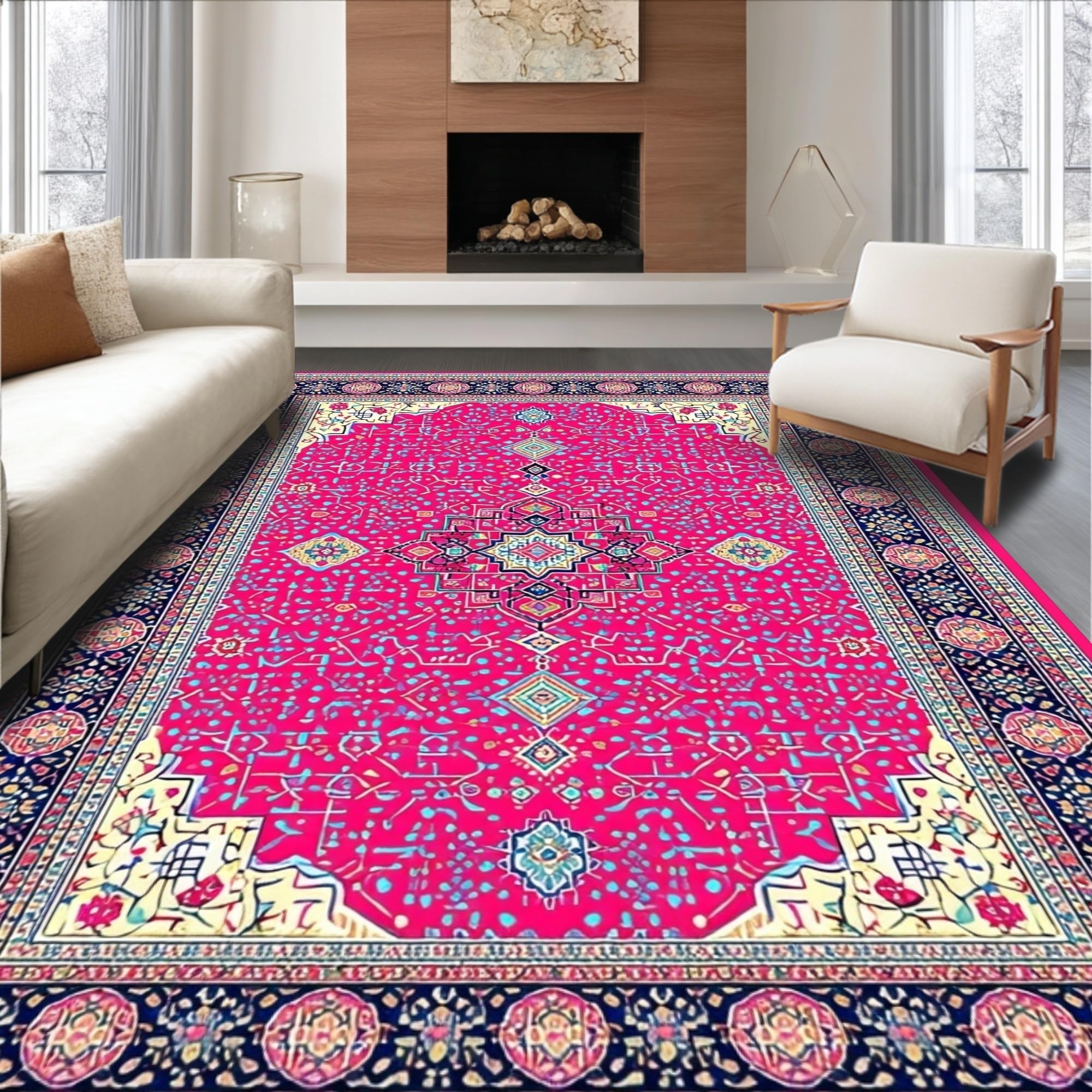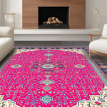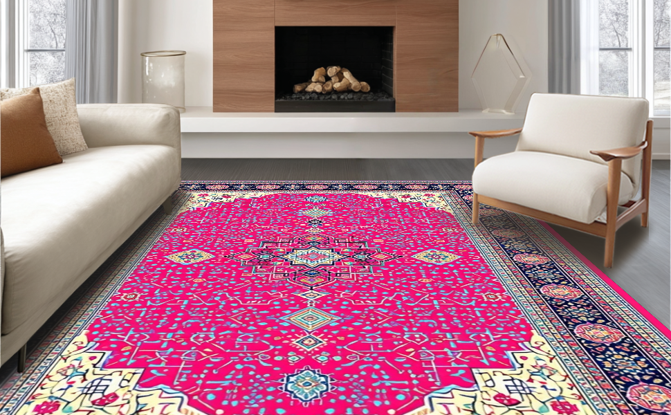 Ultra Soft Area Rug, Non Slip, Stain Resistant, Washable Area Rugs for Living Room, Bedroom, Elegant Fuchsia Tiled Patterned Delight(Red) Overview: