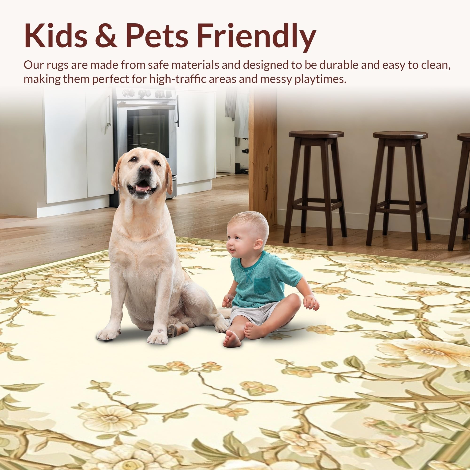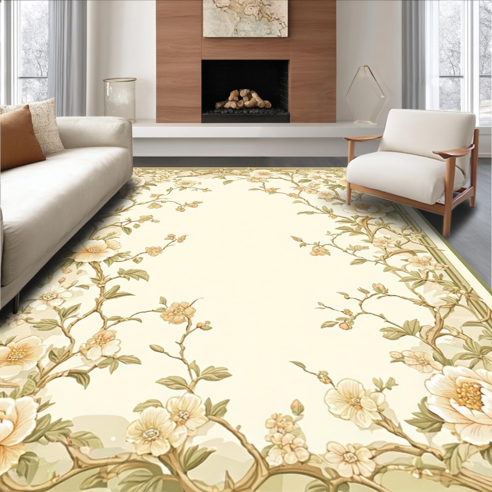 Ultra Soft Area Rug, Non Slip, Stain Resistant, Washable Area Rugs for Living Room, Bedroom, Elegant Garden Floral Area Indoor Entrance Mat Non Slip Hallway Runner(Beige) Overview: