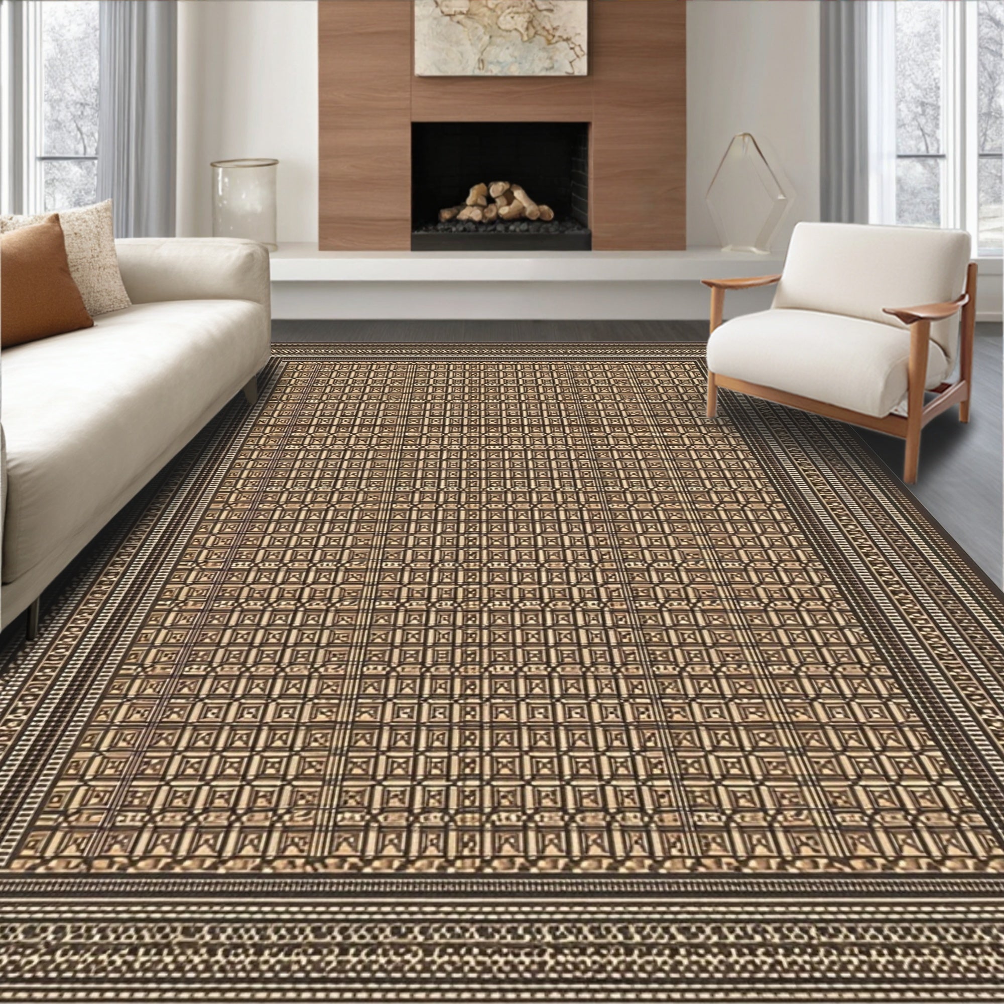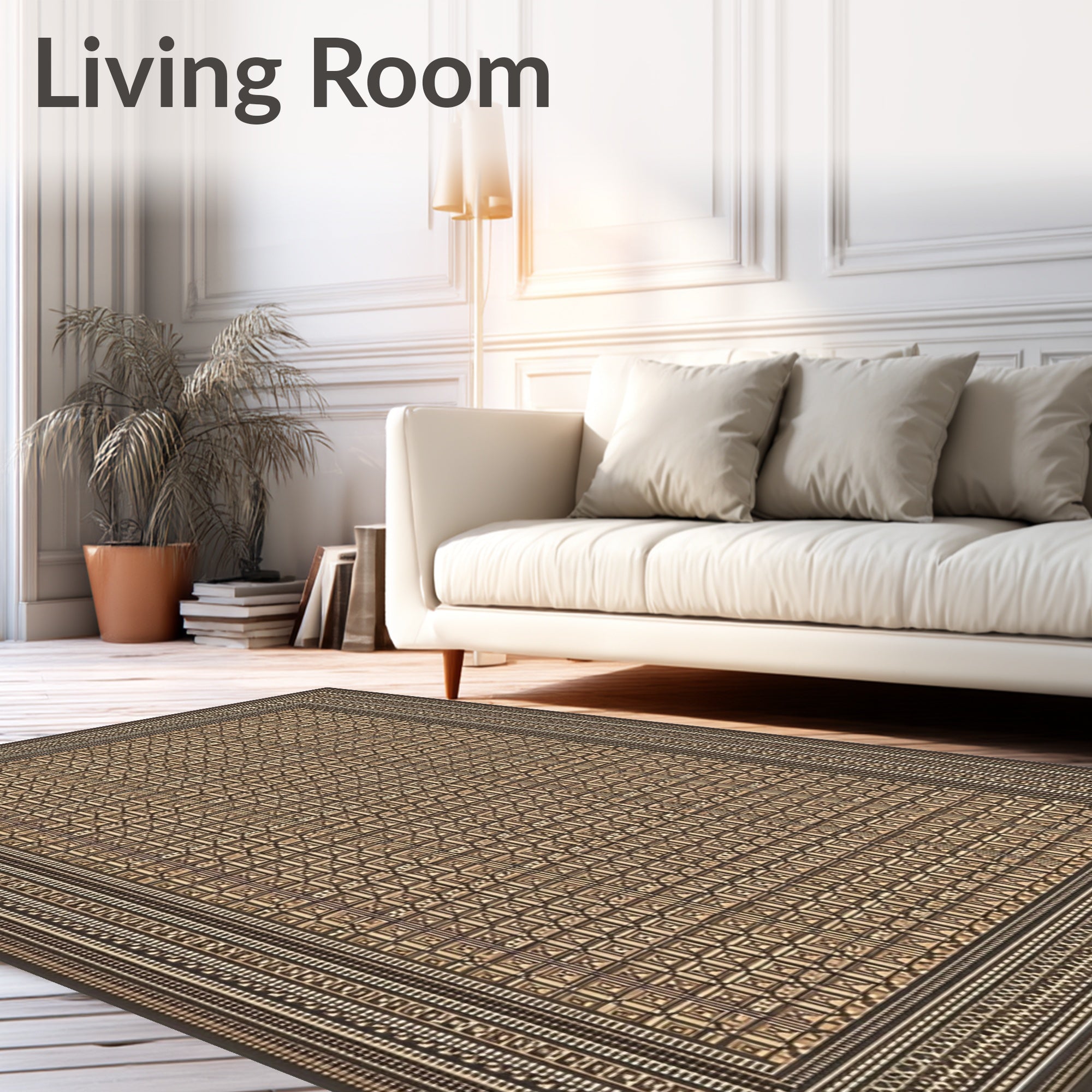 Ultra Soft Area Rug, Non Slip, Stain Resistant, Washable Area Rugs for Living Room, Bedroom, Elegant Geometric Area Featuring High Contrast Details(Beige) Overview: