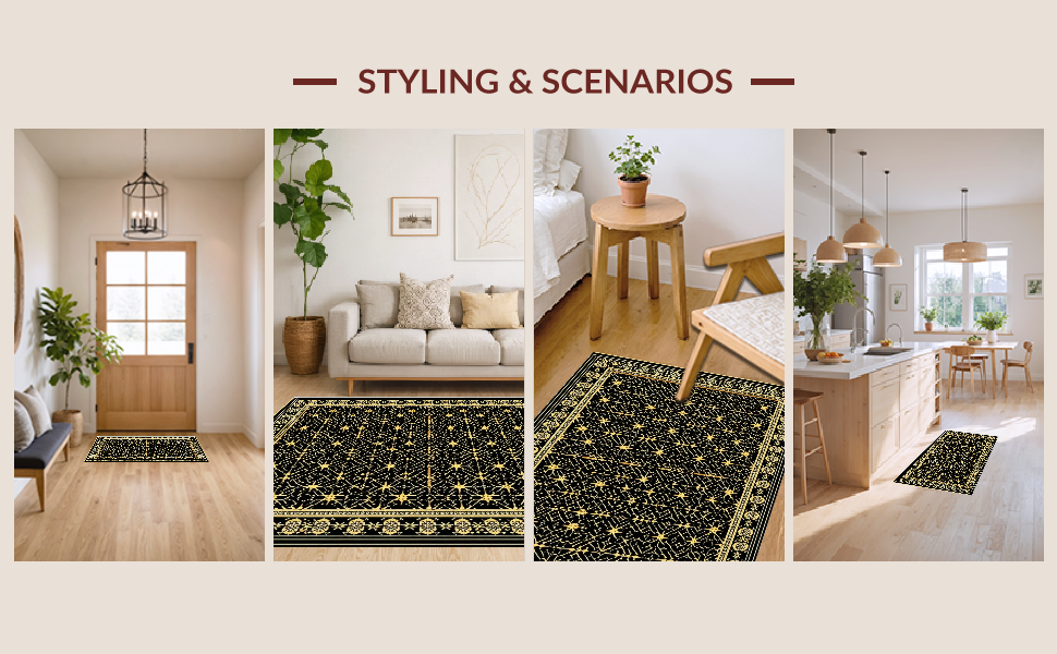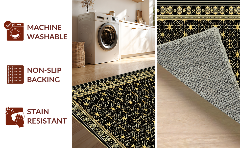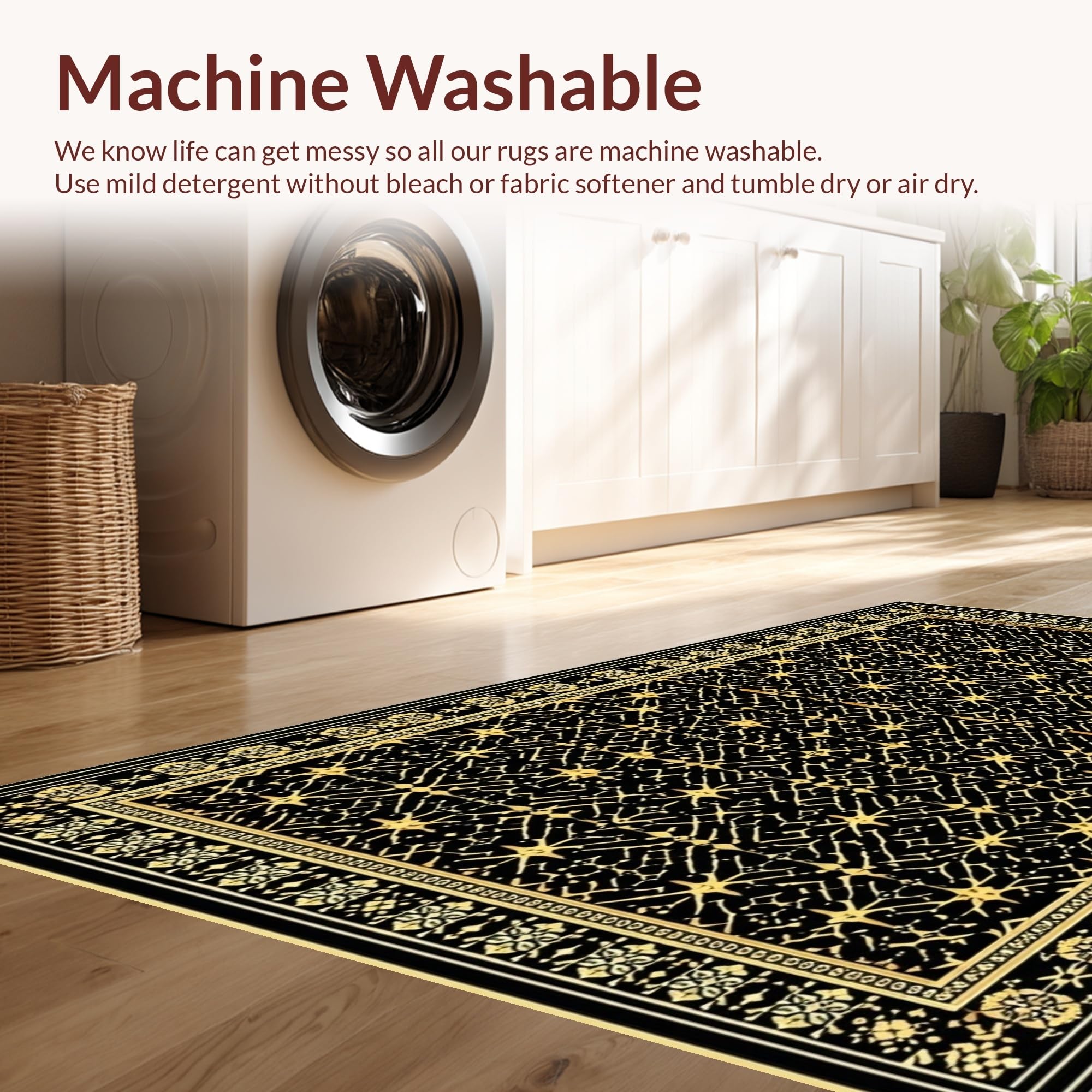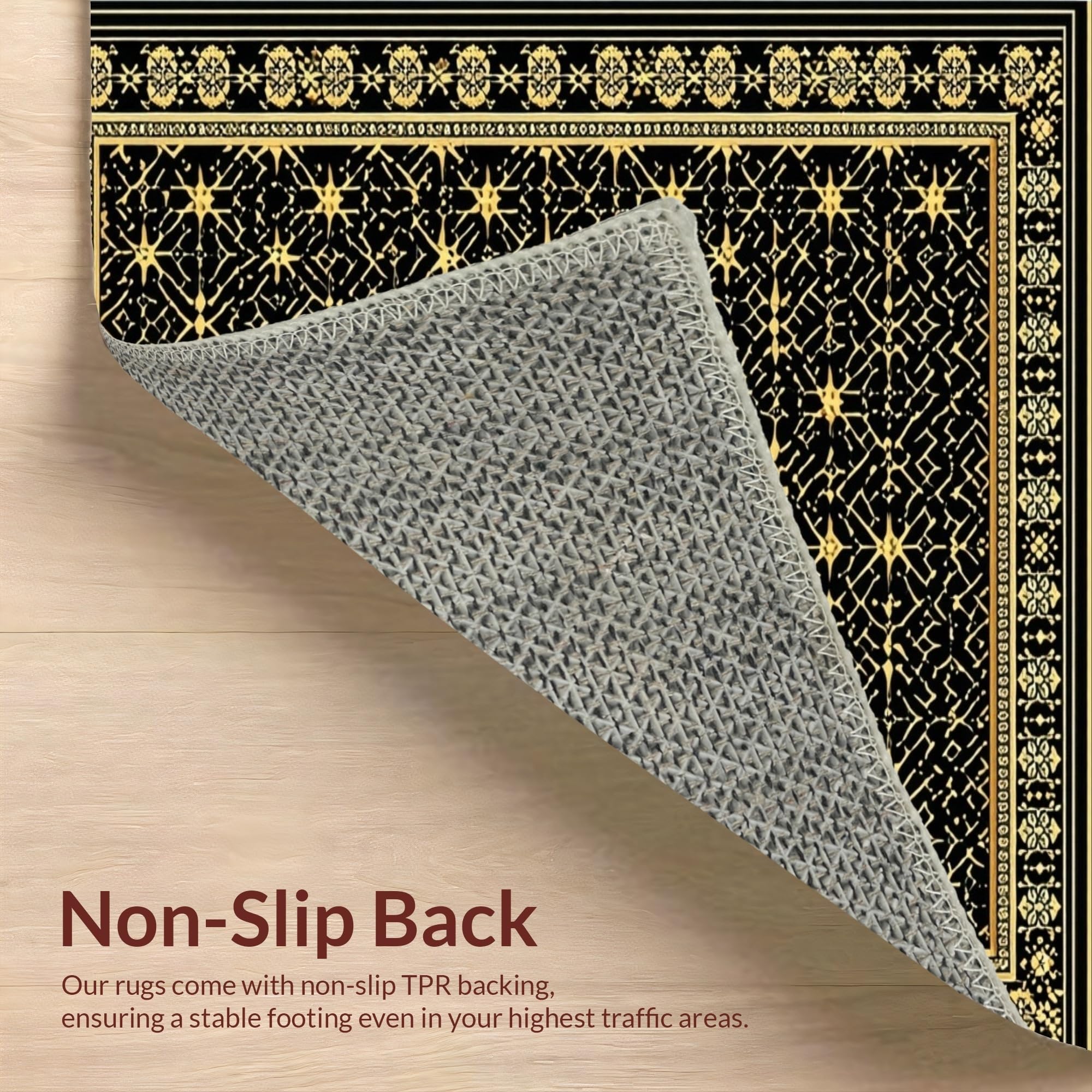 Ultra Soft Area Rug, Non Slip, Stain Resistant, Washable Area Rugs for Living Room, Bedroom, Elegant Geometric Black Gold Fusion(Black) Overview: