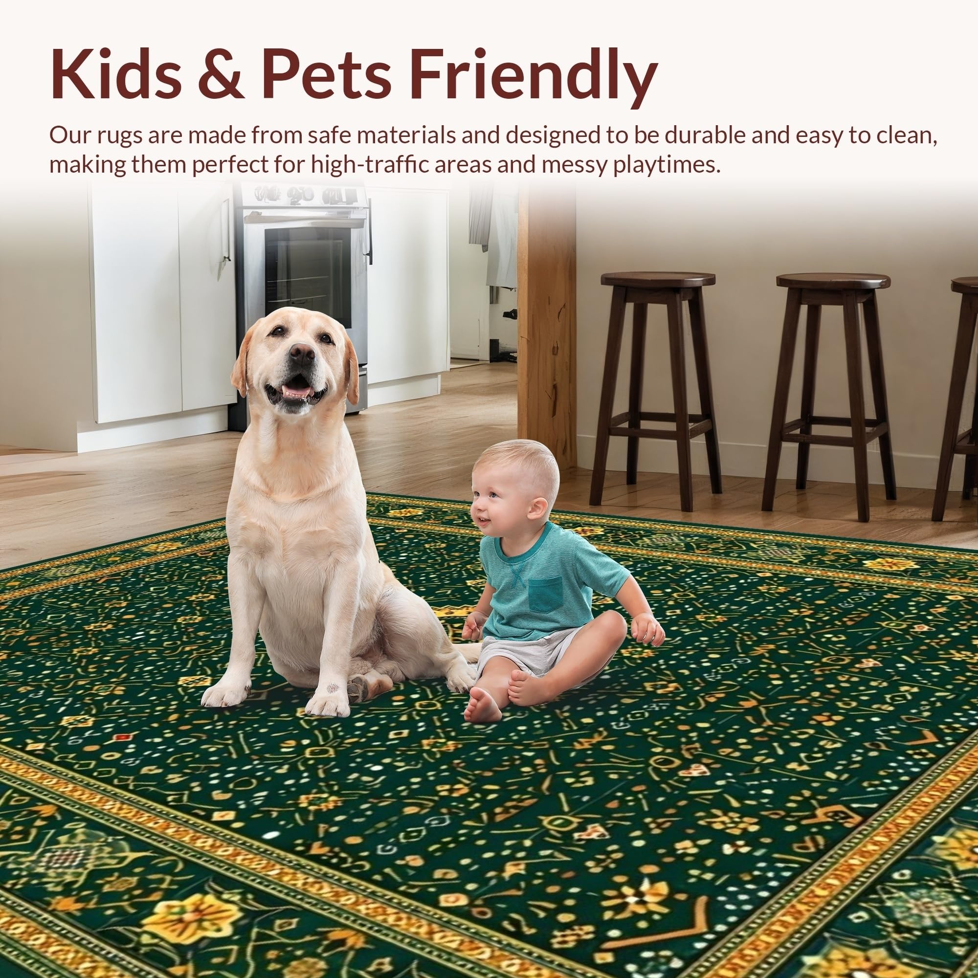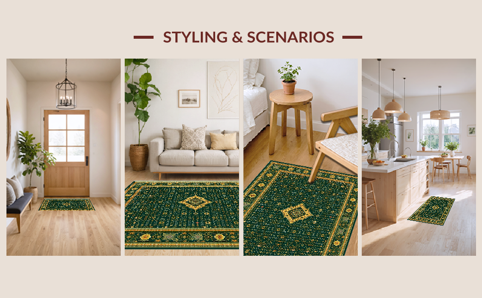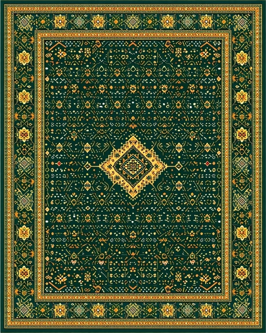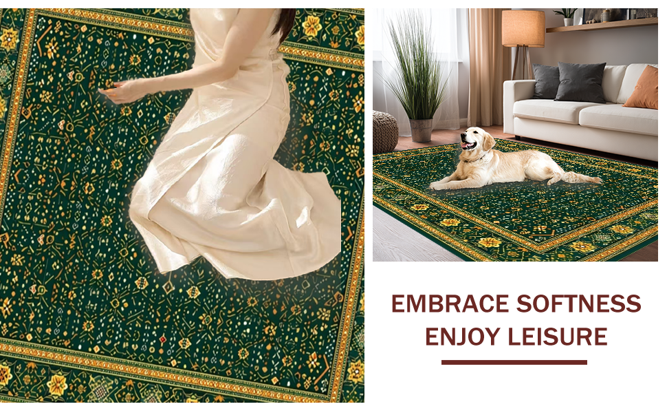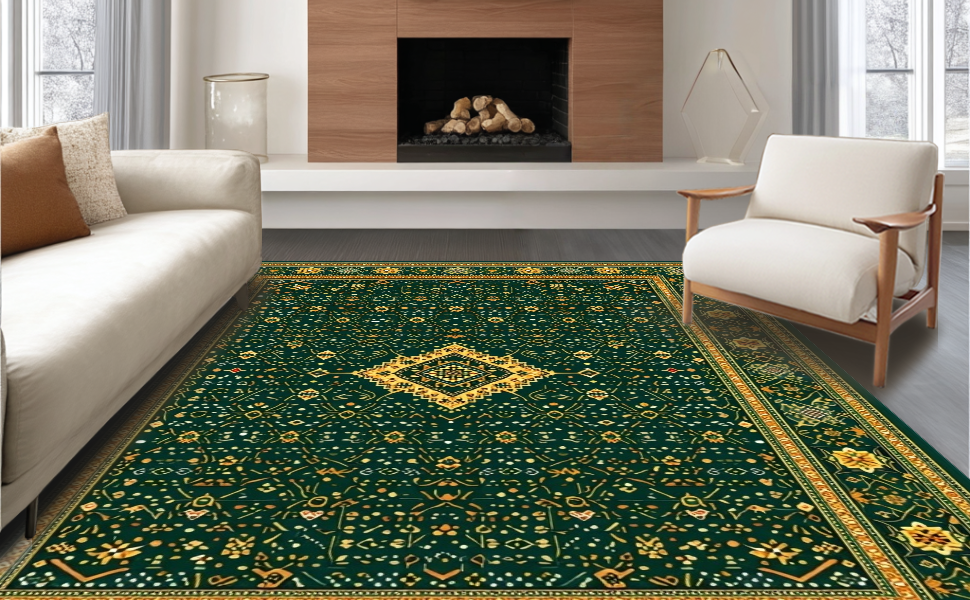 Ultra Soft Area Rug, Non Slip, Stain Resistant, Washable Area Rugs for Living Room, Bedroom, Elegant Geometric Green Elegance(Green) Overview: