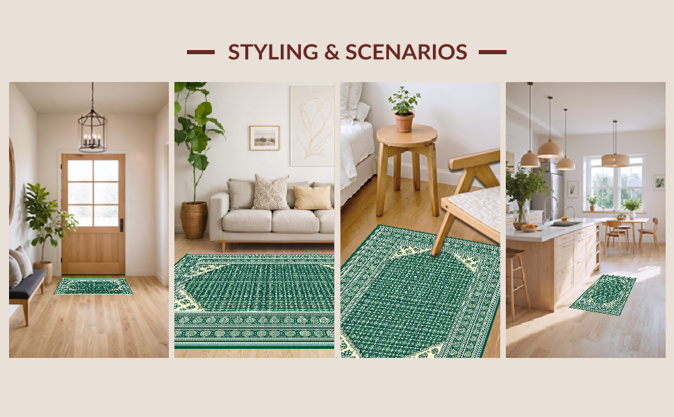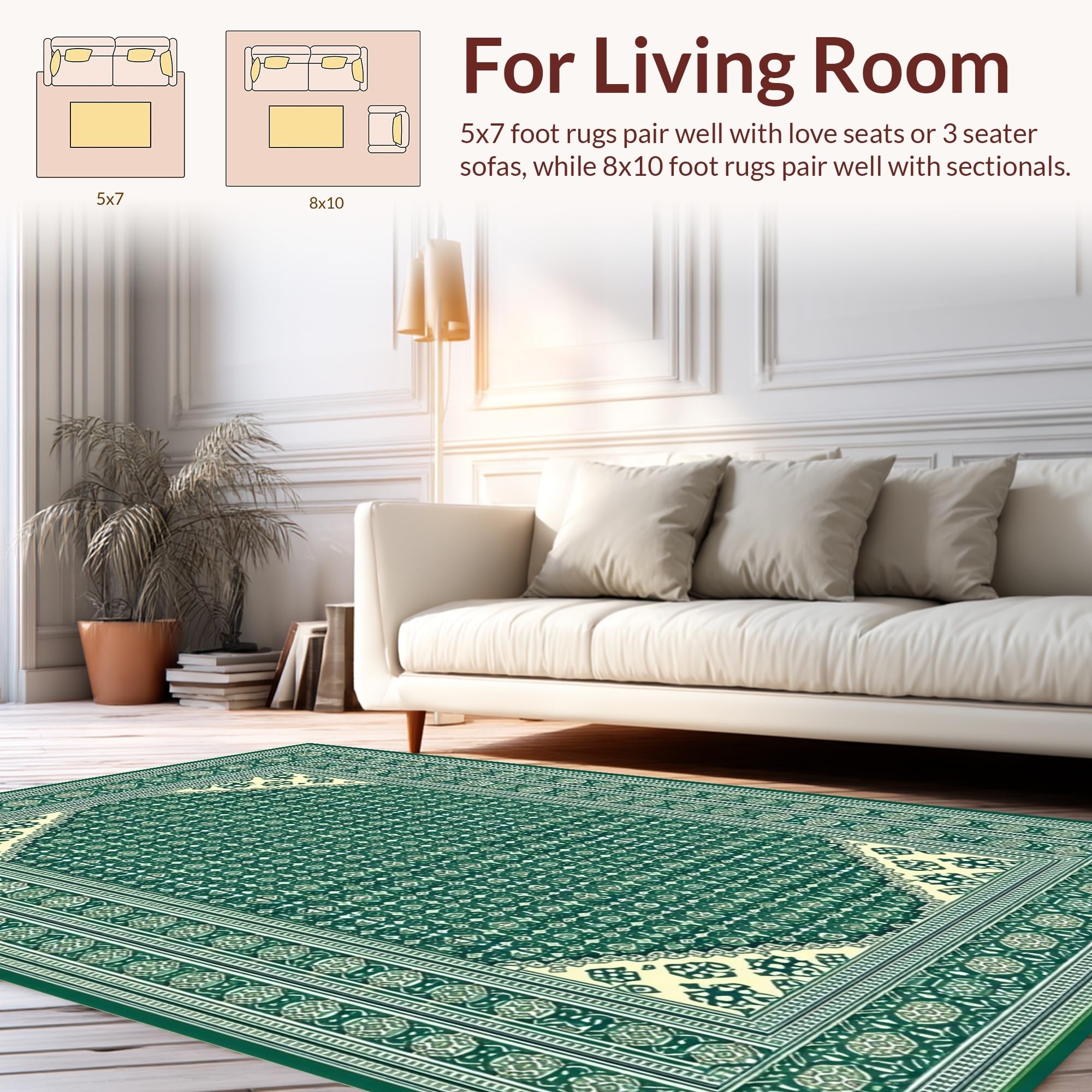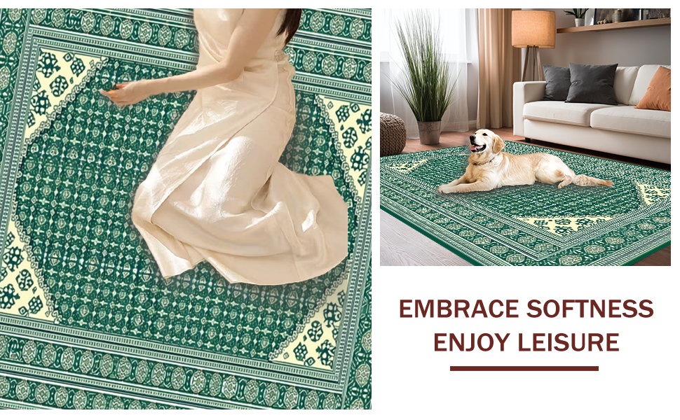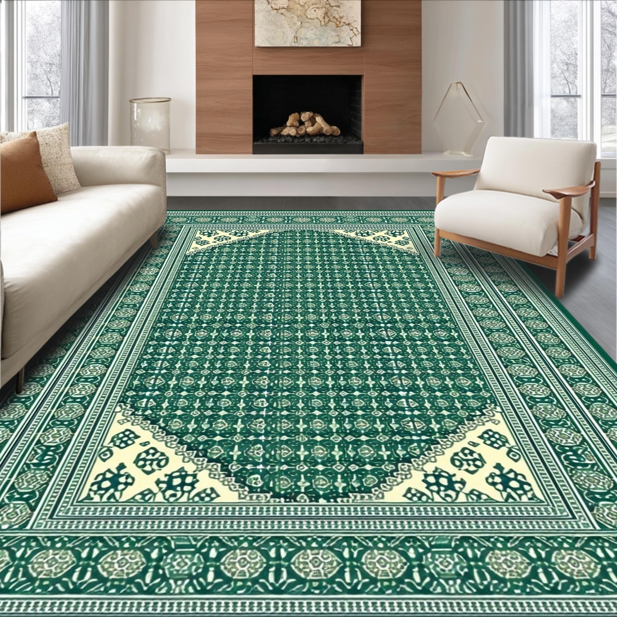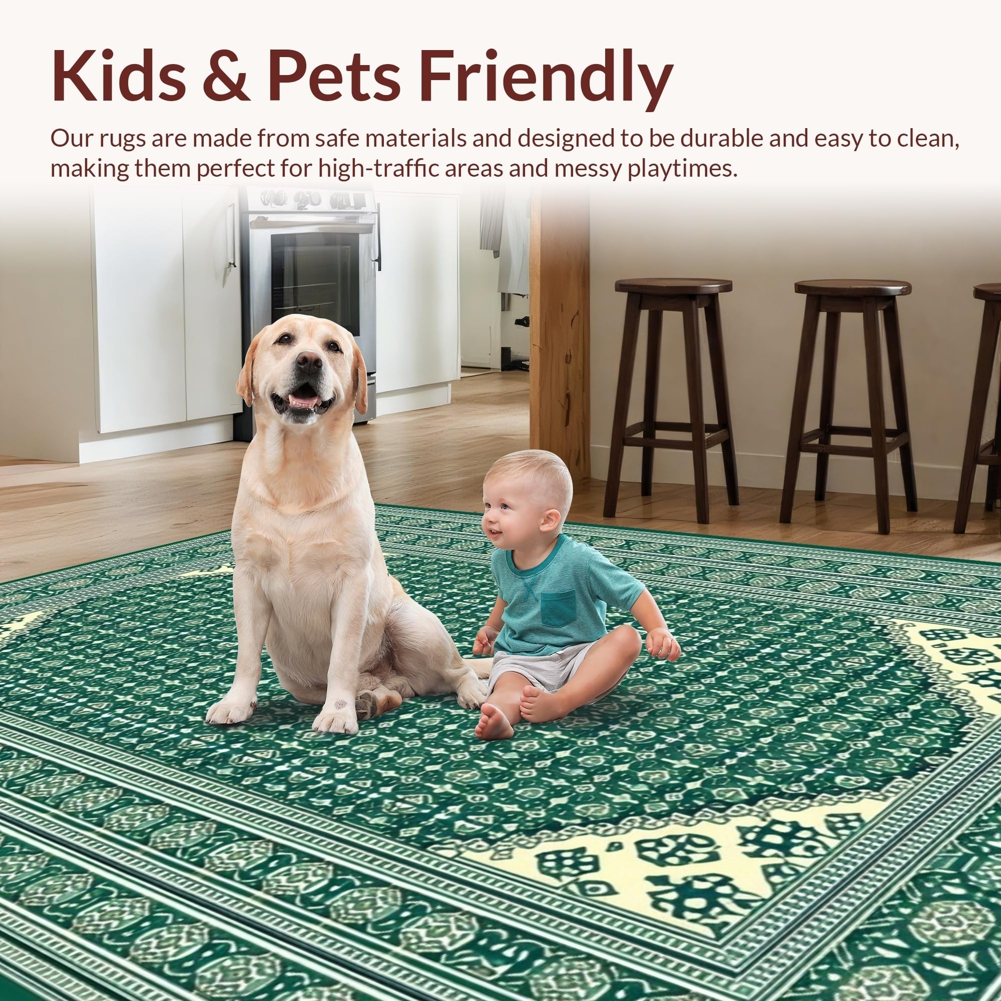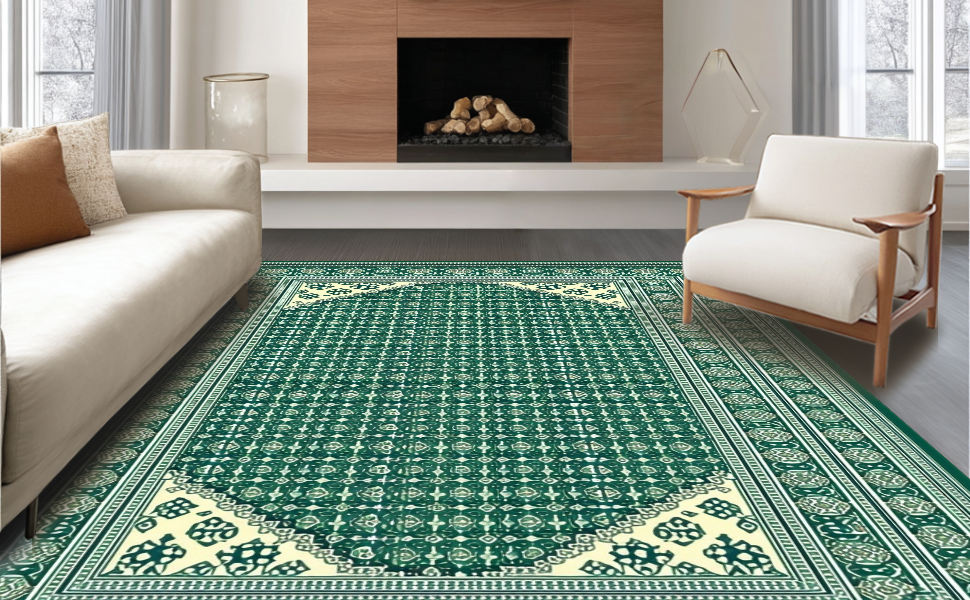 Ultra Soft Area Rug, Non Slip, Stain Resistant, Washable Area Rugs for Living Room, Bedroom, Elegant Geometric Green Tones(Green) Overview: