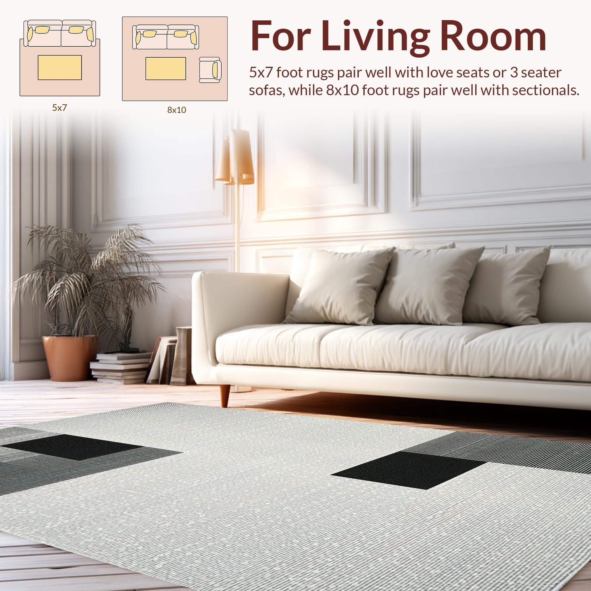 Ultra Soft Area Rug, Non Slip, Stain Resistant, Washable Area Rugs for Living Room, Bedroom, Elegant Geometric Light Grey Accent(Gray) Overview: