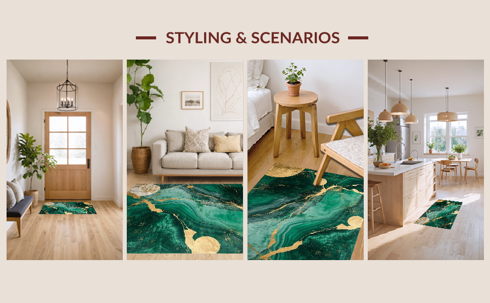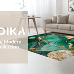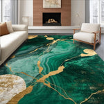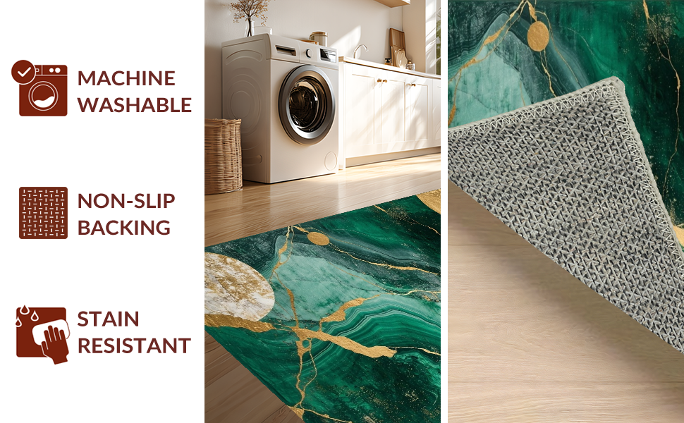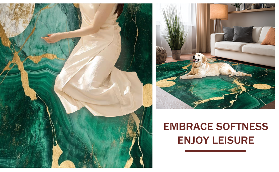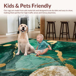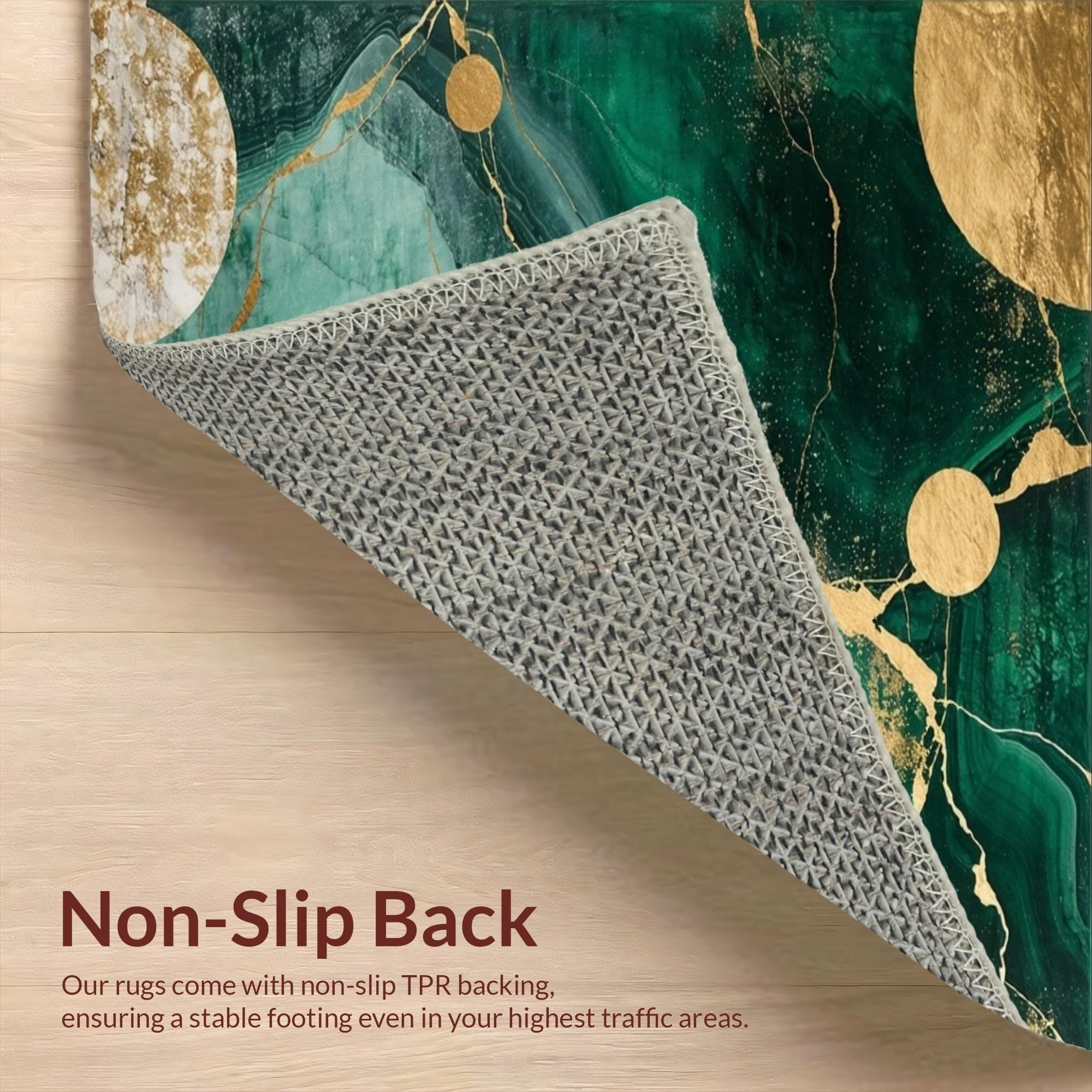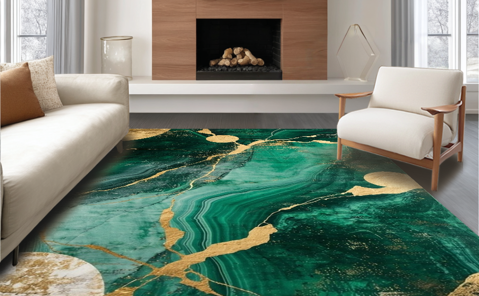 Ultra Soft Area Rug, Non Slip, Stain Resistant, Washable Area Rugs for Living Room, Bedroom, Elegant Gold Swirl Abstract Art(Green) Overview: