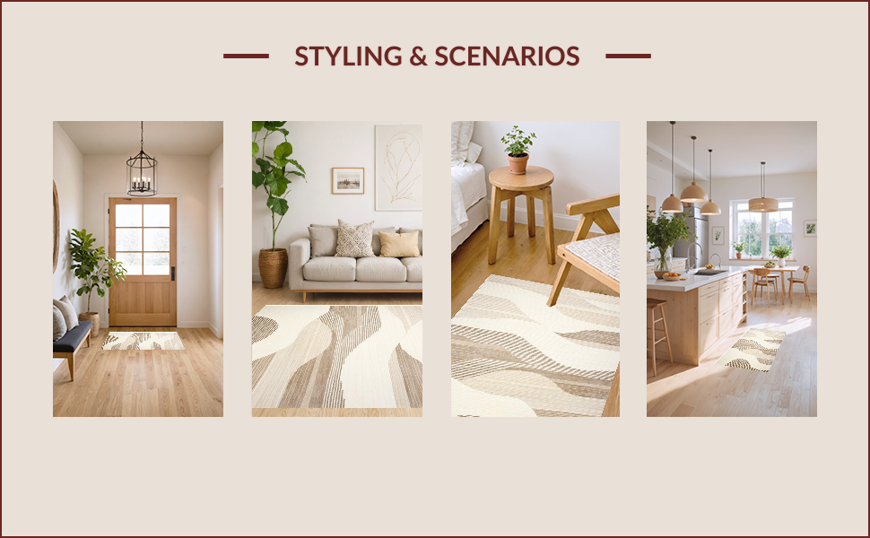 Ultra Soft Area Rug, Non Slip, Stain Resistant, Washable Area Rugs for Living Room, Bedroom, Elegant Gradient Minimalist Style(Beige) Overview: