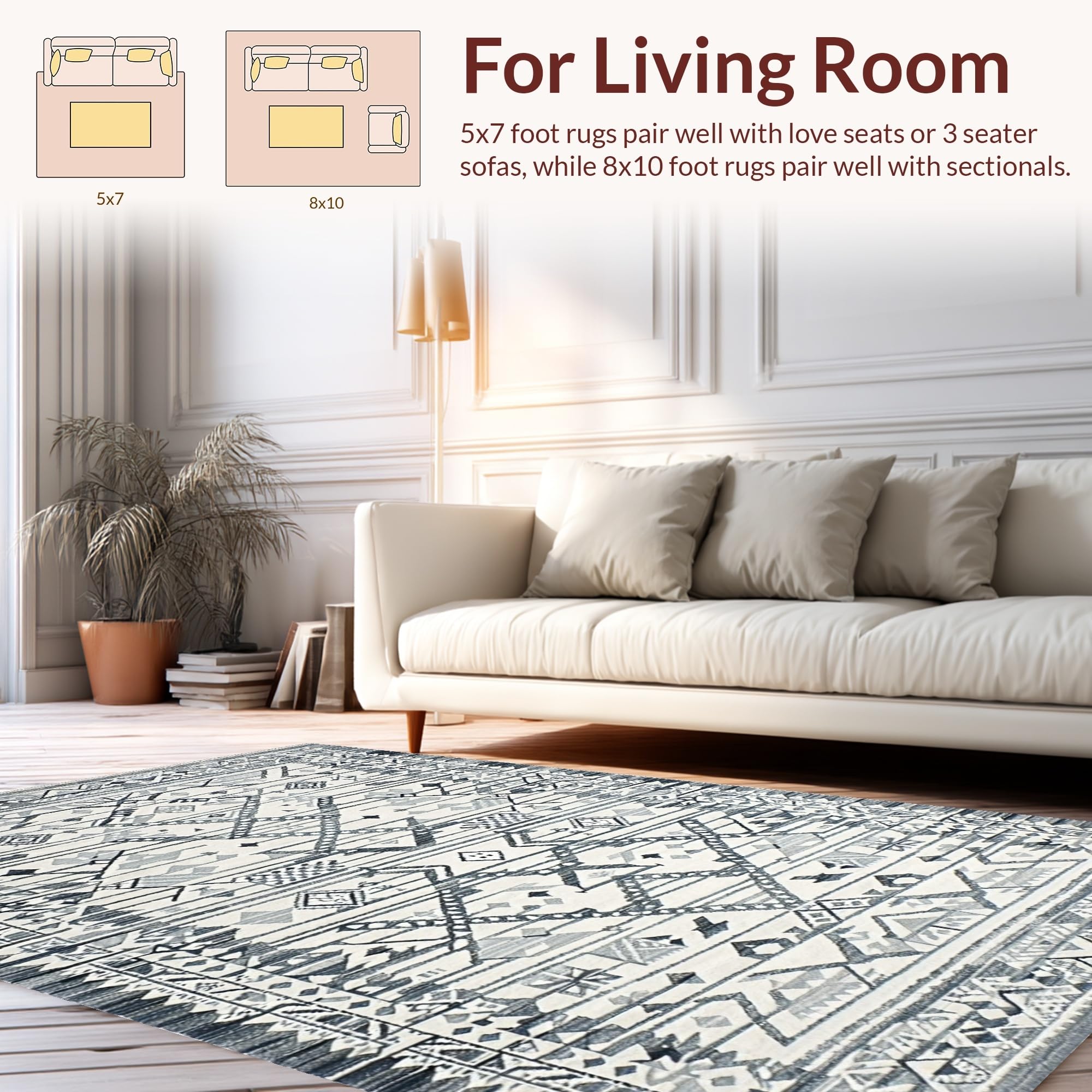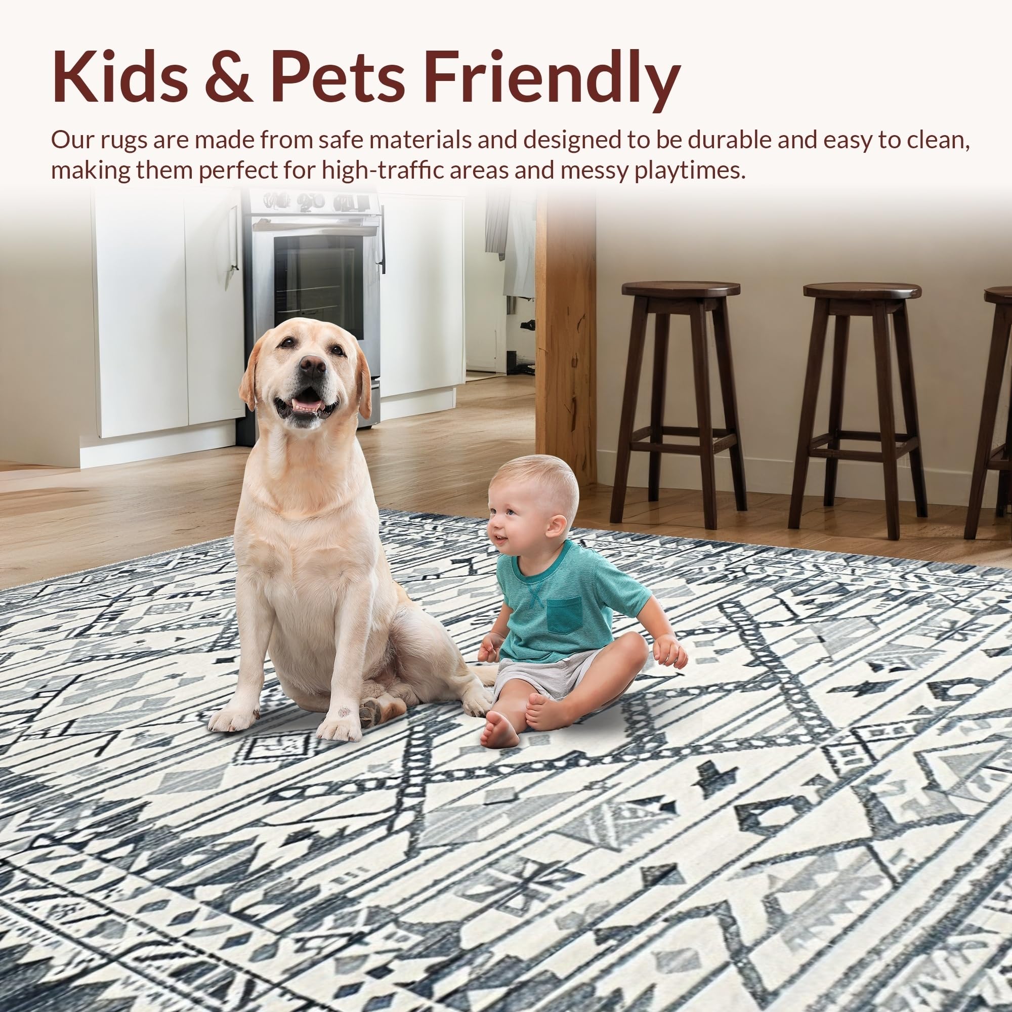 Ultra Soft Area Rug, Non Slip, Stain Resistant, Washable Area Rugs for Living Room, Bedroom, Elegant Gray Textured Tiling(Gray) Overview: