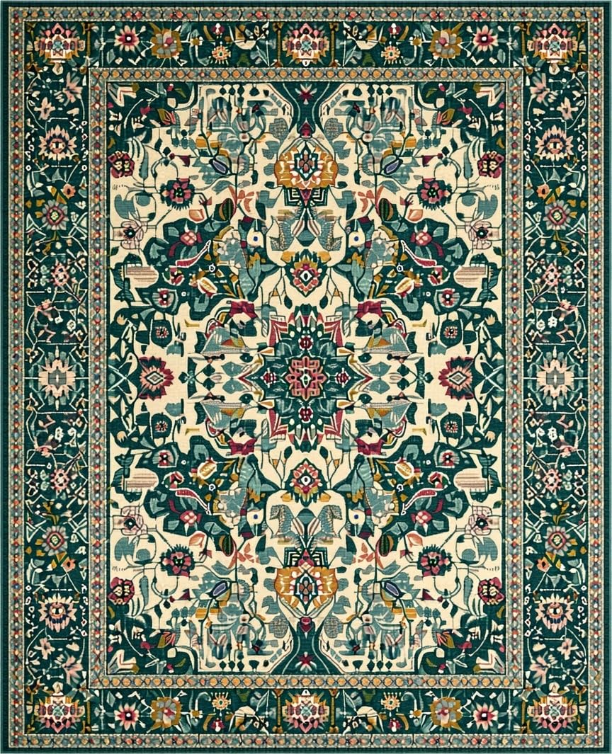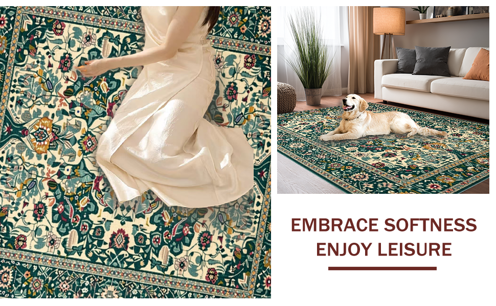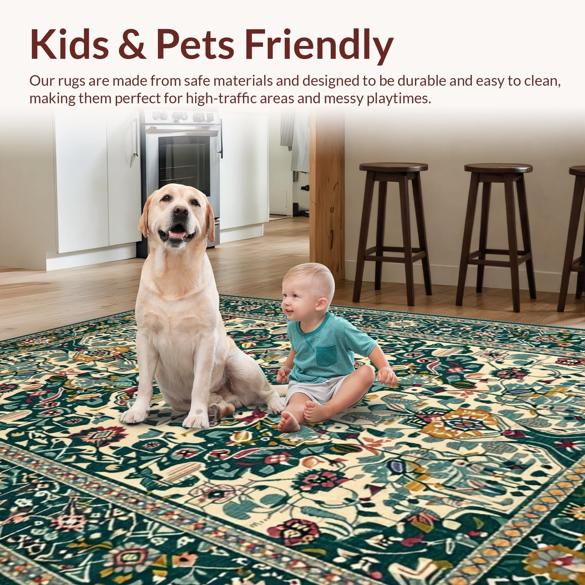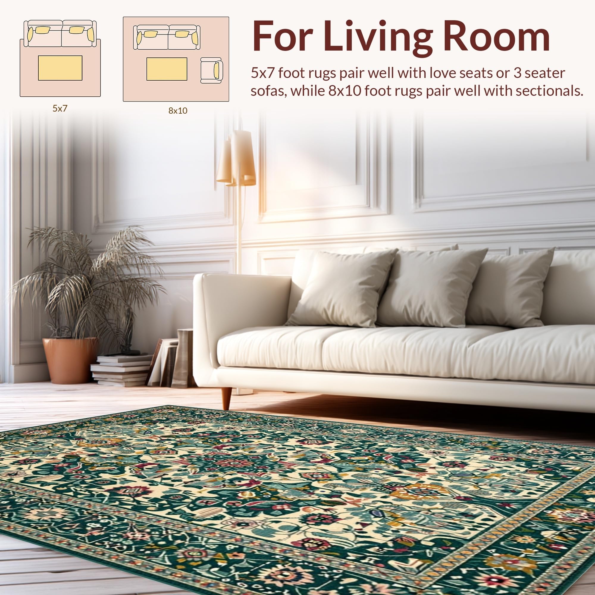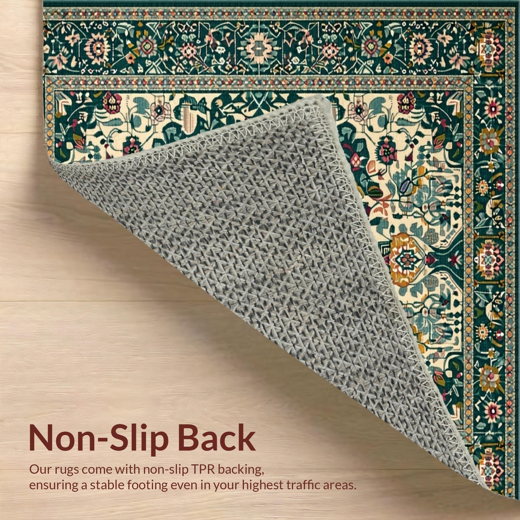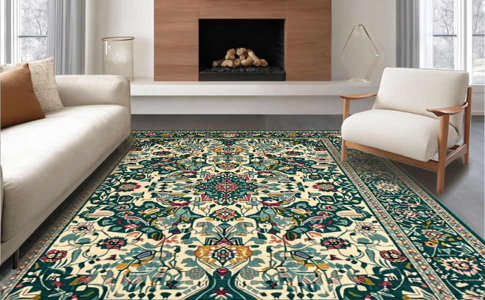 Ultra Soft Area Rug, Non Slip, Stain Resistant, Washable Area Rugs for Living Room, Bedroom, Elegant Green Abstract Fusion(Ivory) Overview: