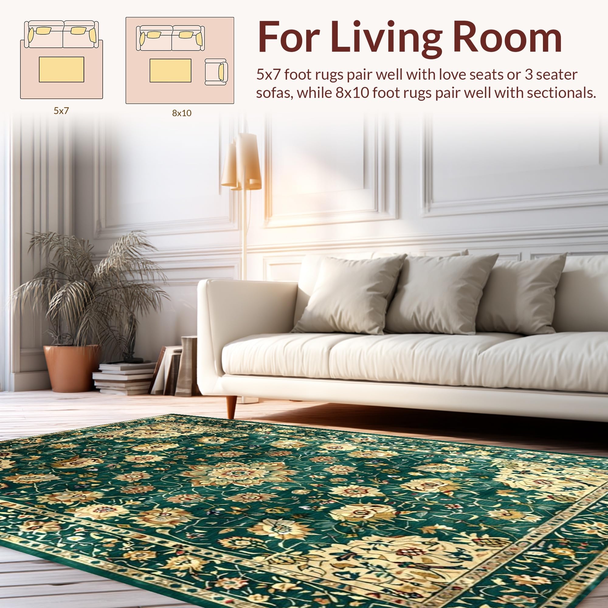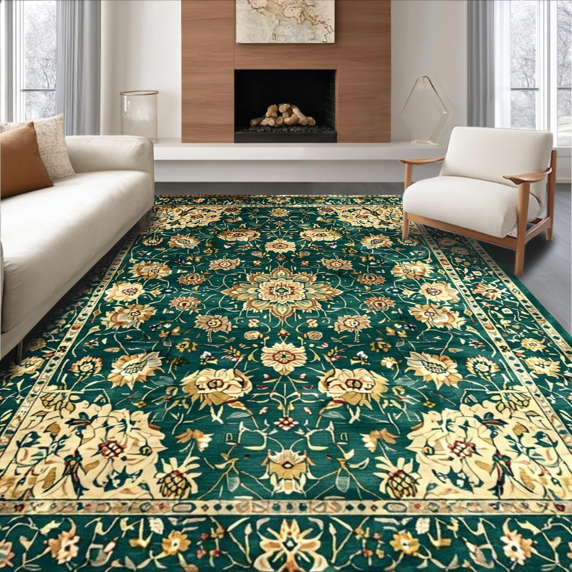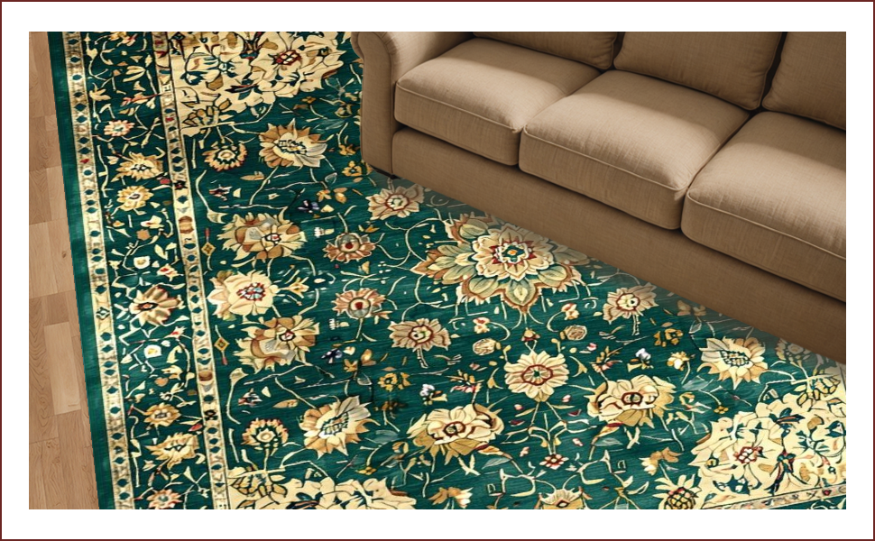 Ultra Soft Area Rug, Non Slip, Stain Resistant, Washable Area Rugs for Living Room, Bedroom, Elegant Green Oriental Motif(Blue) Overview: