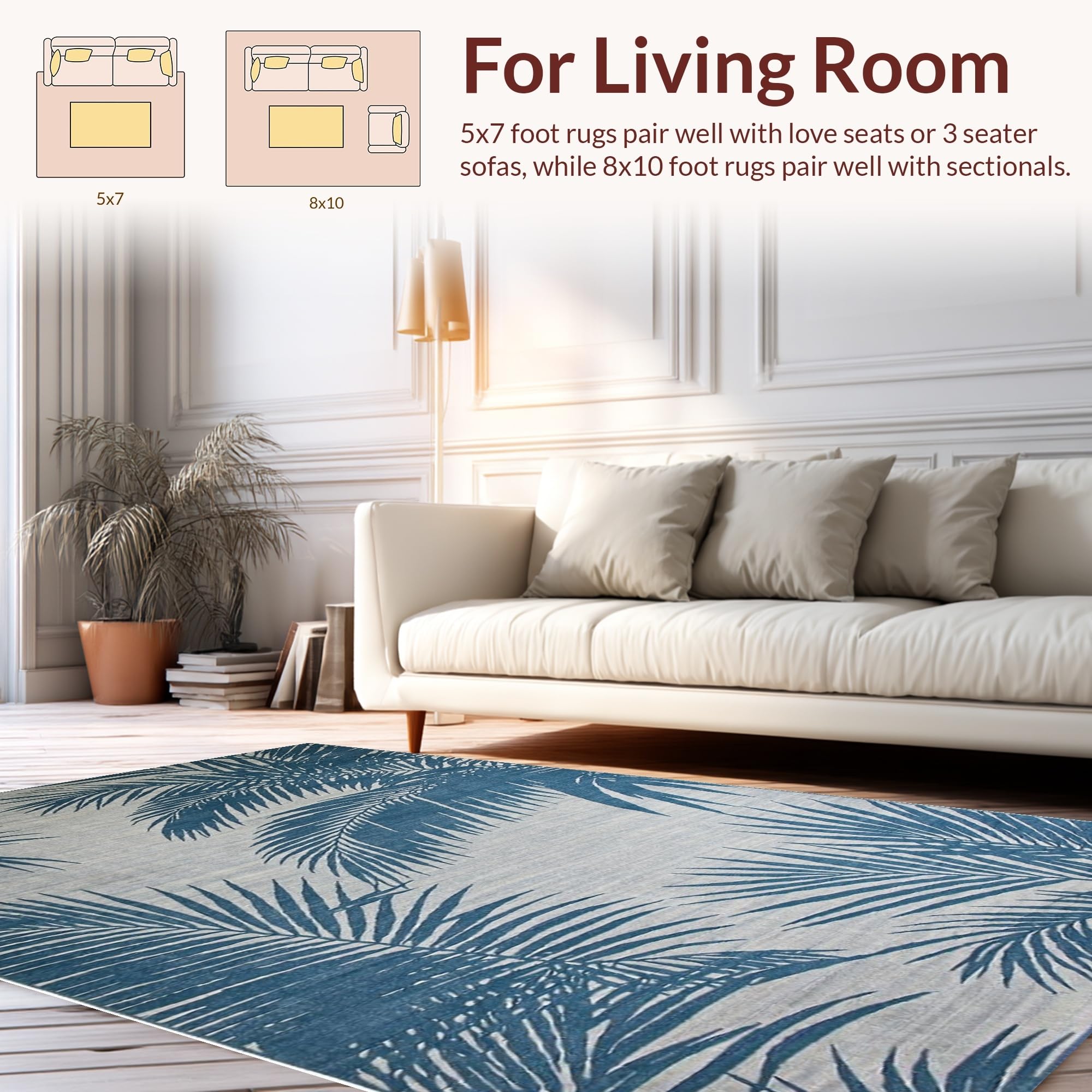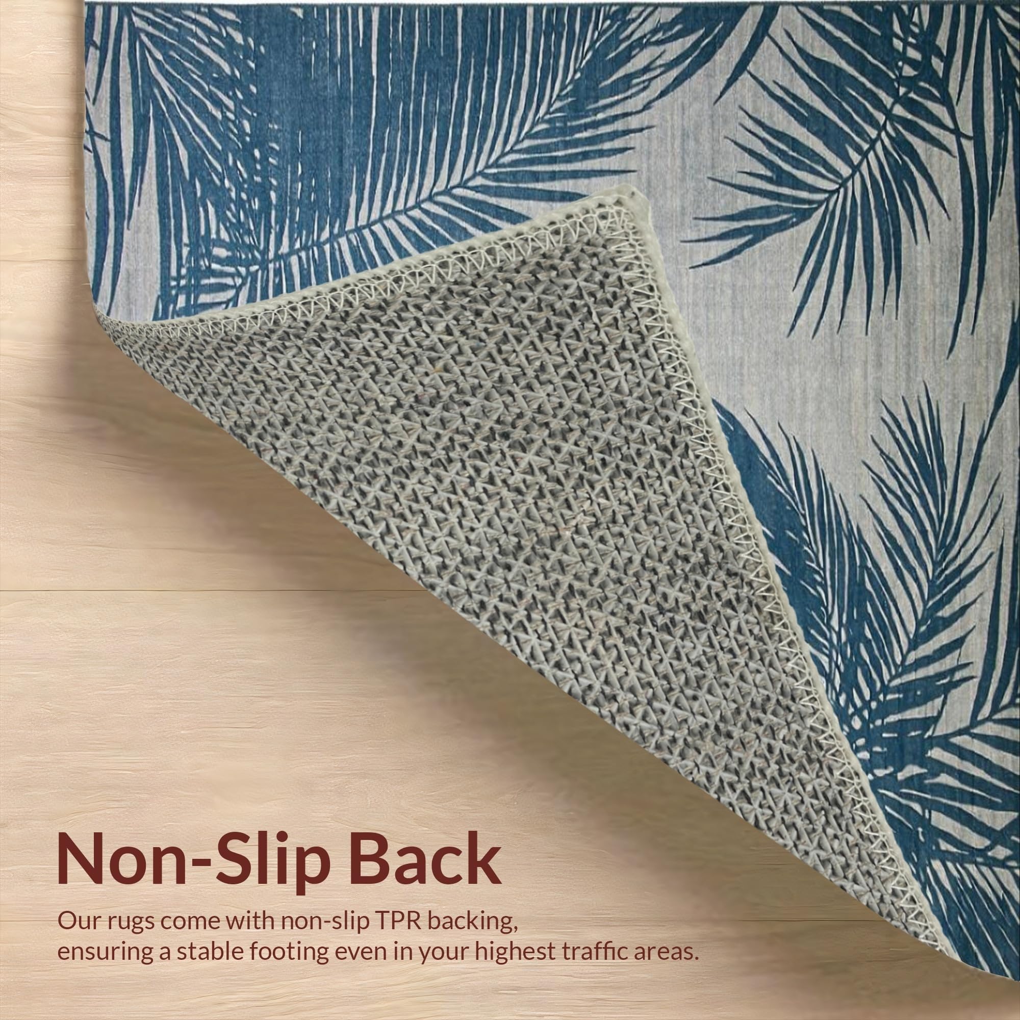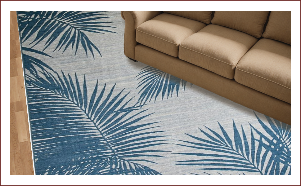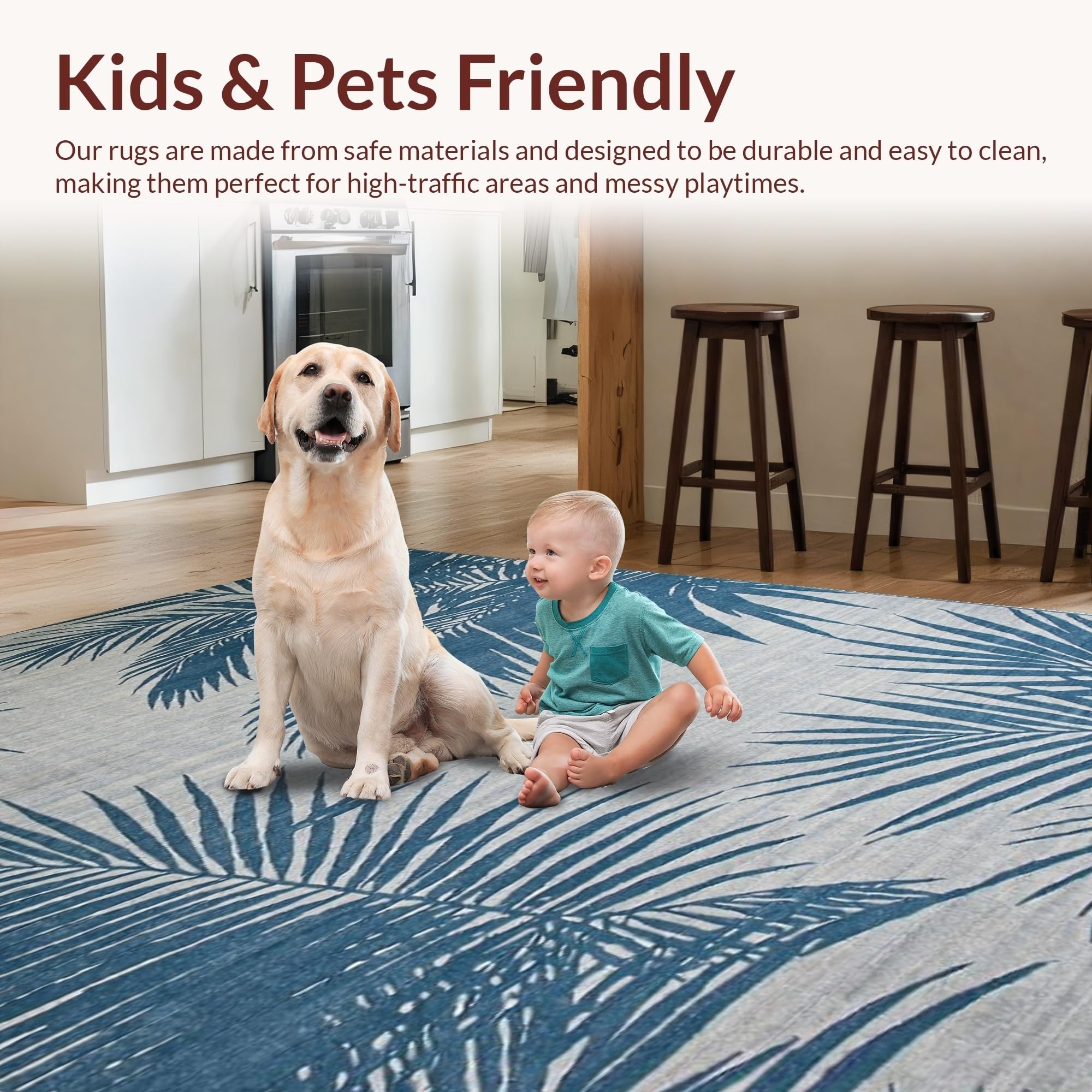 Ultra Soft Area Rug, Non Slip, Stain Resistant, Washable Area Rugs for Living Room, Bedroom, Elegant Grey Floral Arrangement(Blue) Overview:
