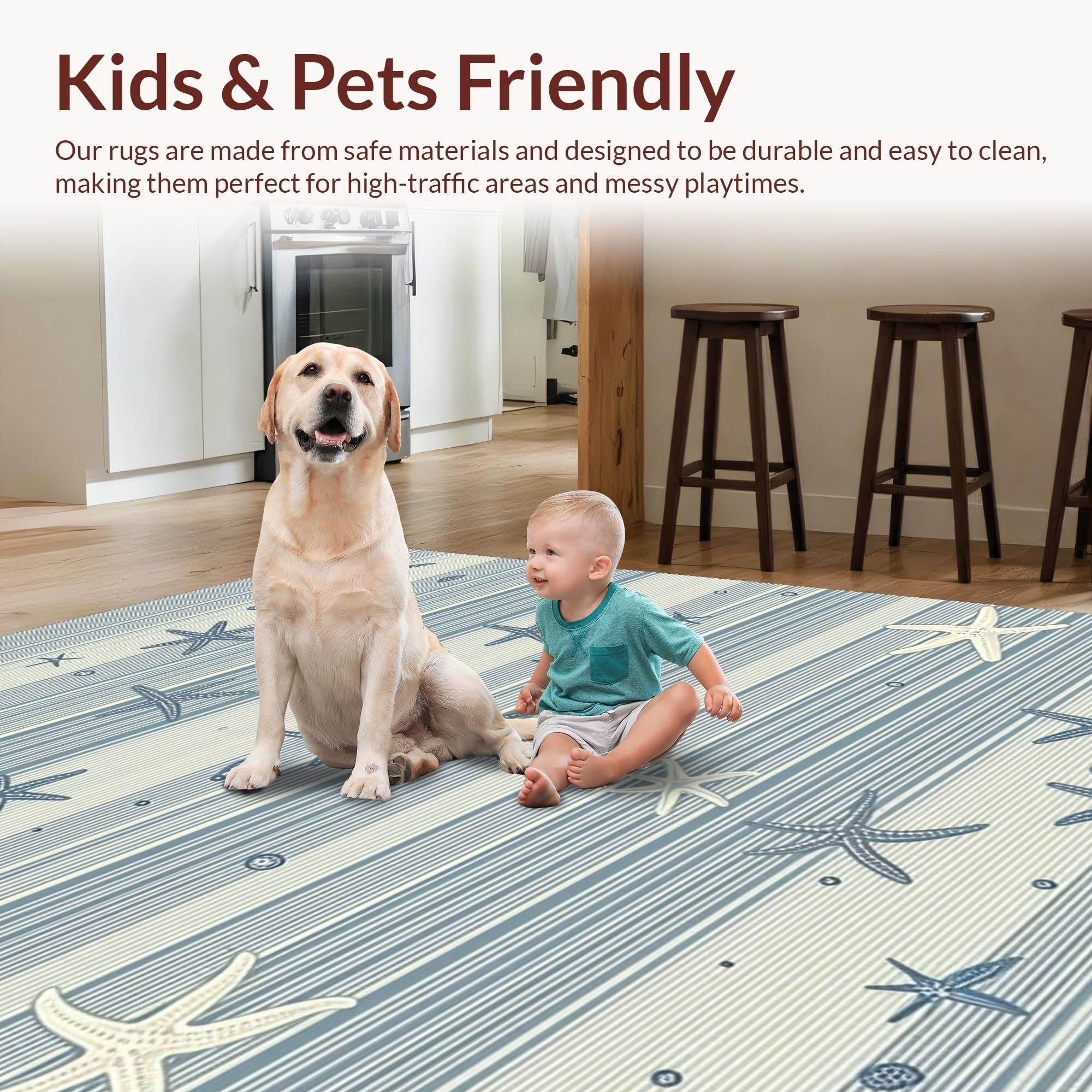 Ultra Soft Area Rug, Non Slip, Stain Resistant, Washable Area Rugs for Living Room, Bedroom, Elegant Grey Trellis Aesthetic(Blue) Overview: