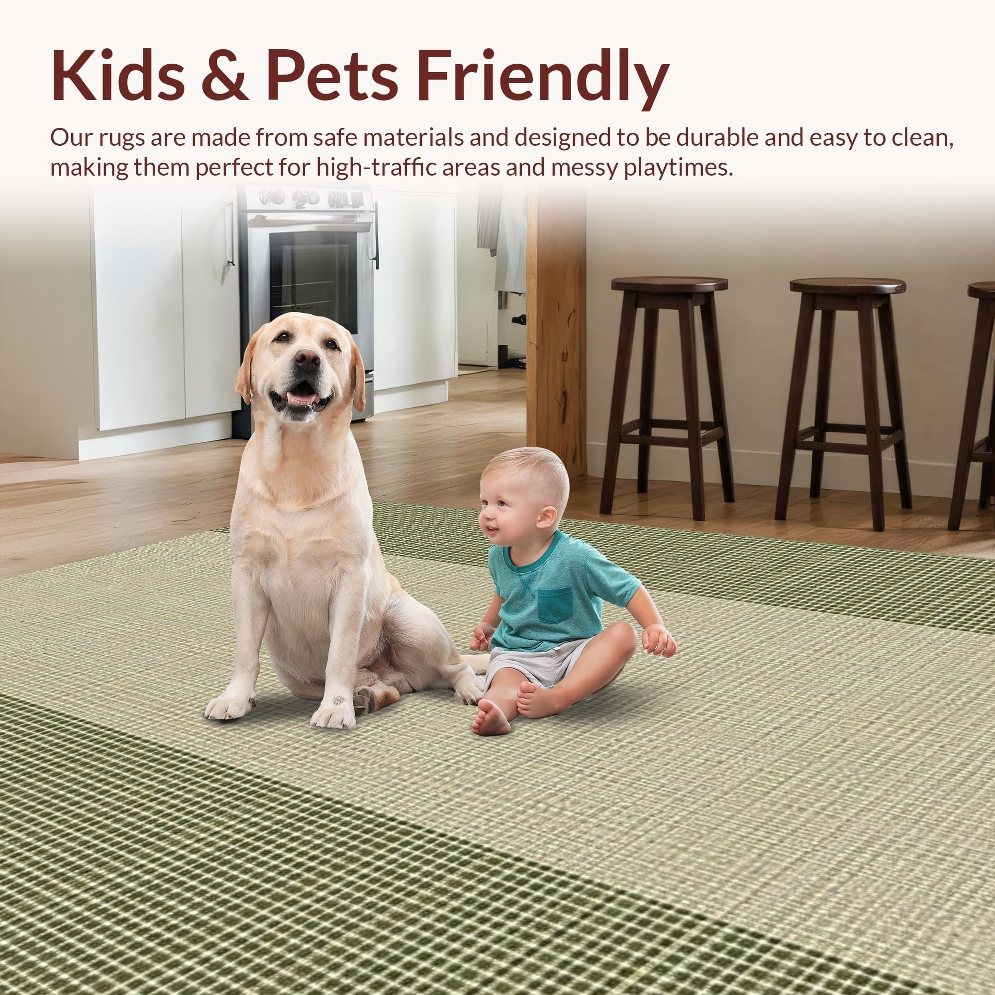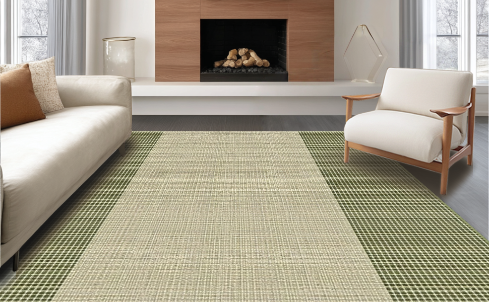 Ultra Soft Area Rug, Non Slip, Stain Resistant, Washable Area Rugs for Living Room, Bedroom, Elegant Grid Motif Sophistication(Beige) Overview: