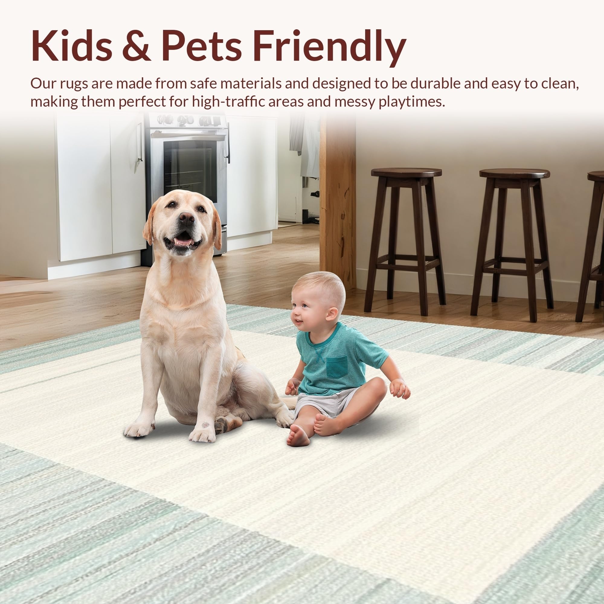 Ultra Soft Area Rug, Non Slip, Stain Resistant, Washable Area Rugs for Living Room, Bedroom, Elegant Gridded Abstract Aesthetic(Beige) Overview: